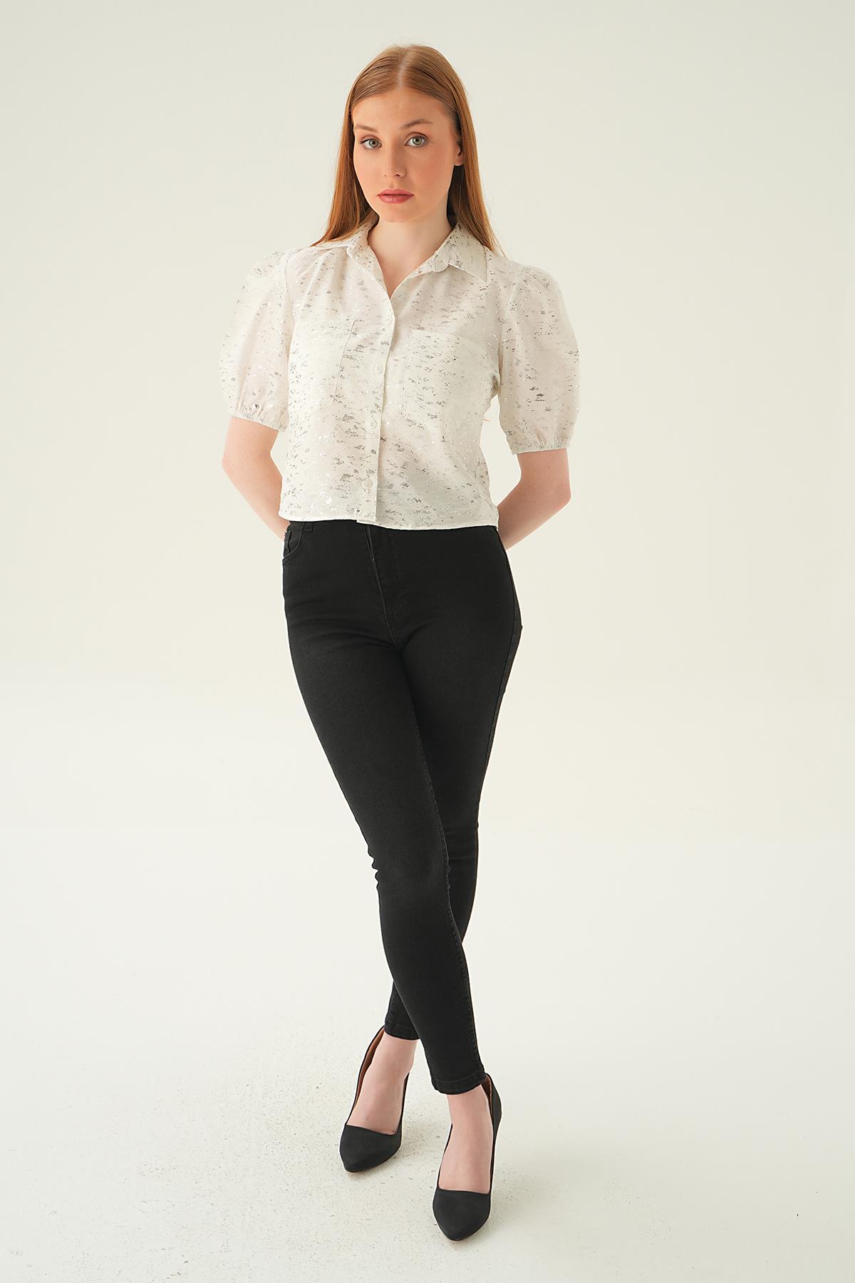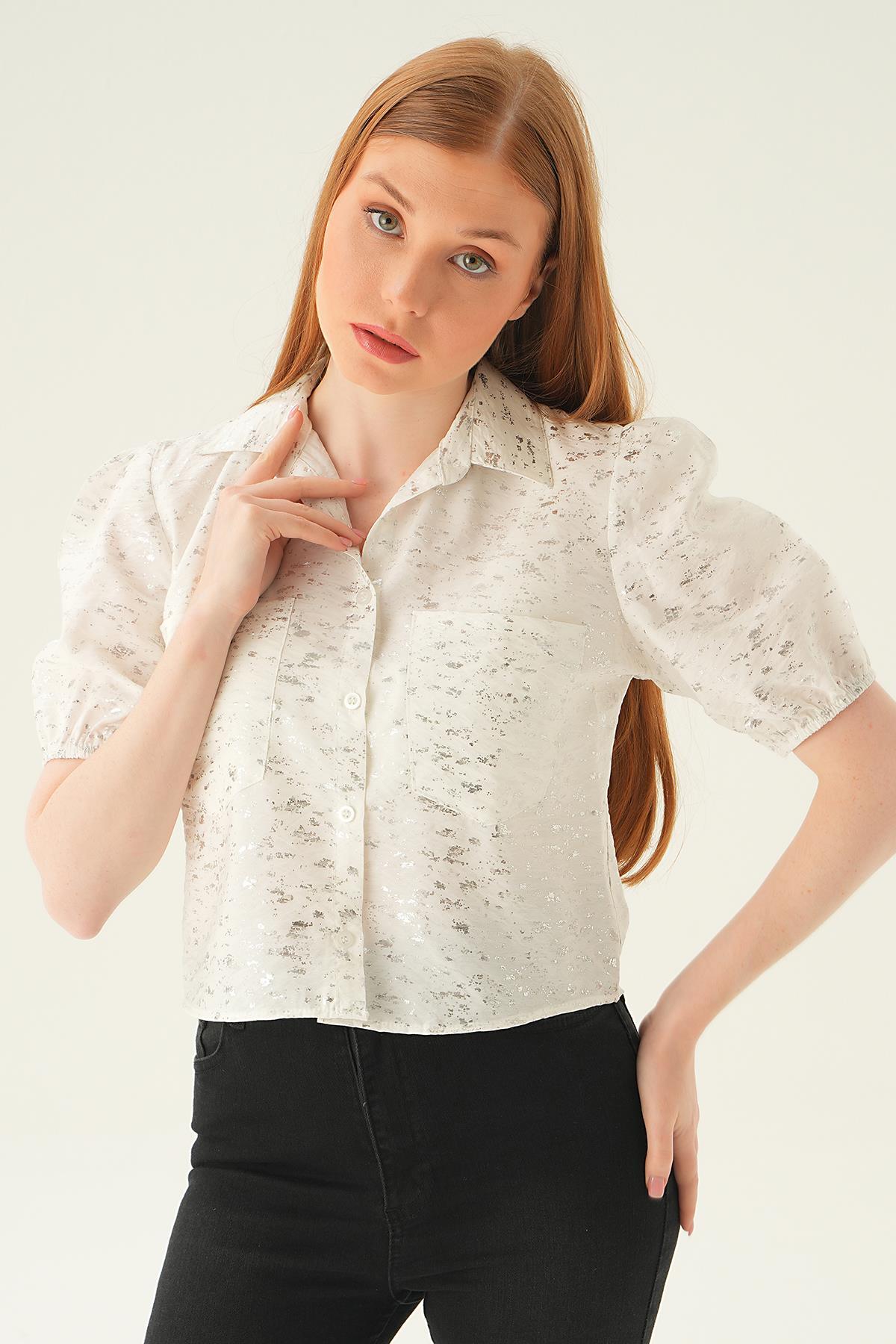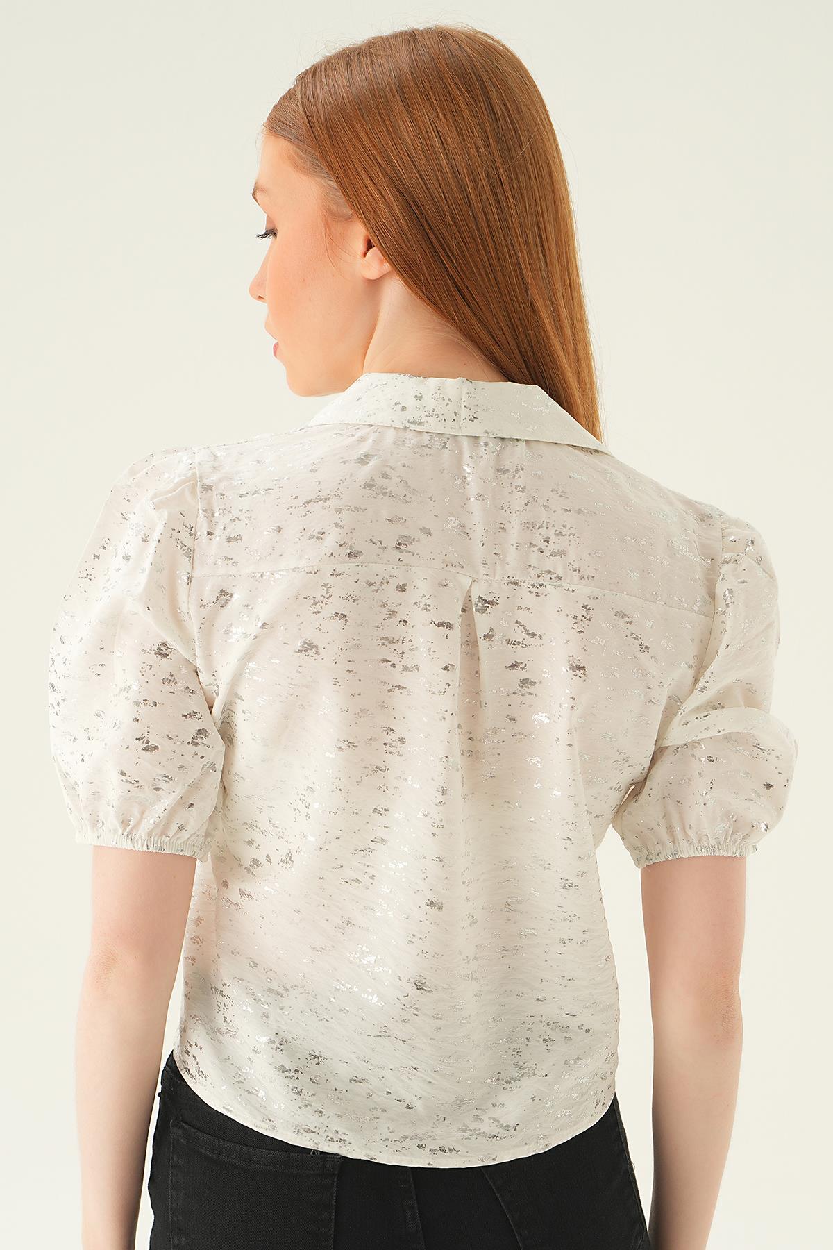 Beyaz Varak Detay Kısa Gömlek 4082