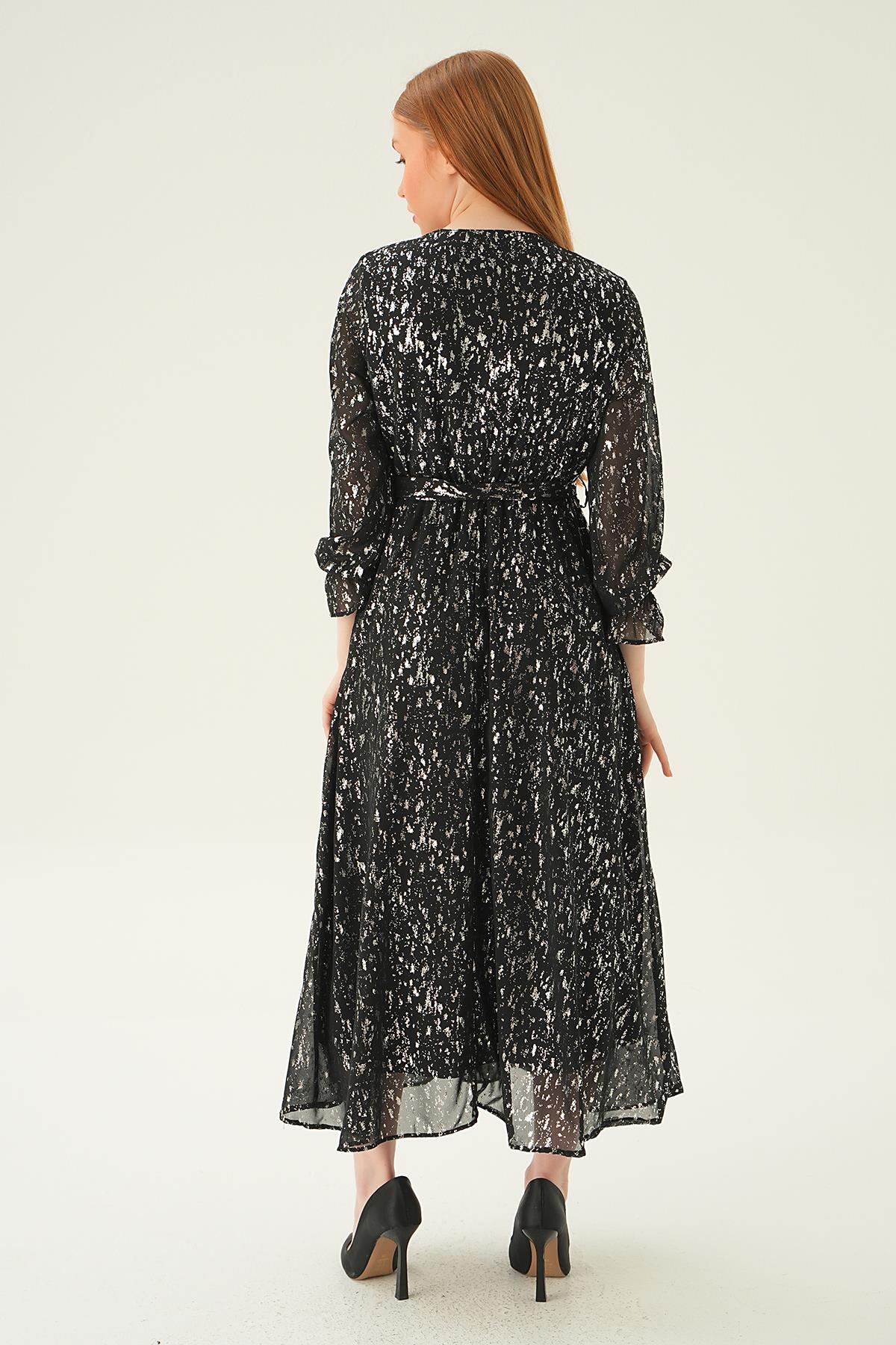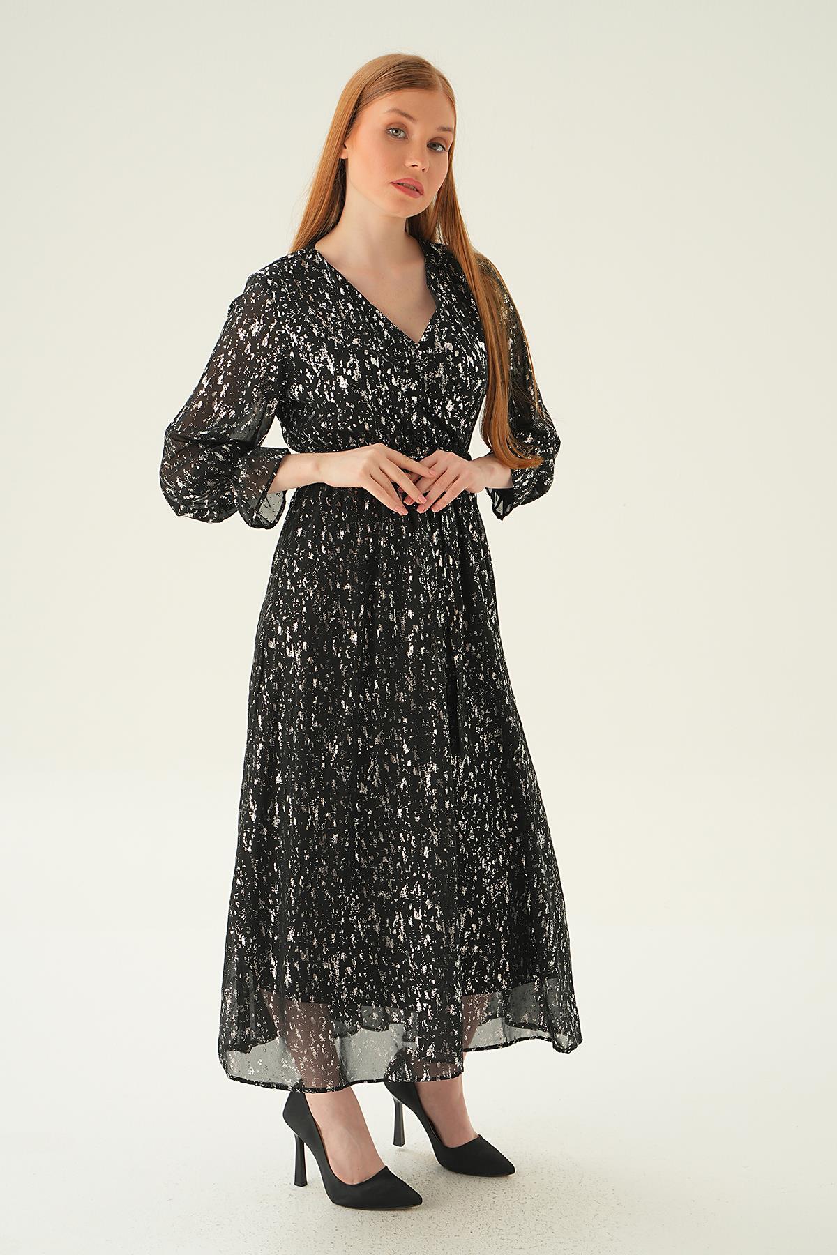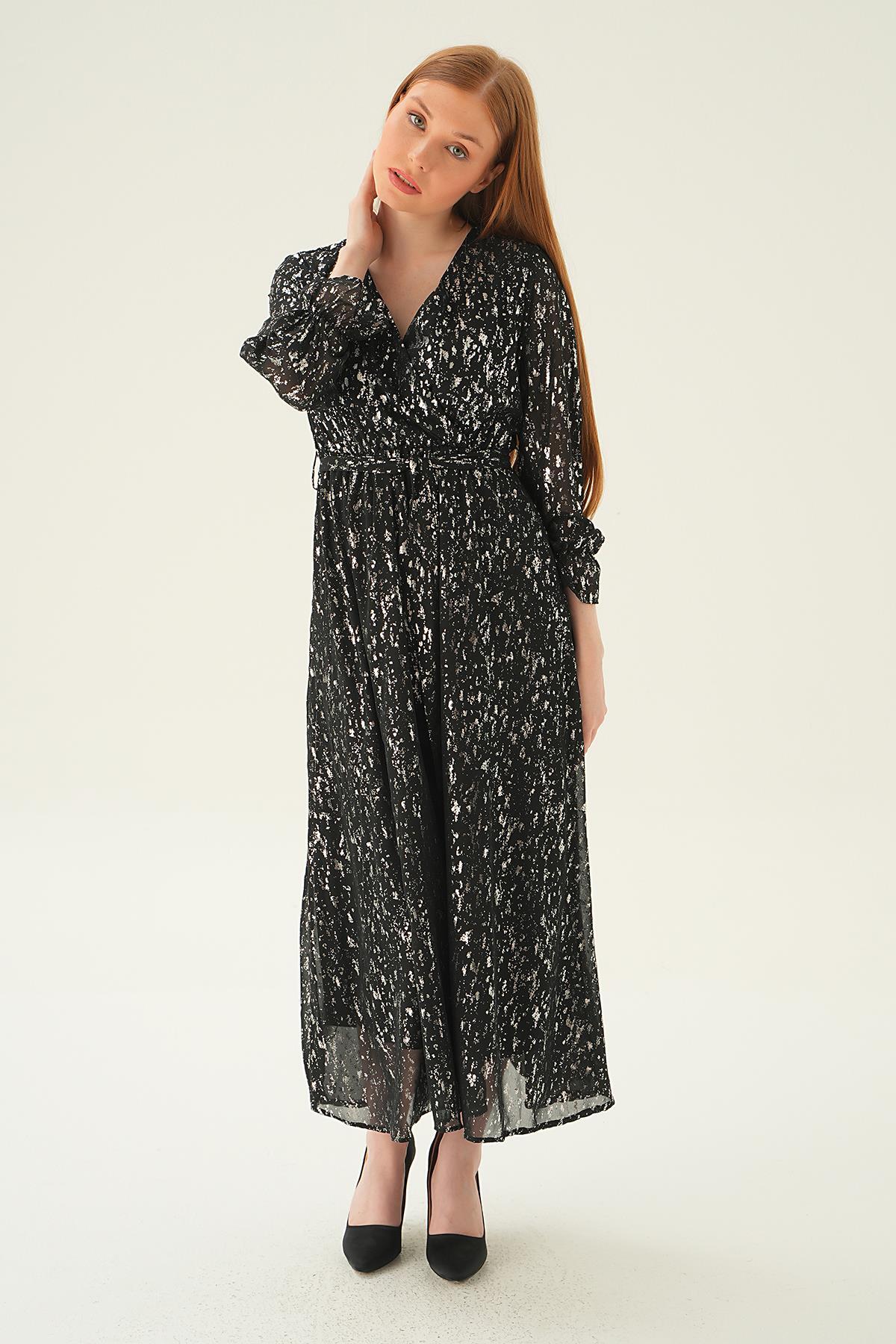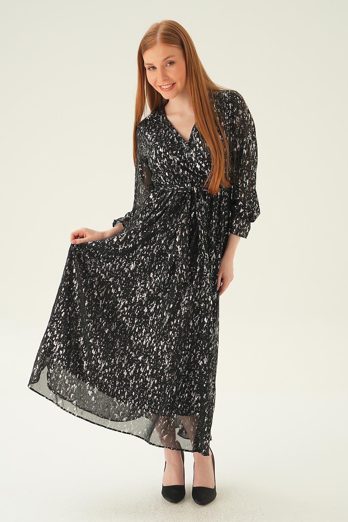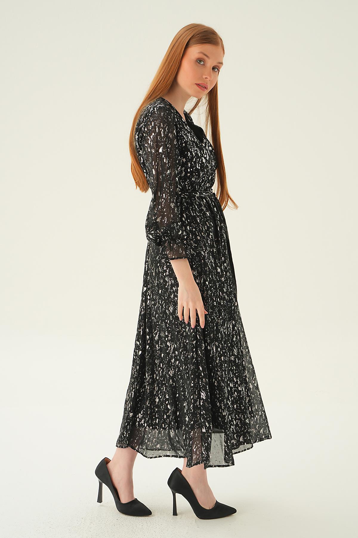 Siyah Kruvaze Yaka Elbise 4083