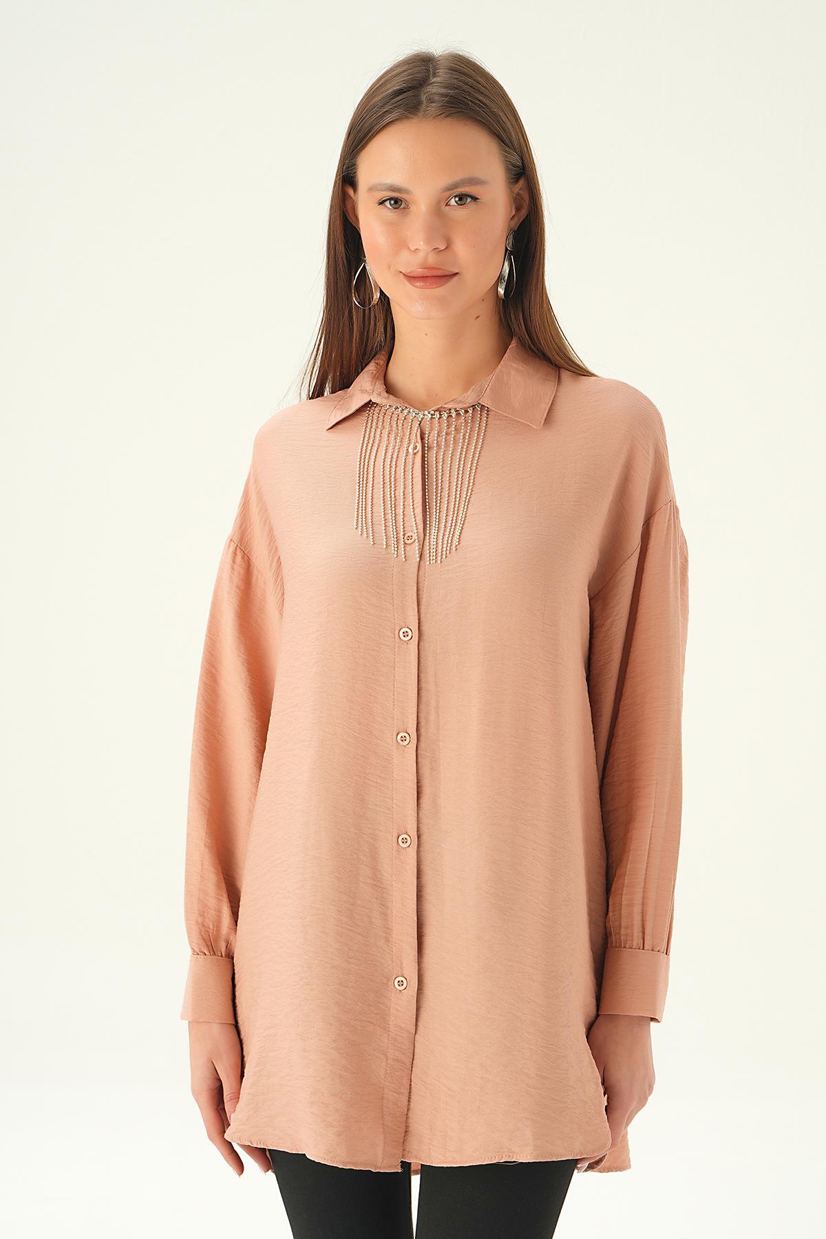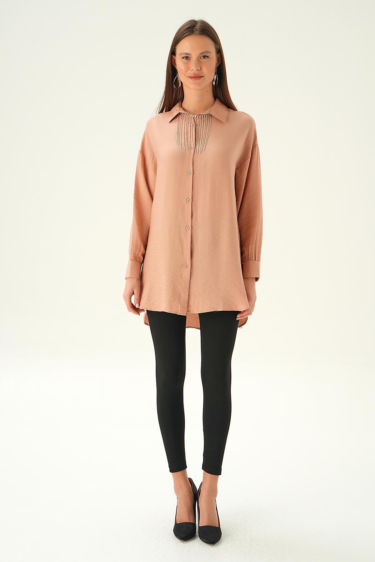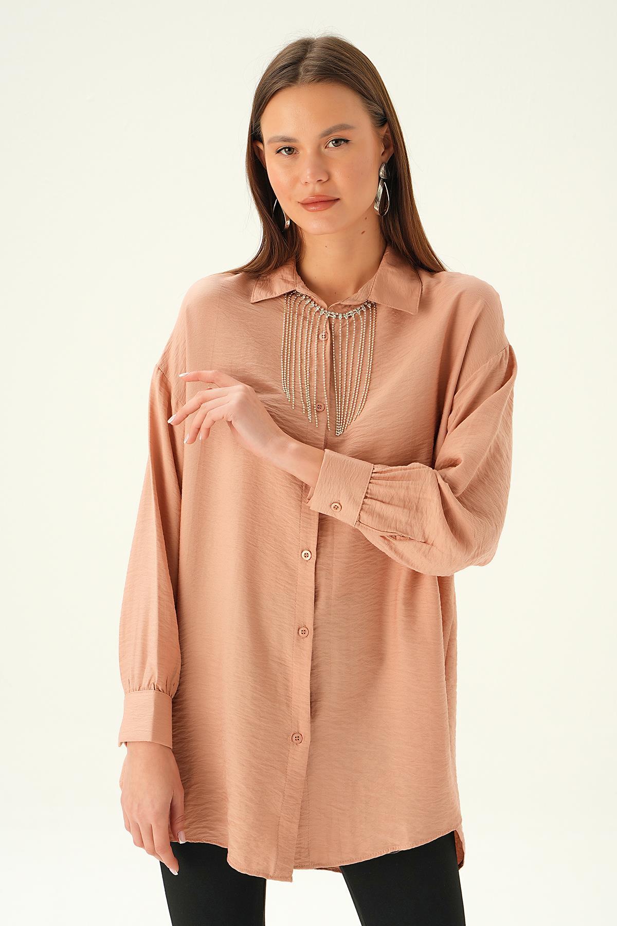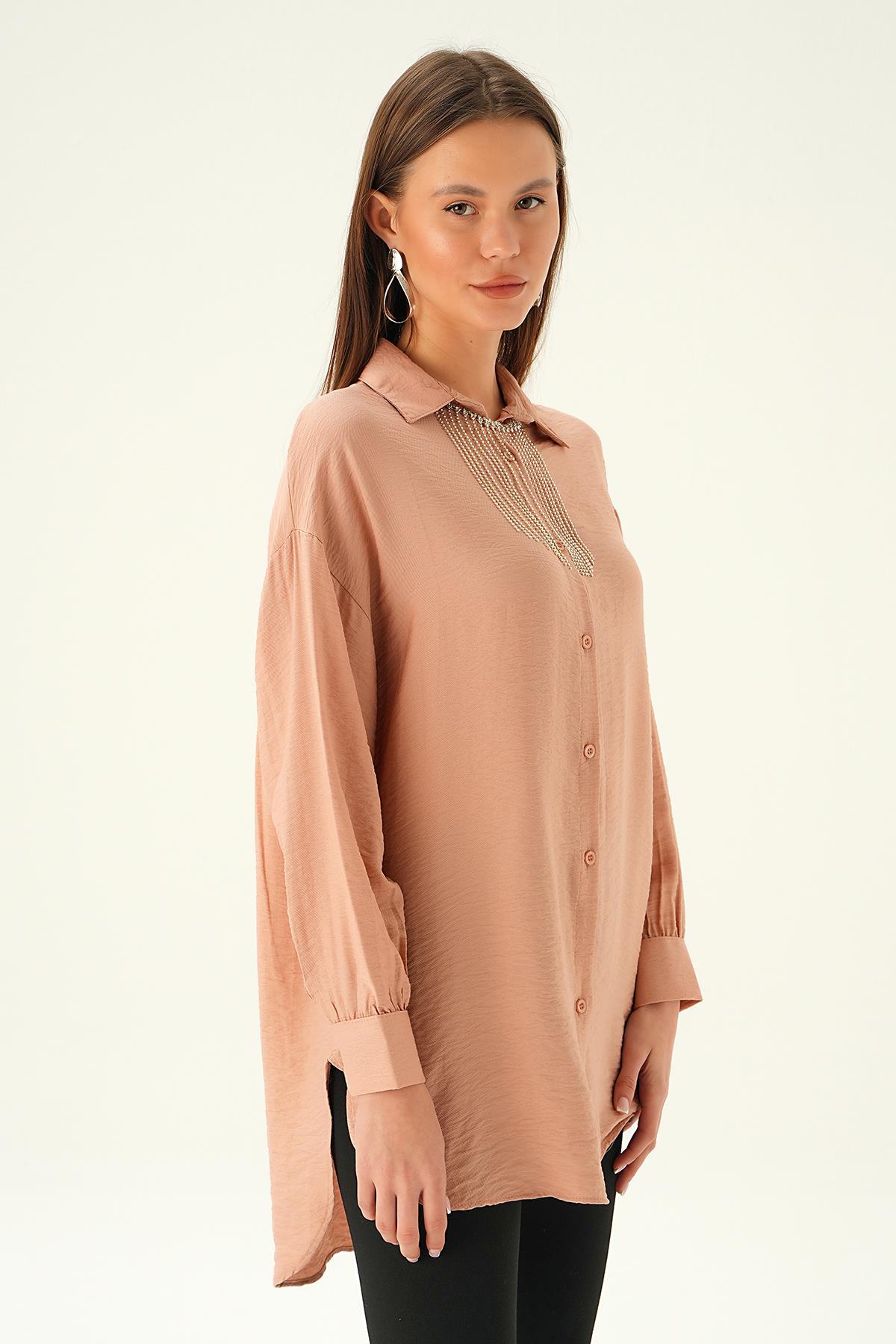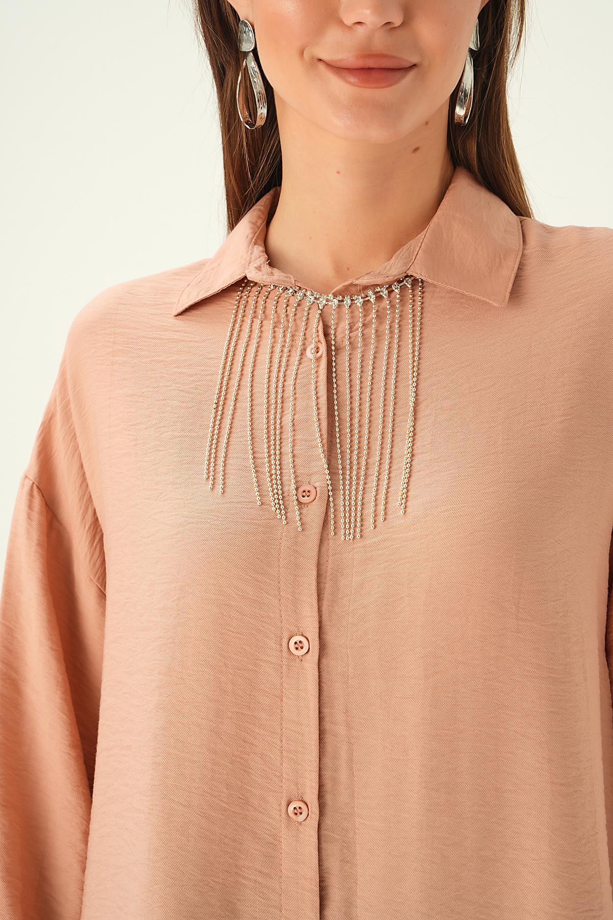 Bisküvi Yaka Zincir Detay Gömlek 4084