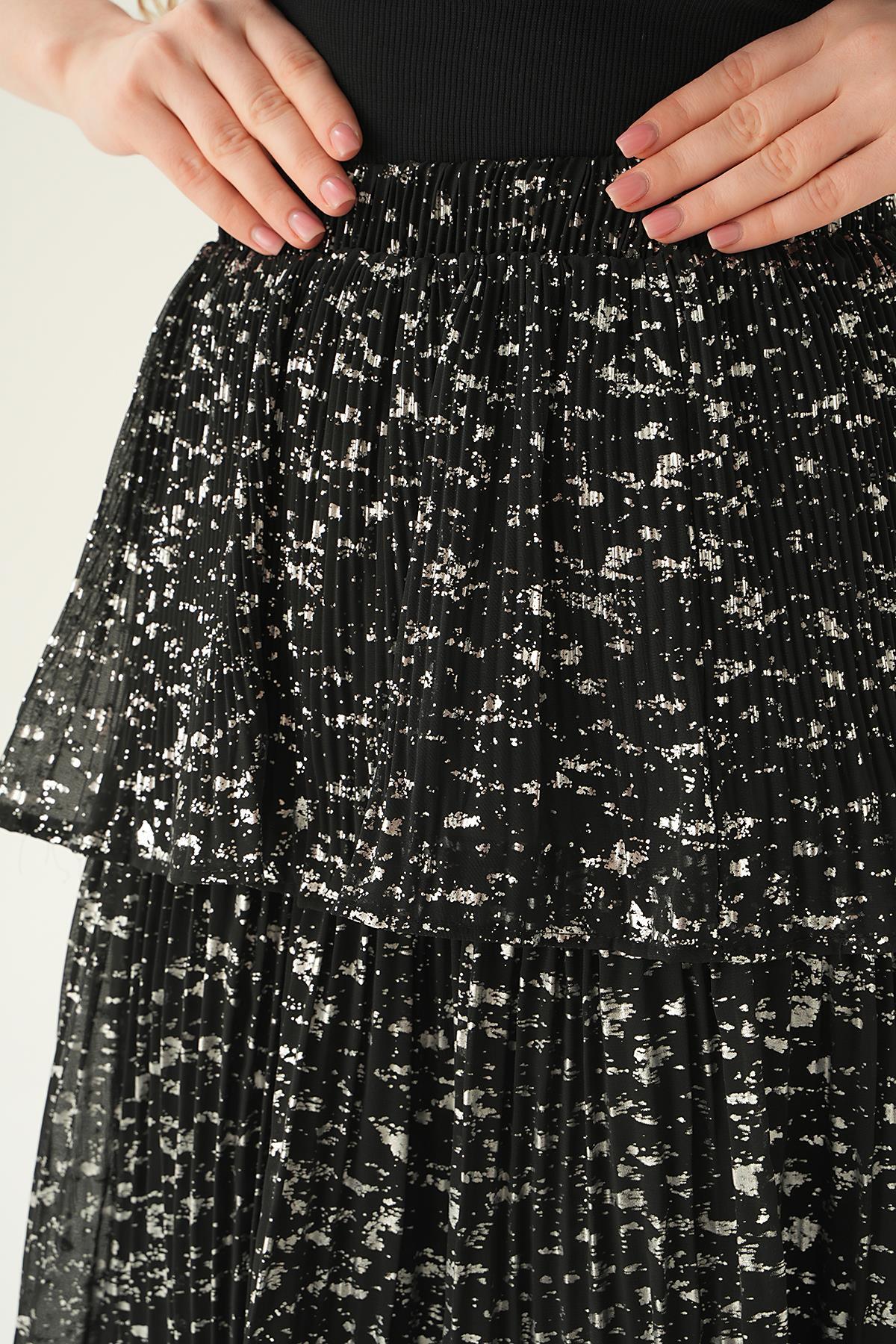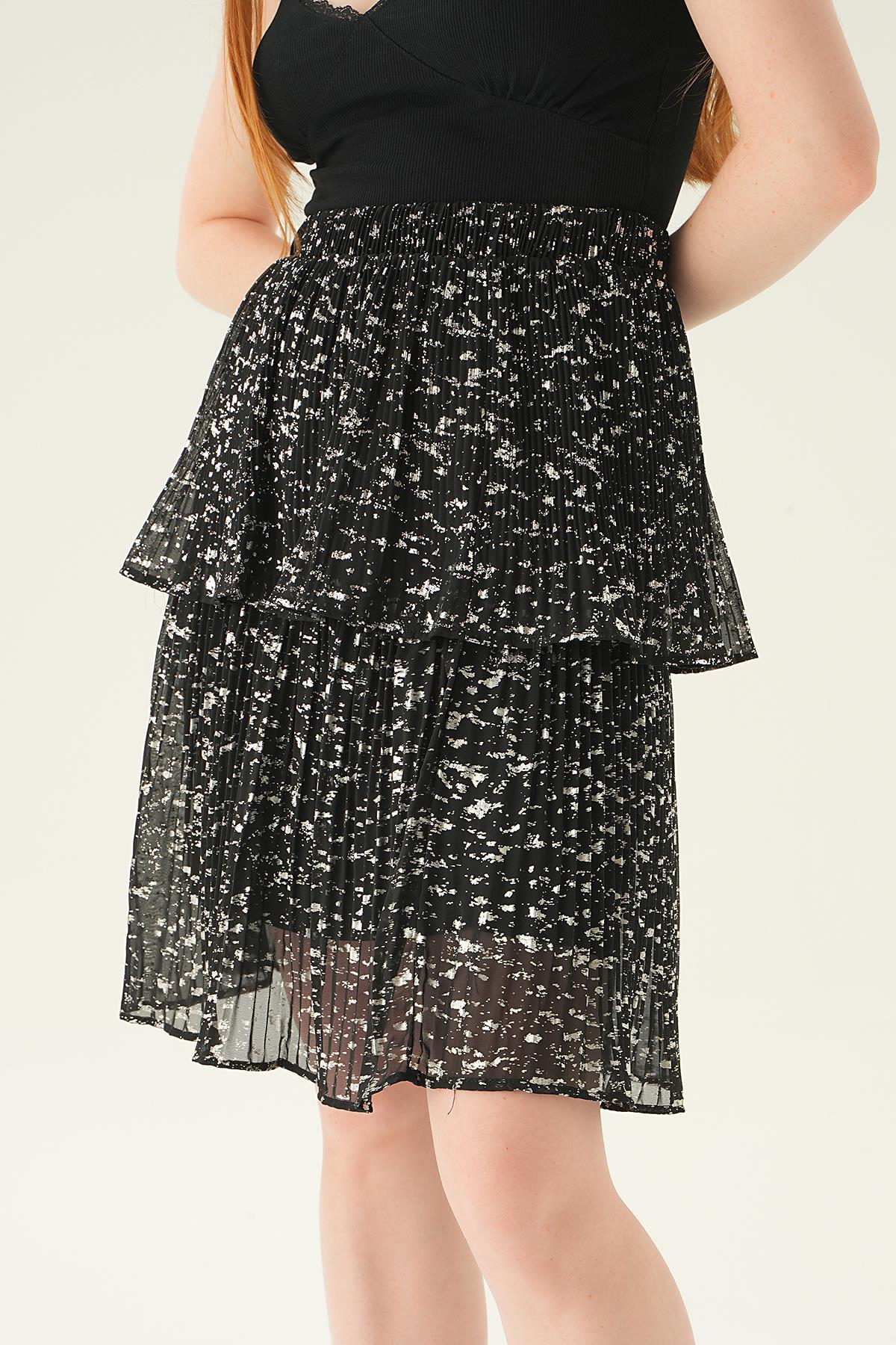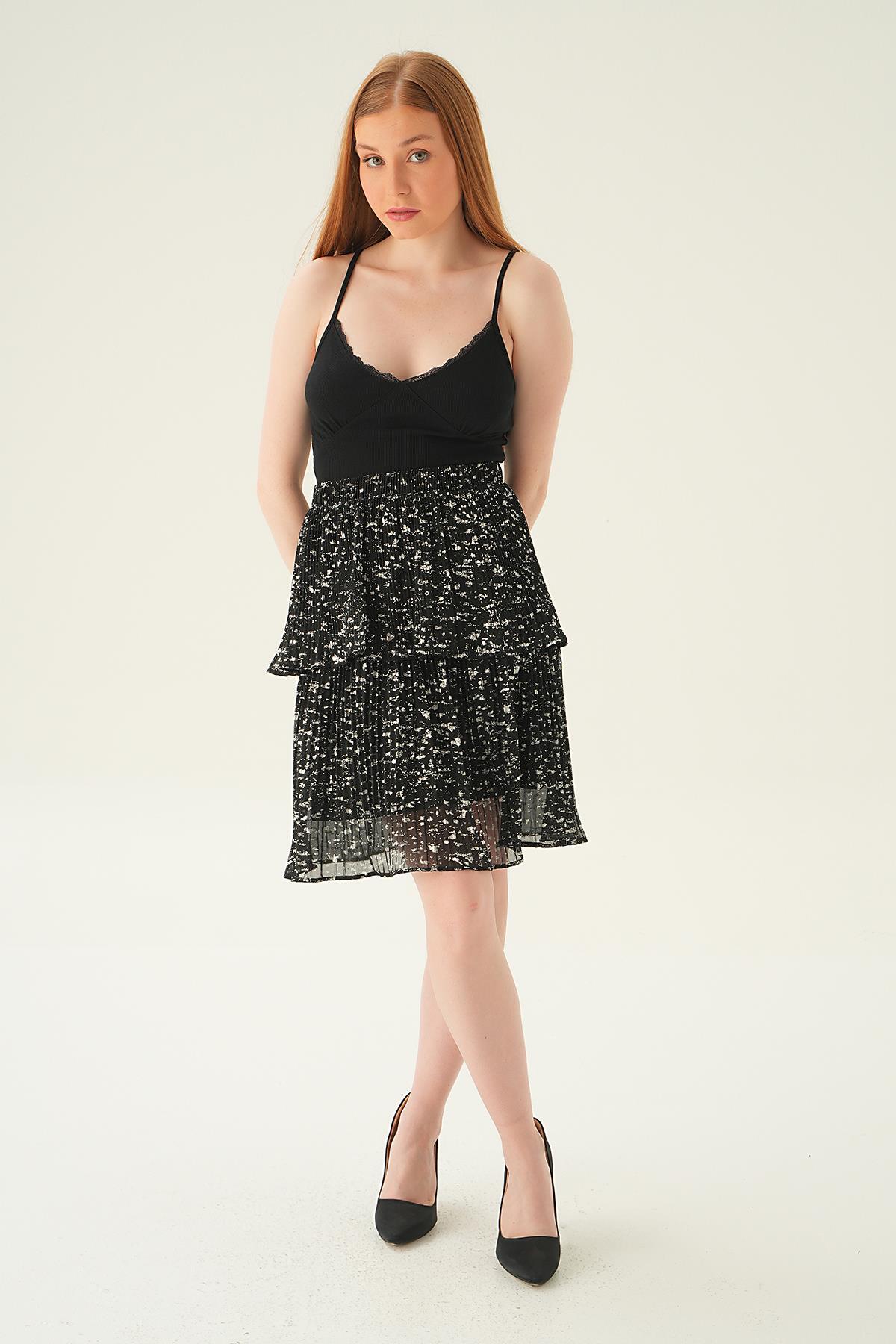 Siyah Kat Kat Detay Mini Etek 4088