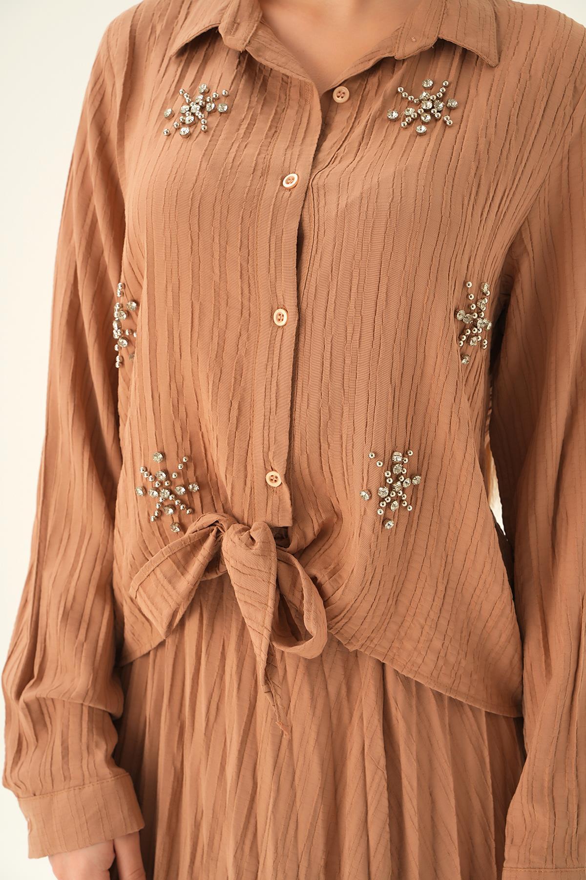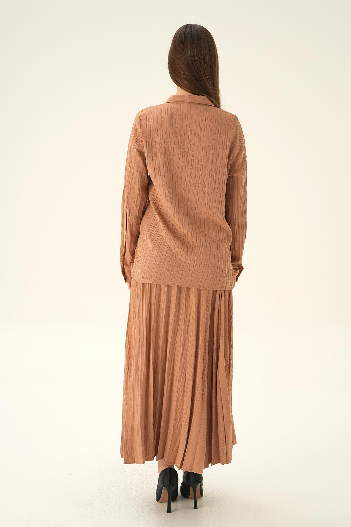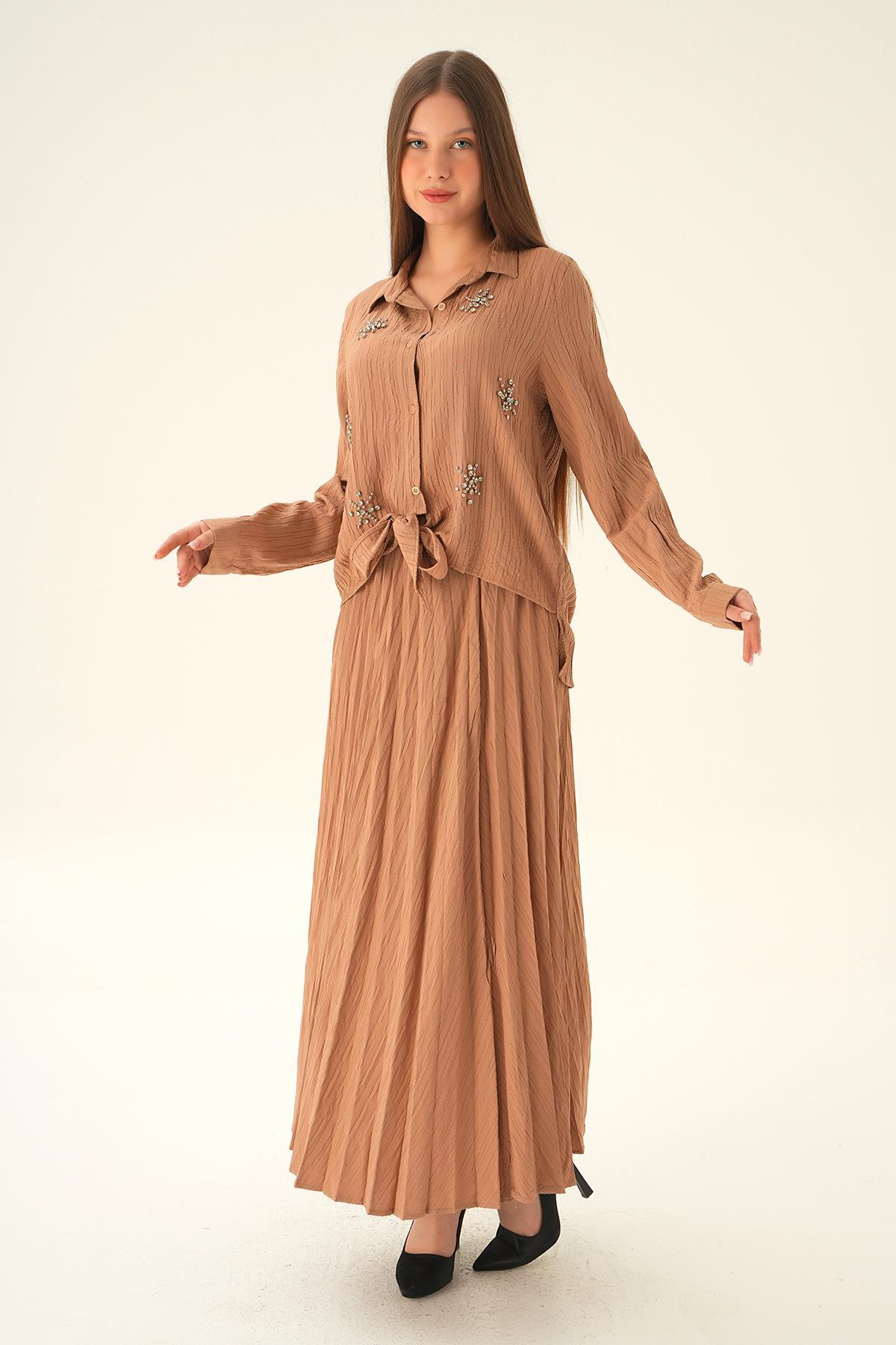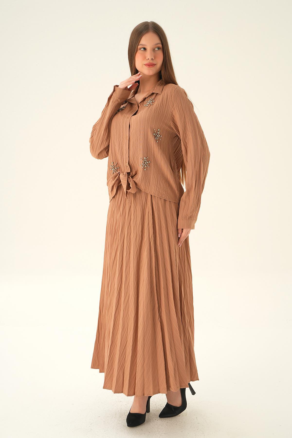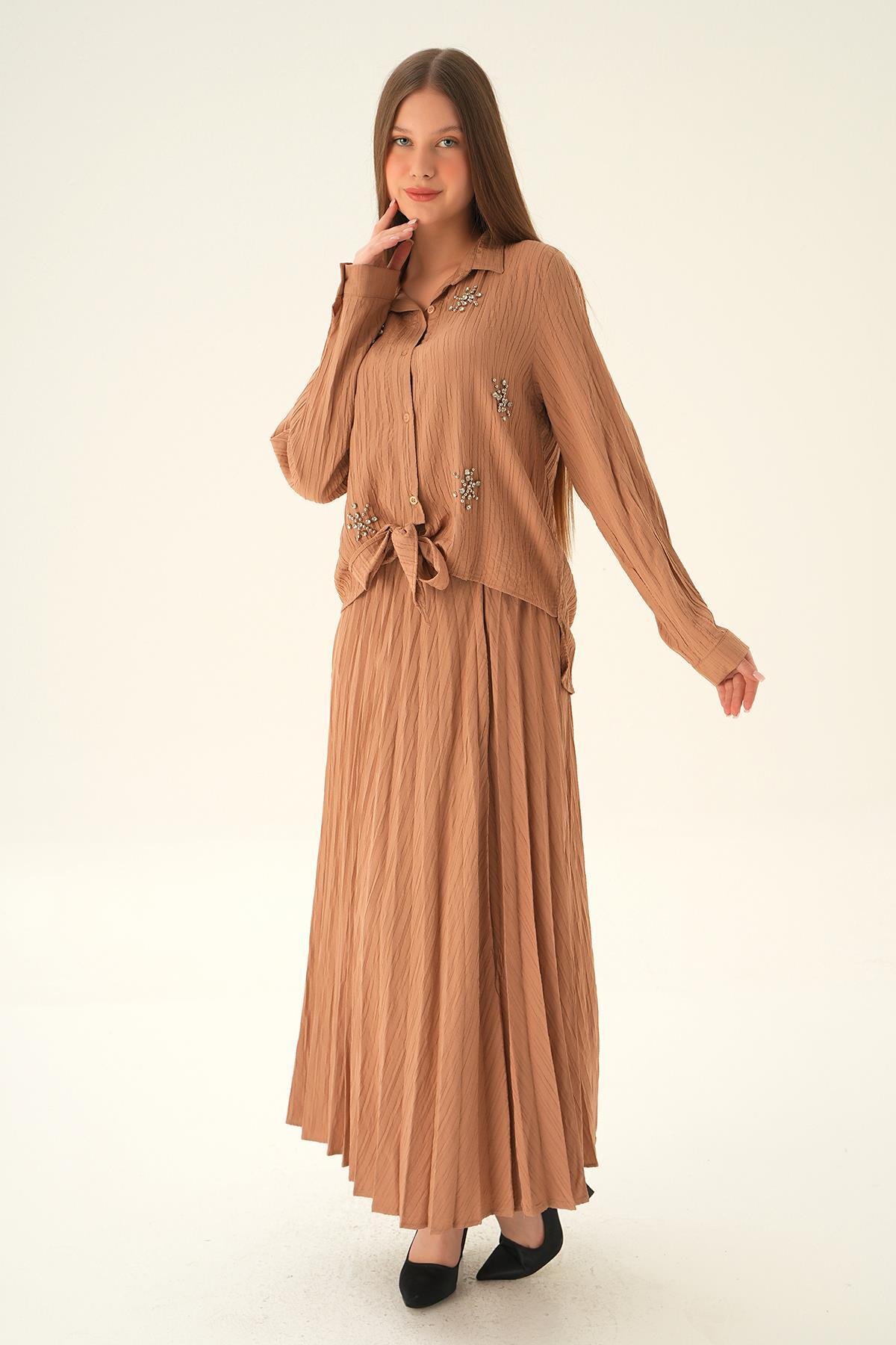 Bisküvi Bağlamalı Gömlek Etek Takım 4093