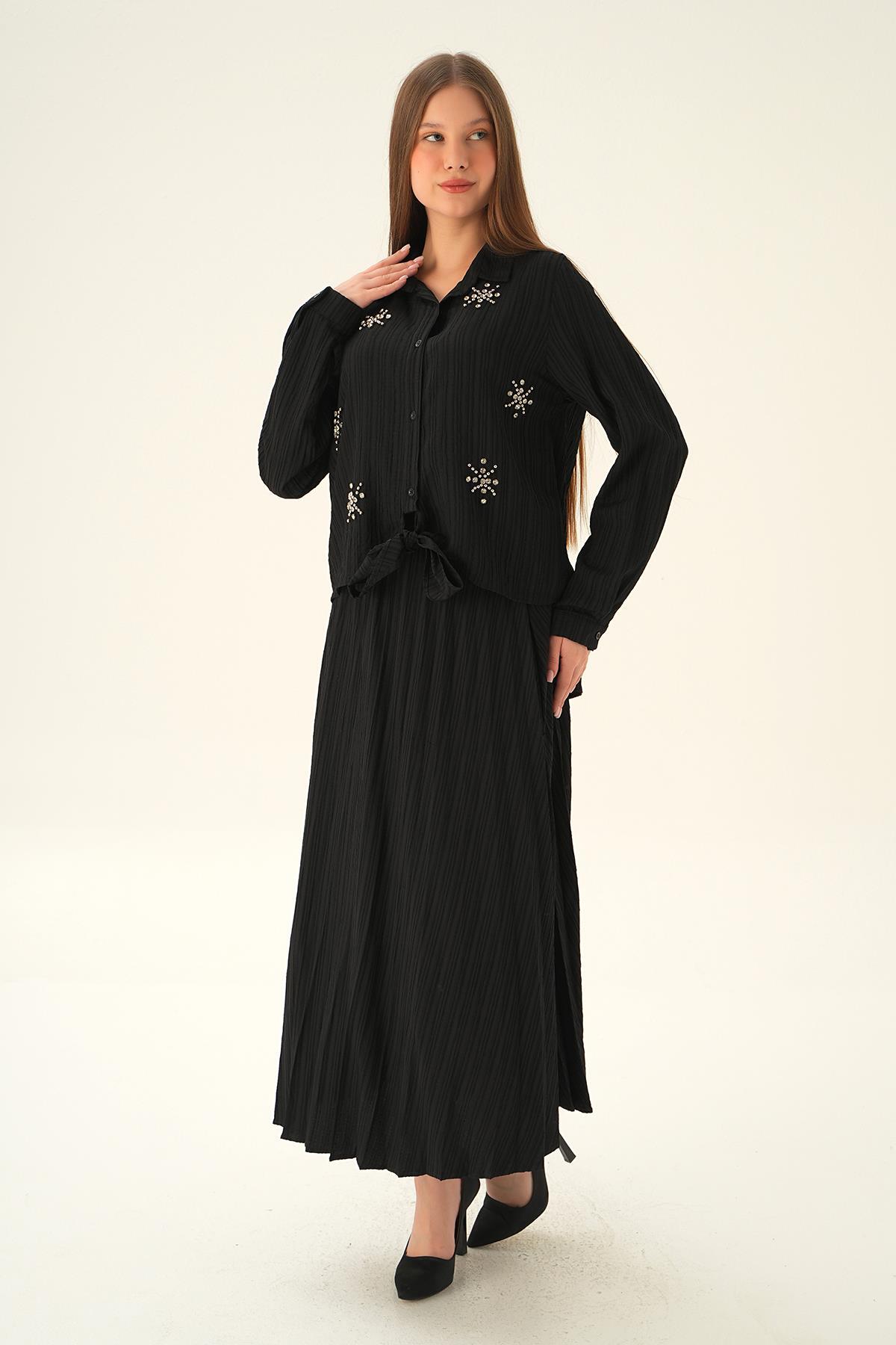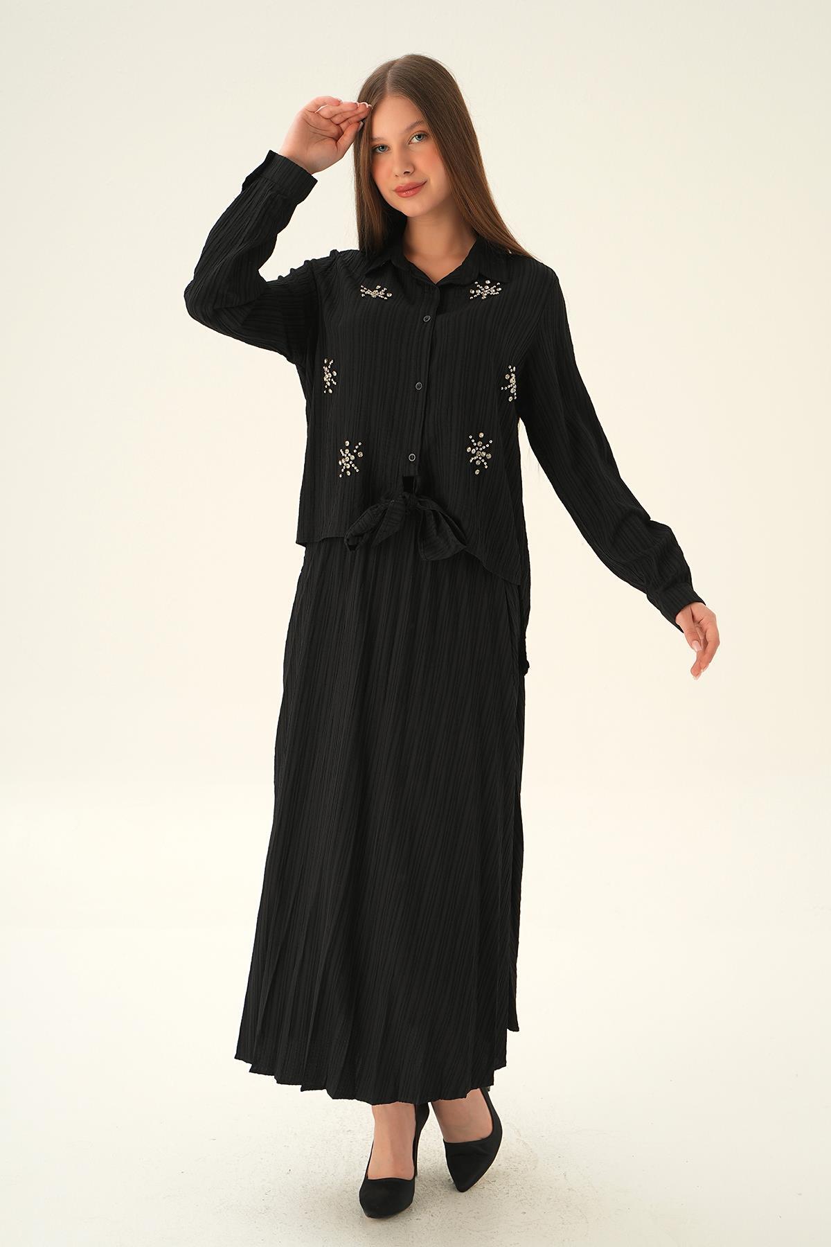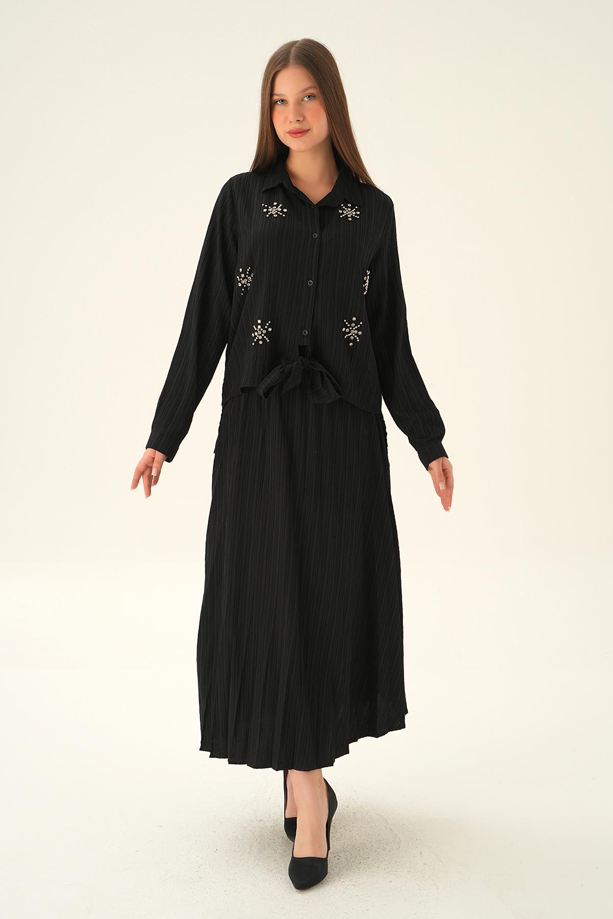 Siyah Bağlamalı Gömlek Etek Takım 4093