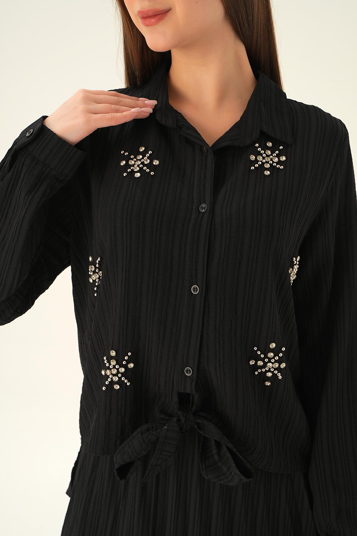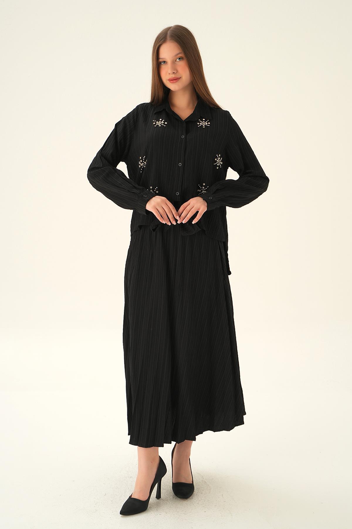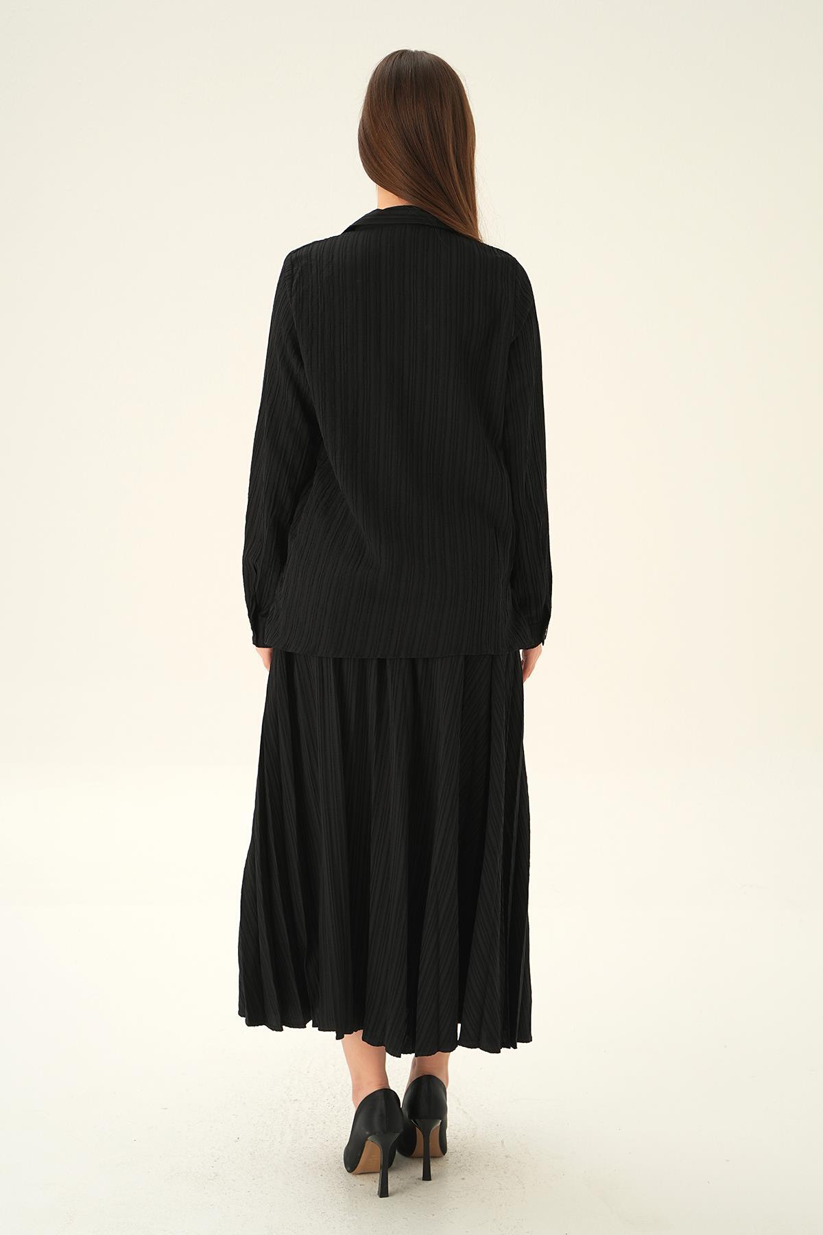 Siyah Bağlamalı Gömlek Etek Takım 4093