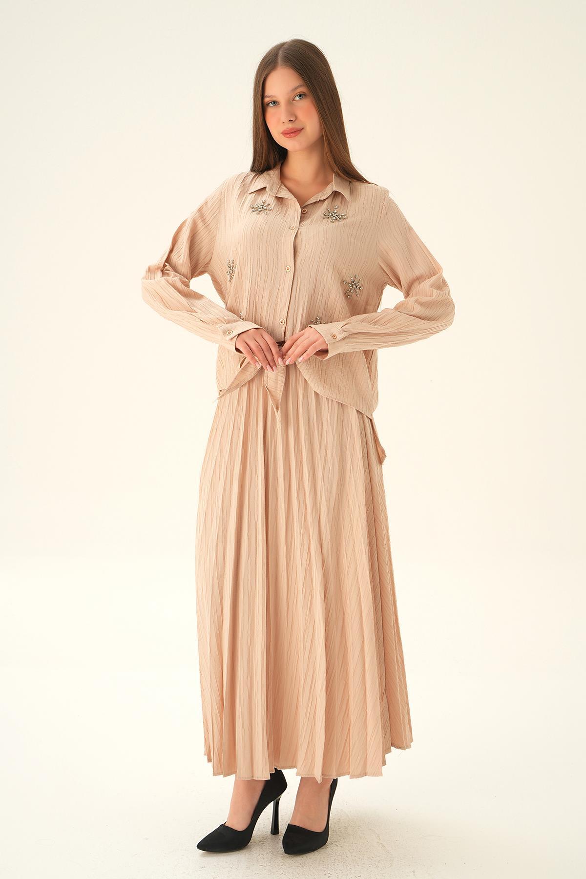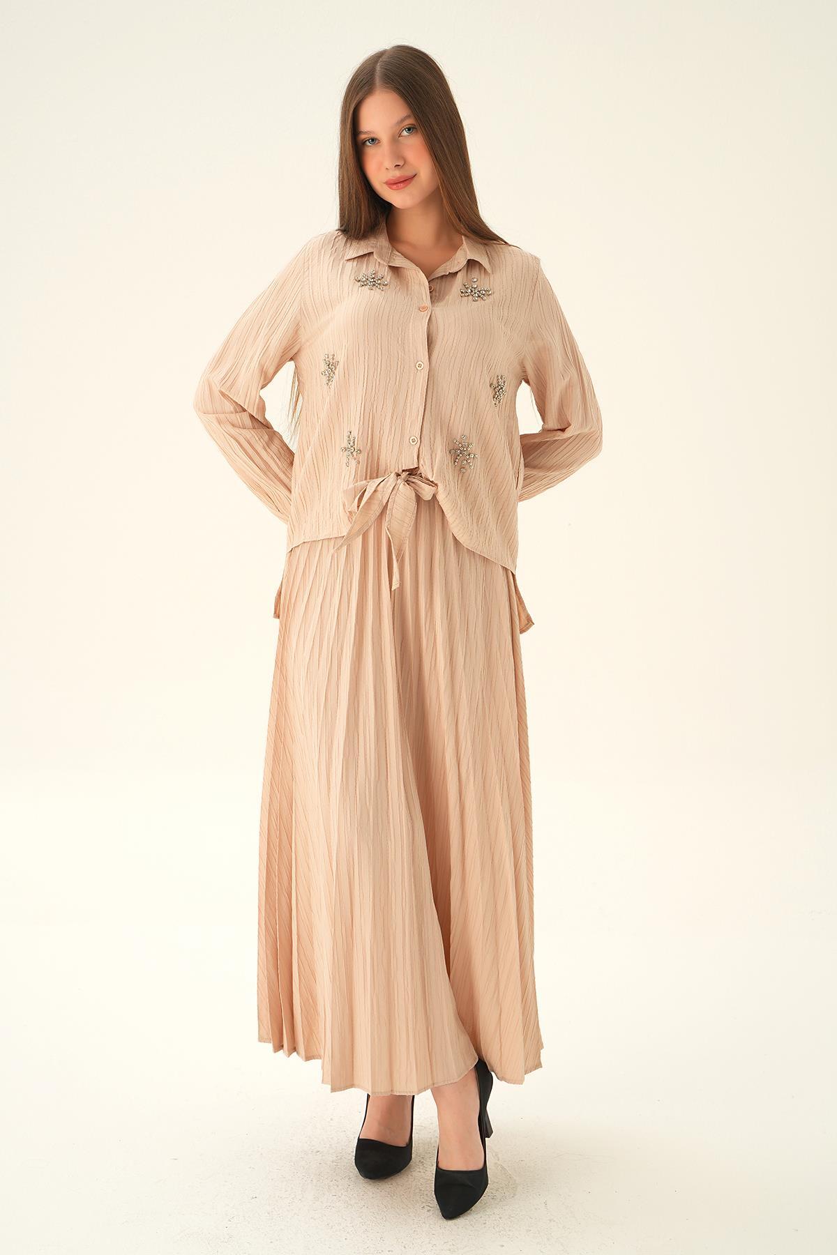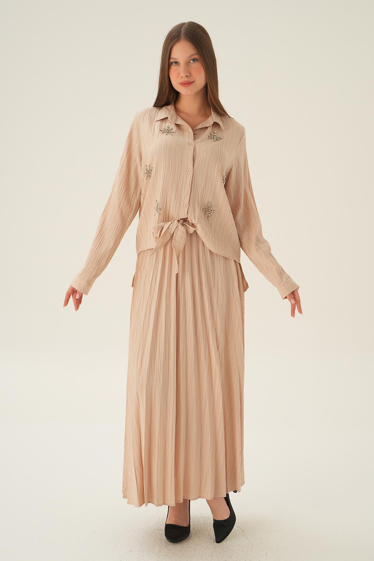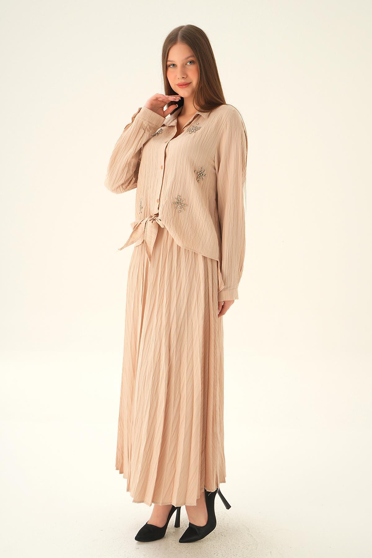 Taş Bağlamalı Gömlek Etek Takım 4093