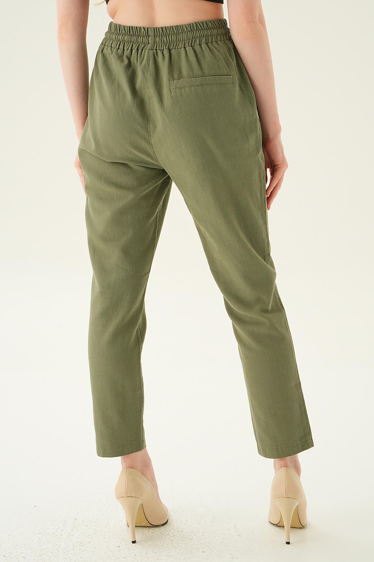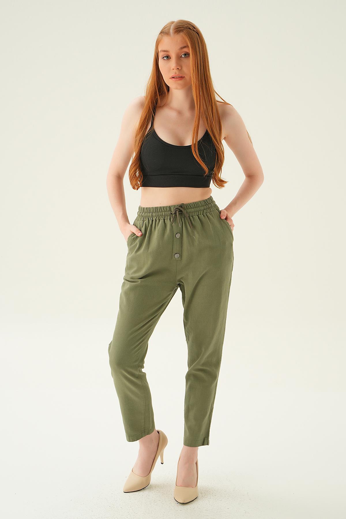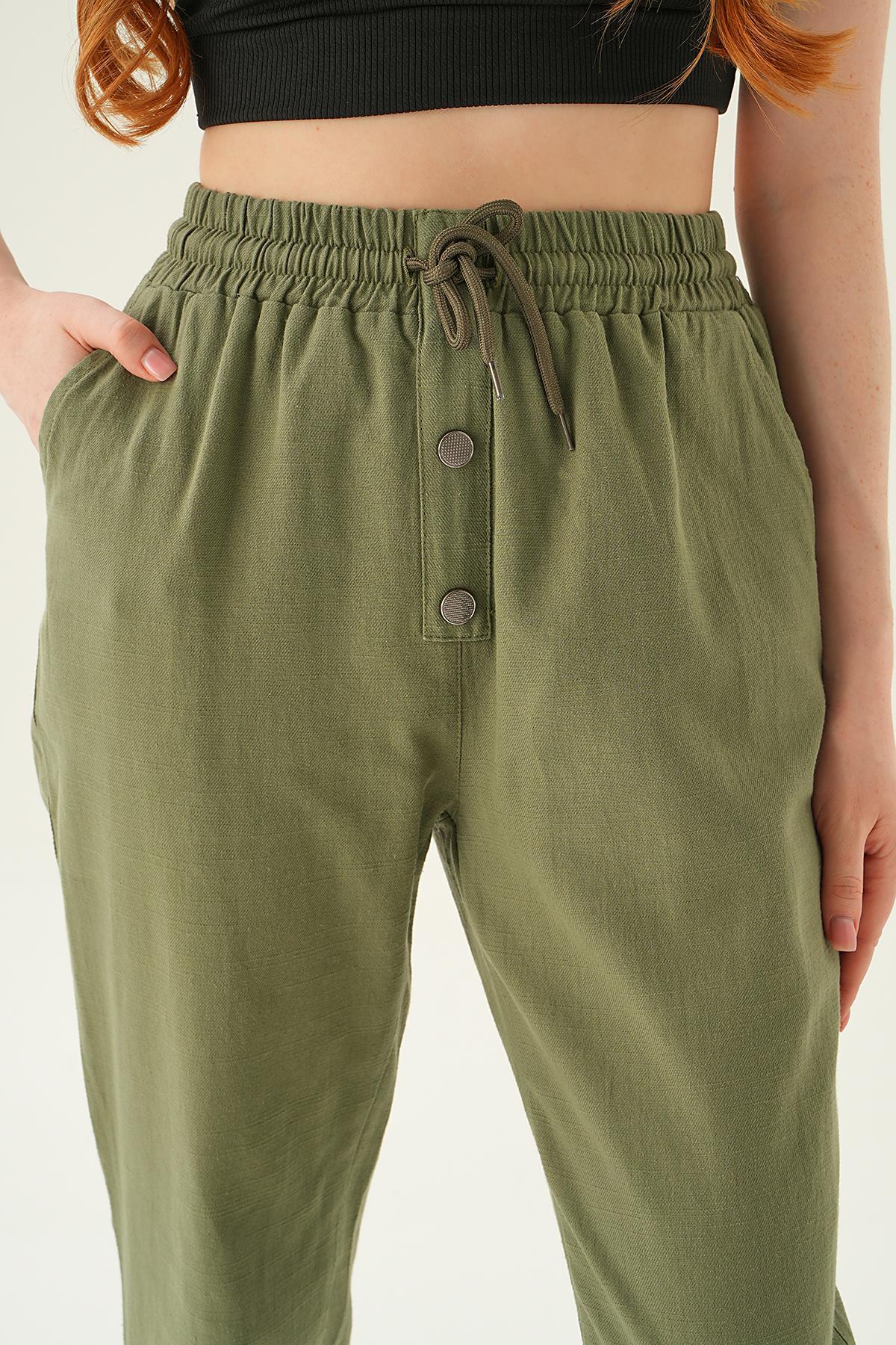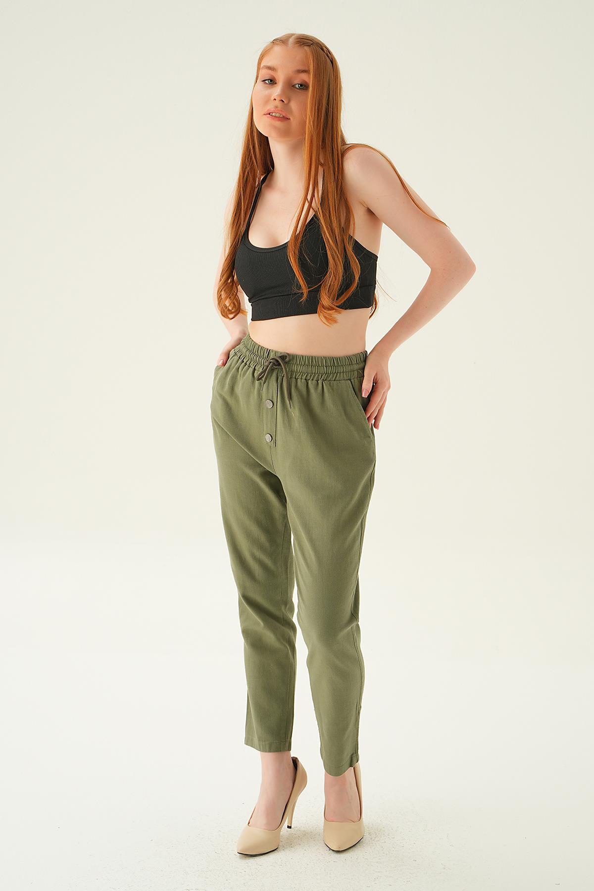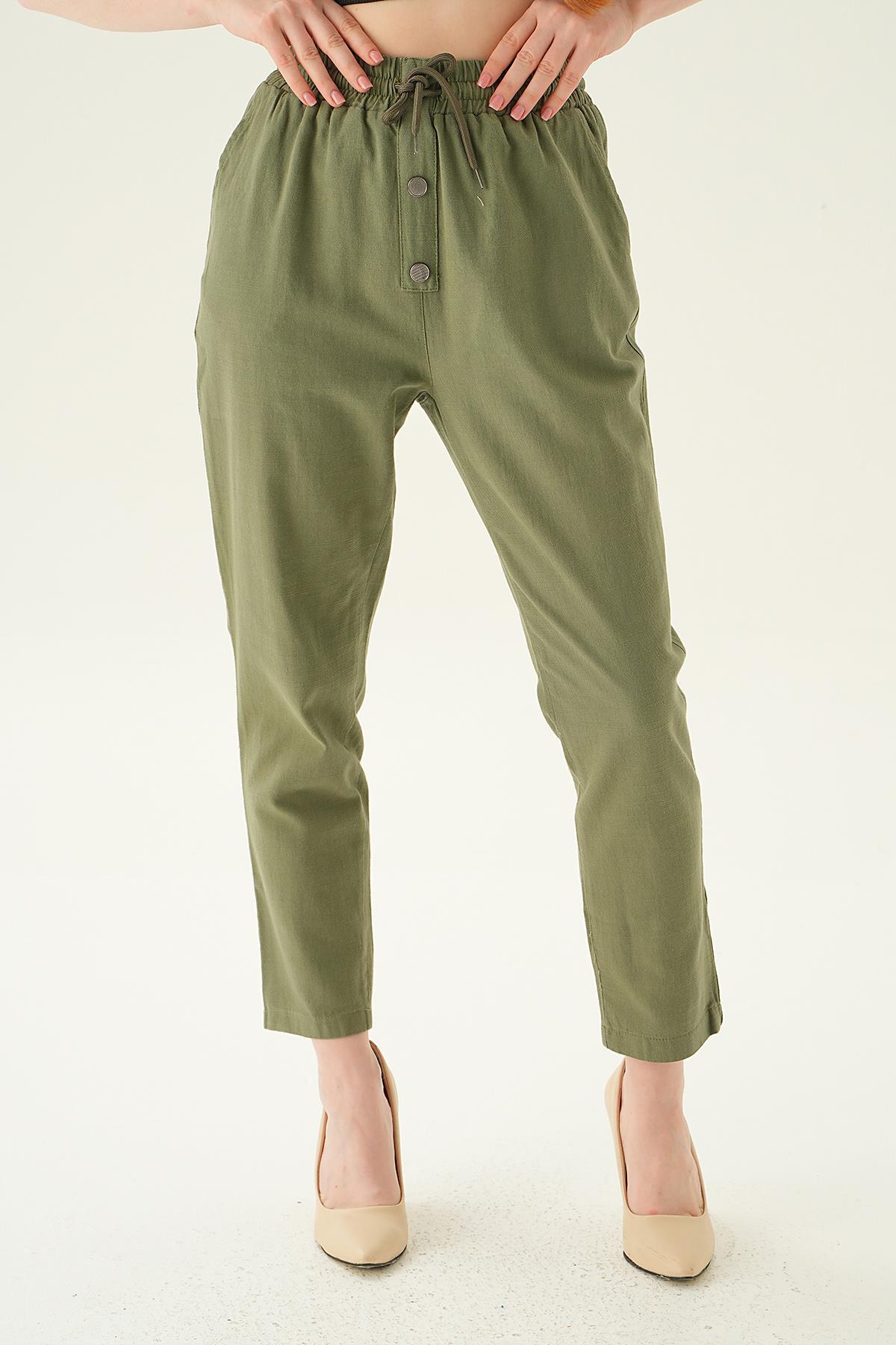 Haki Düğme Detay Bağcıklı Pantolon 4095A