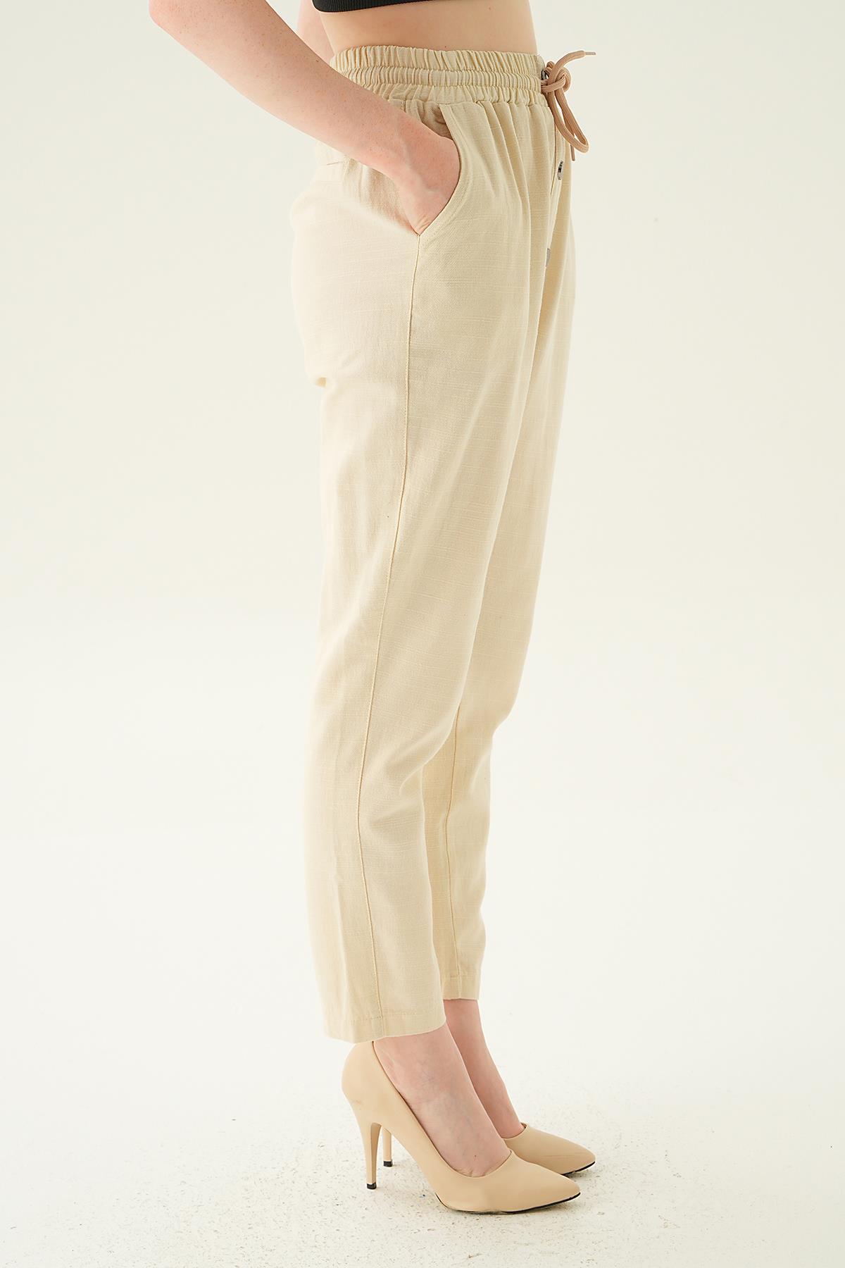 4095A Düğme Detay Bağcıklı Pantolon Taş