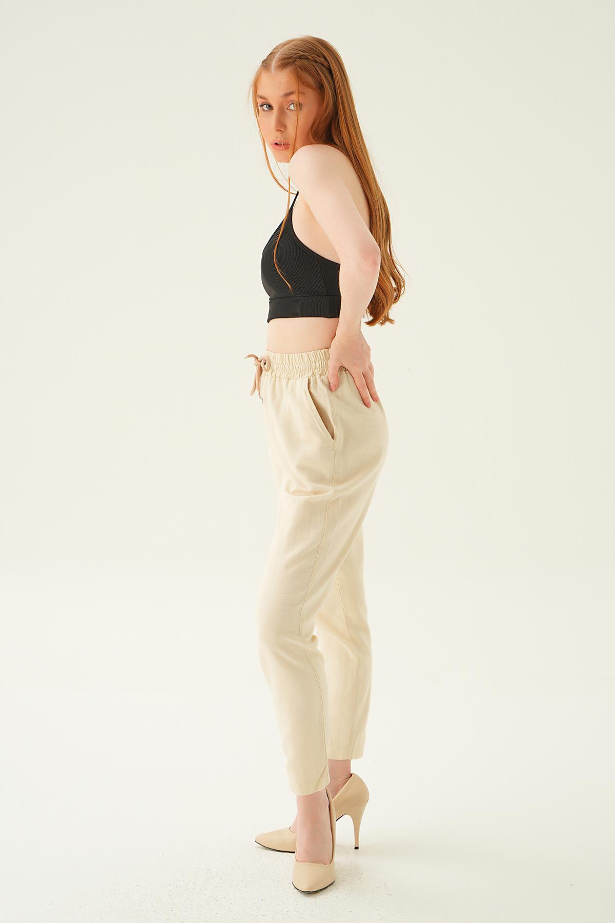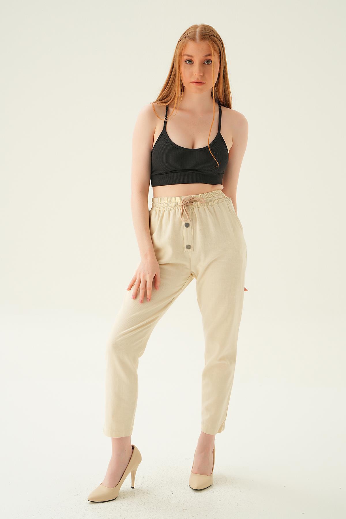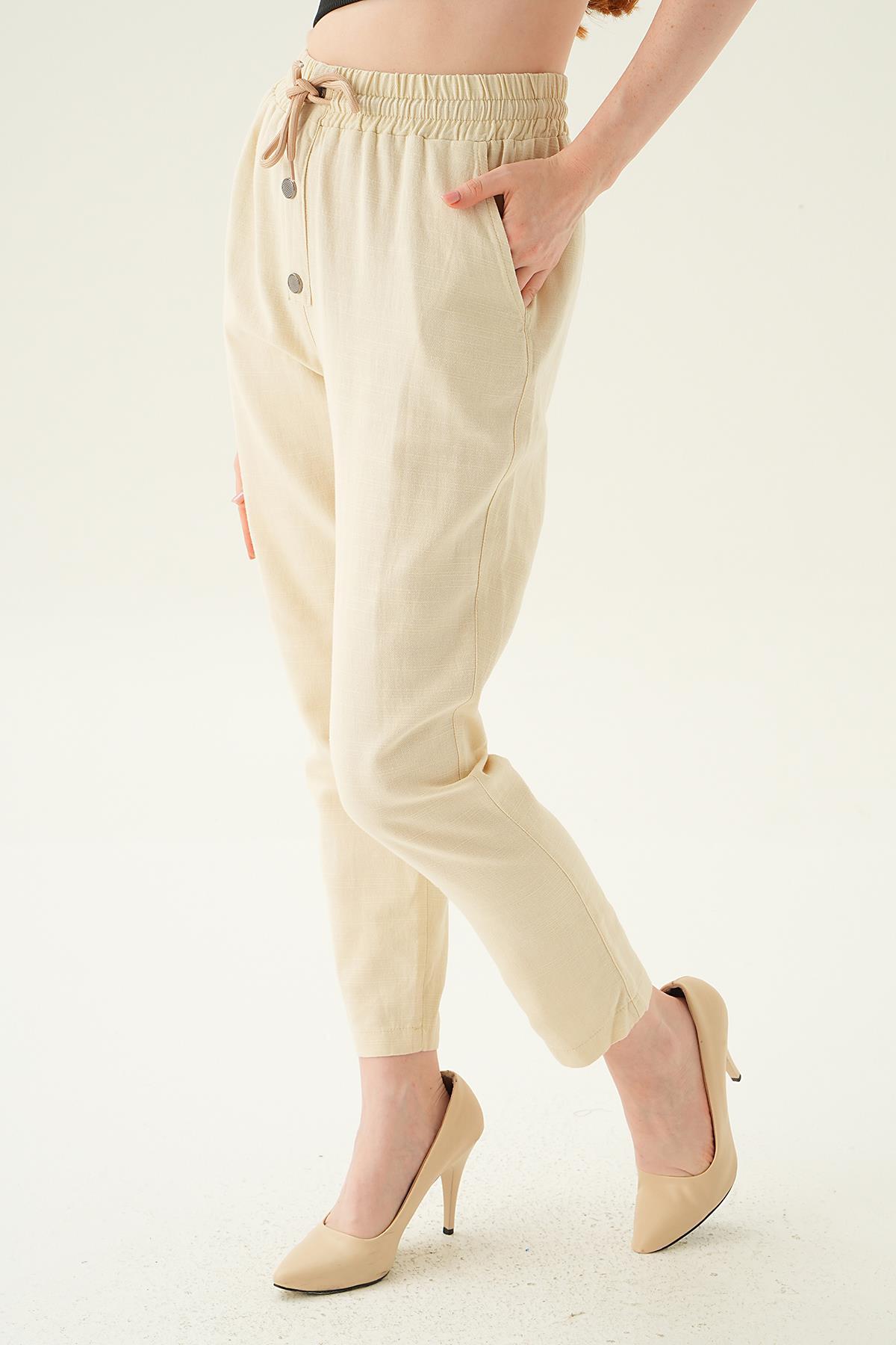 Taş Düğme Detay Bağcıklı Pantolon 4095A