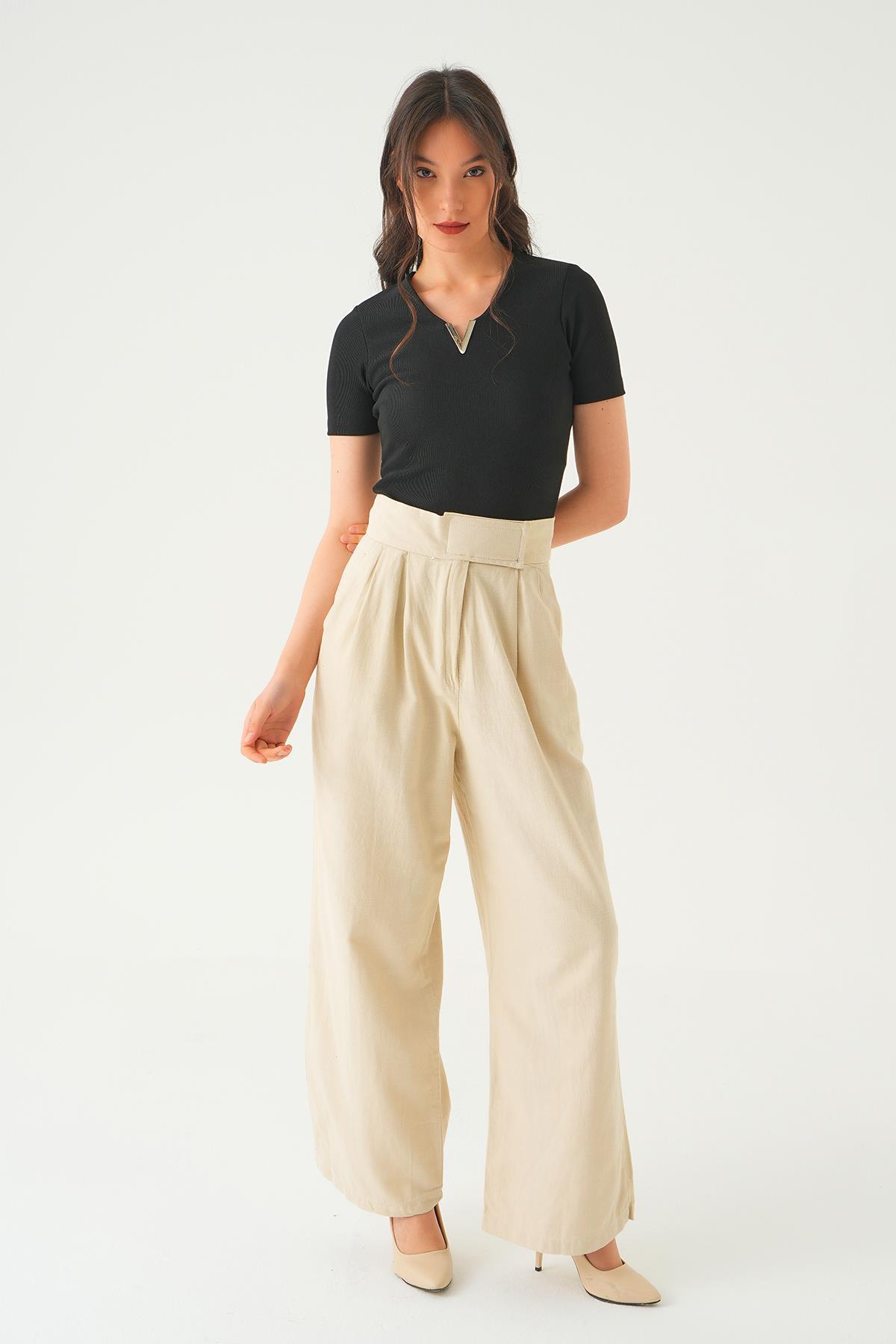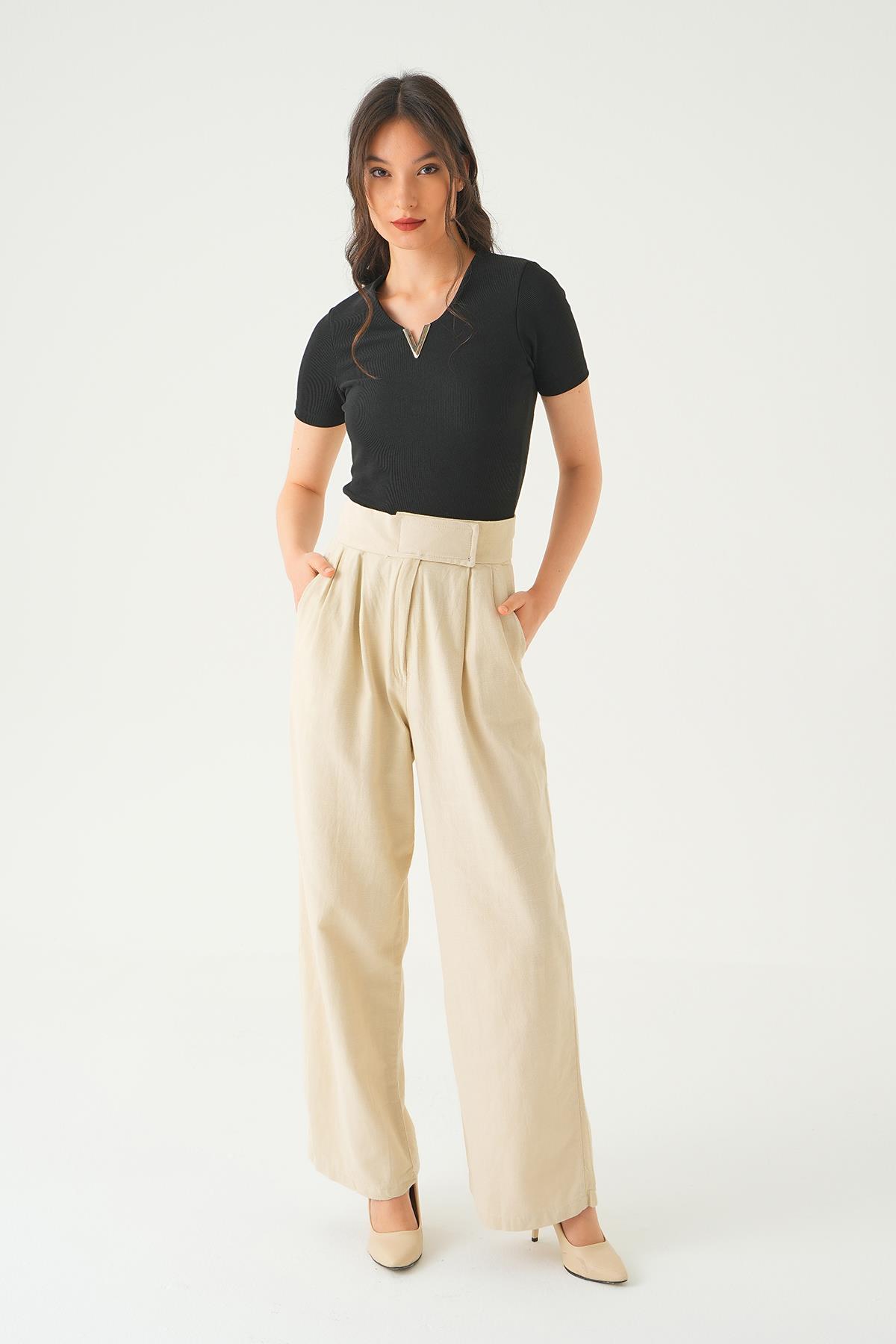 Vizon Pileli Geniş Paça Pantolon 3867 - RAYS Vizon Pileli Geniş Paça Pantolon 3867 - RAYS (1)