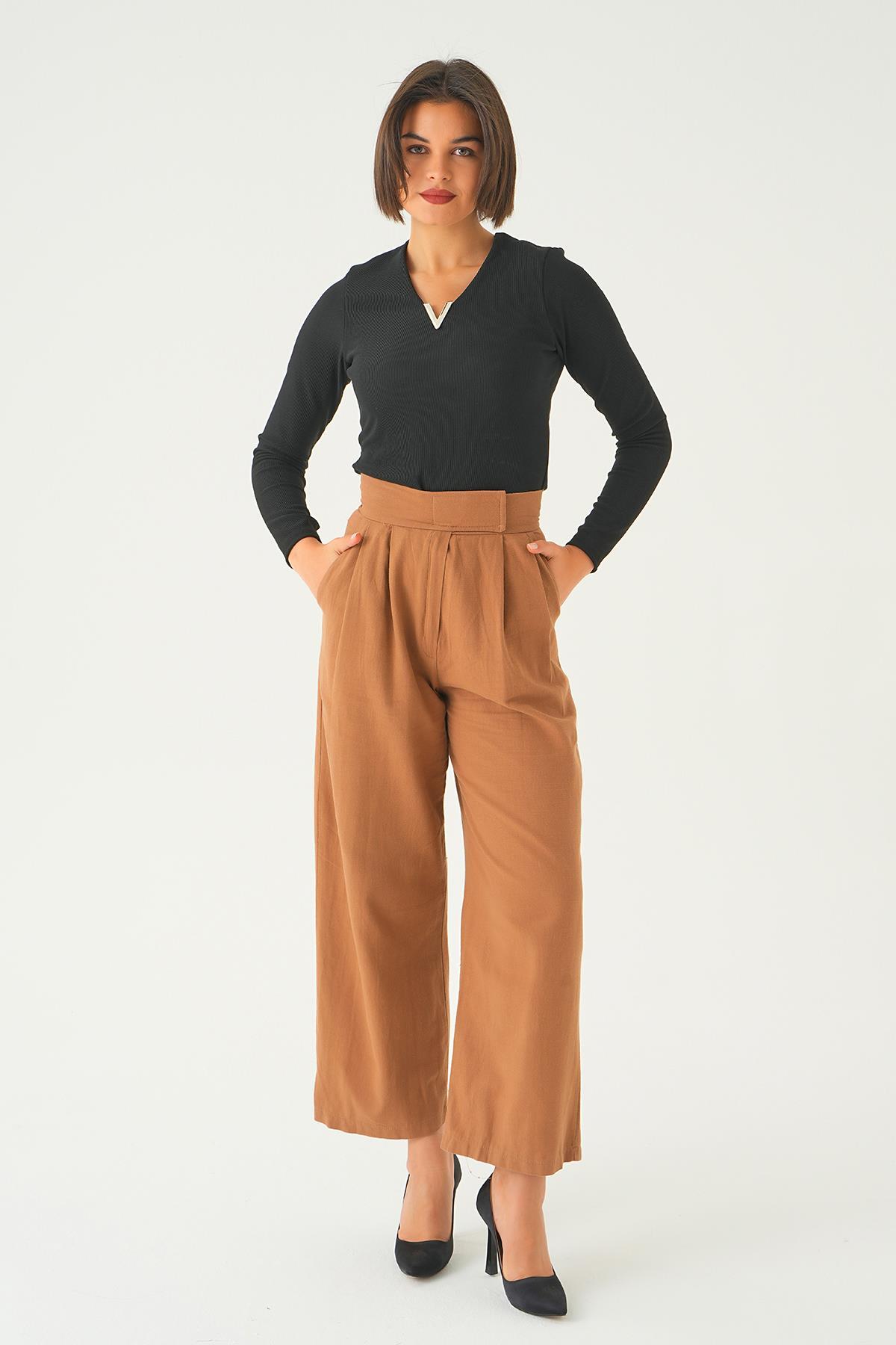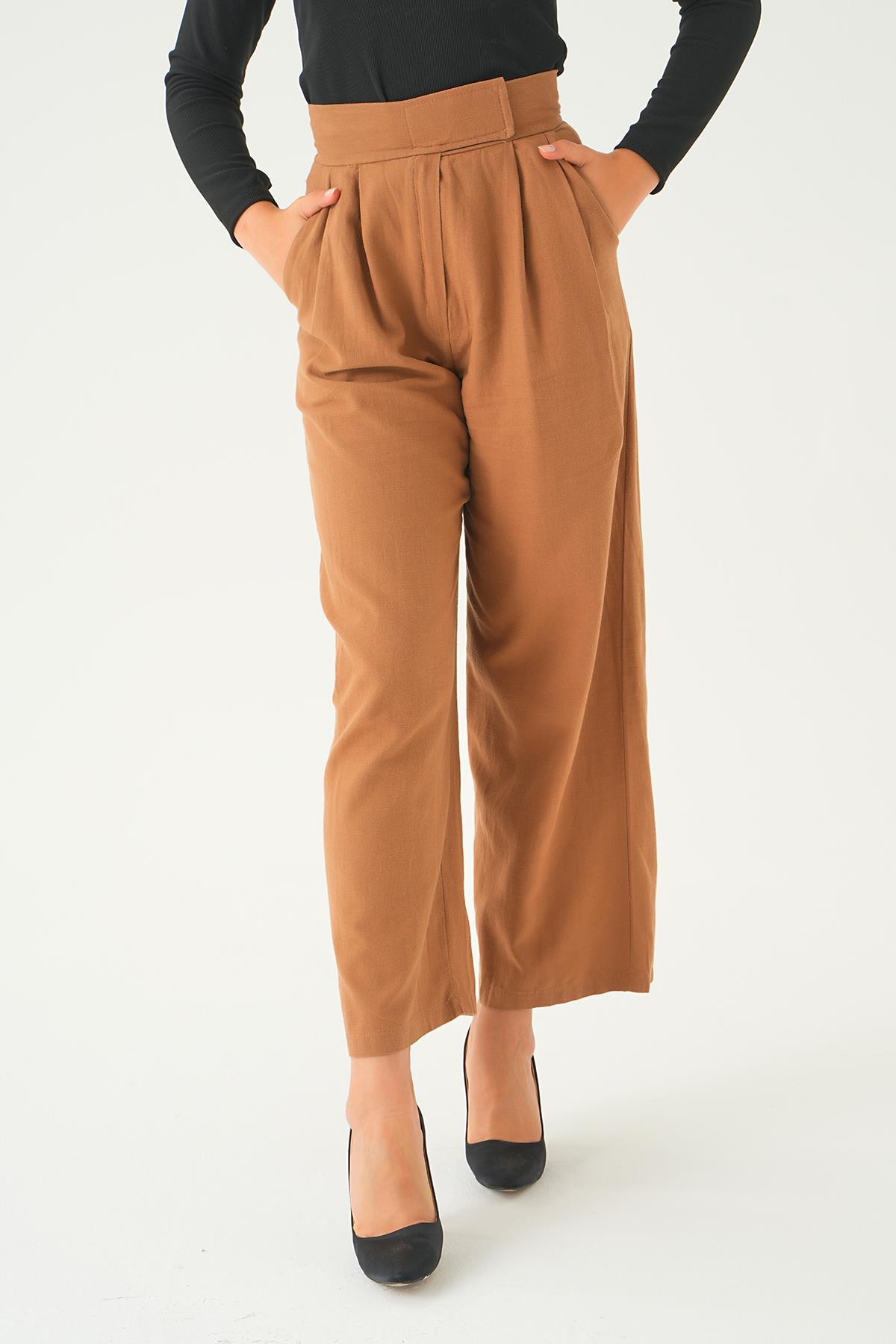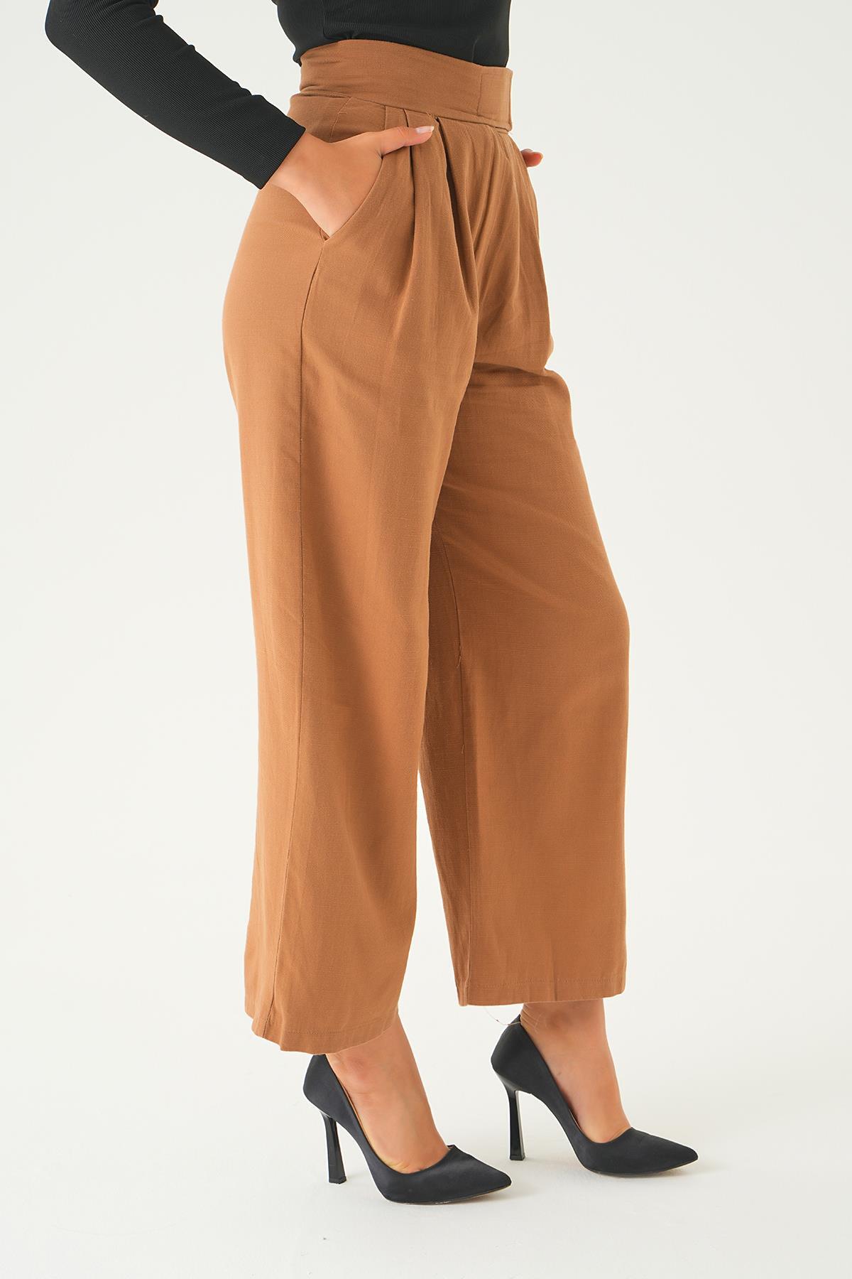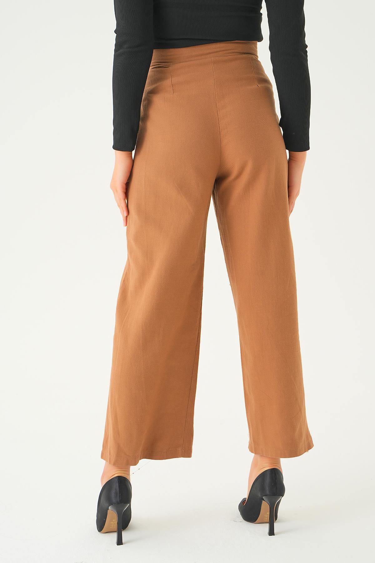 Kahve Pileli Geniş Paça Pantolon 3867 - RAYS Kahve Pileli Geniş Paça Pantolon 3867 - RAYS (1)