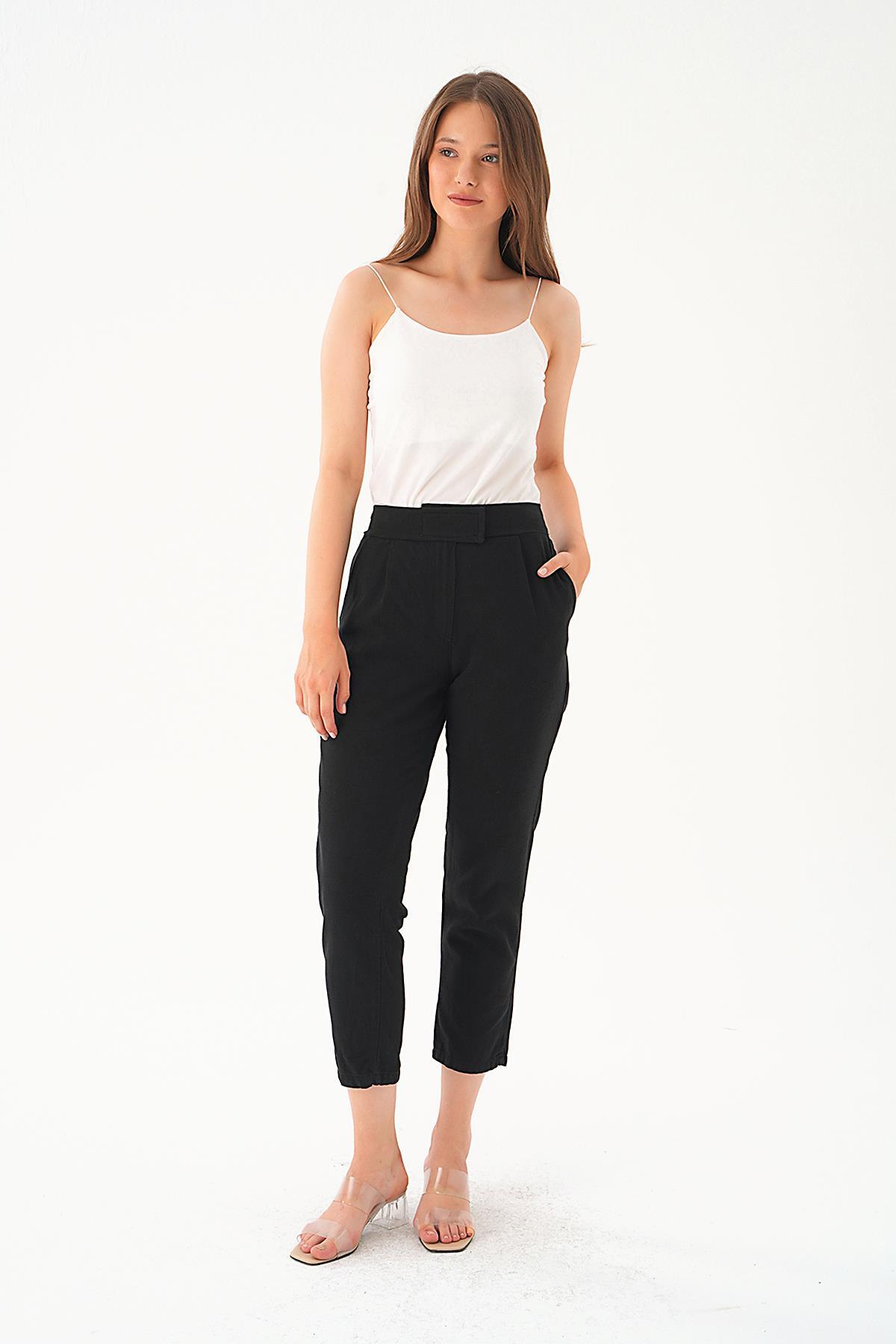 Siyah Pileli Geniş Paça Pantolon 3867