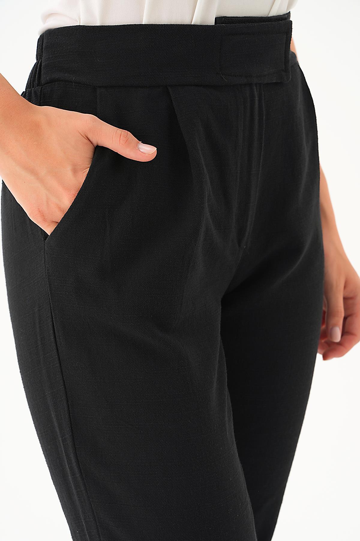 Siyah Pileli Palazzo Pantolon 3871