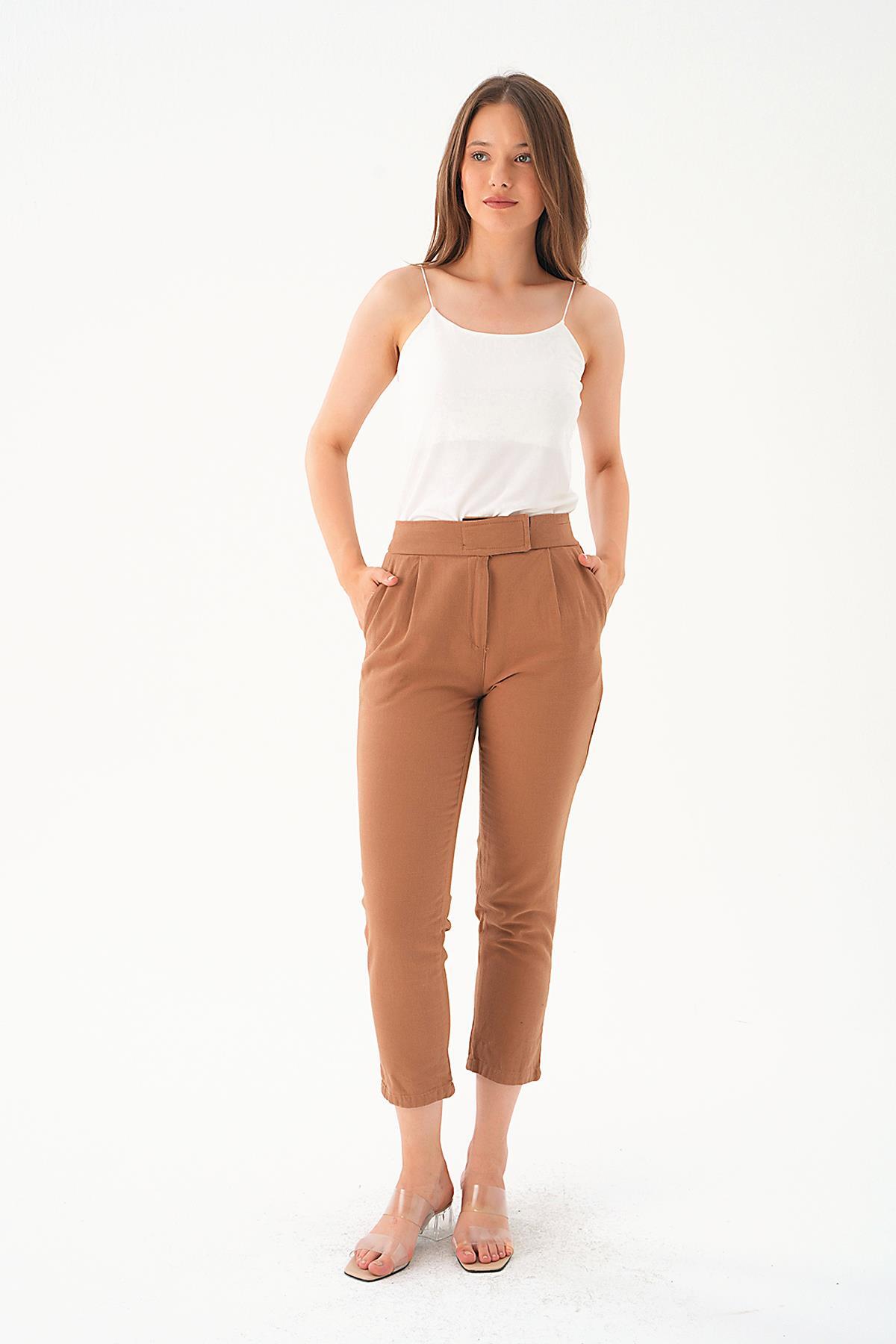 Kahve Pileli Geniş Paça Pantolon 3867