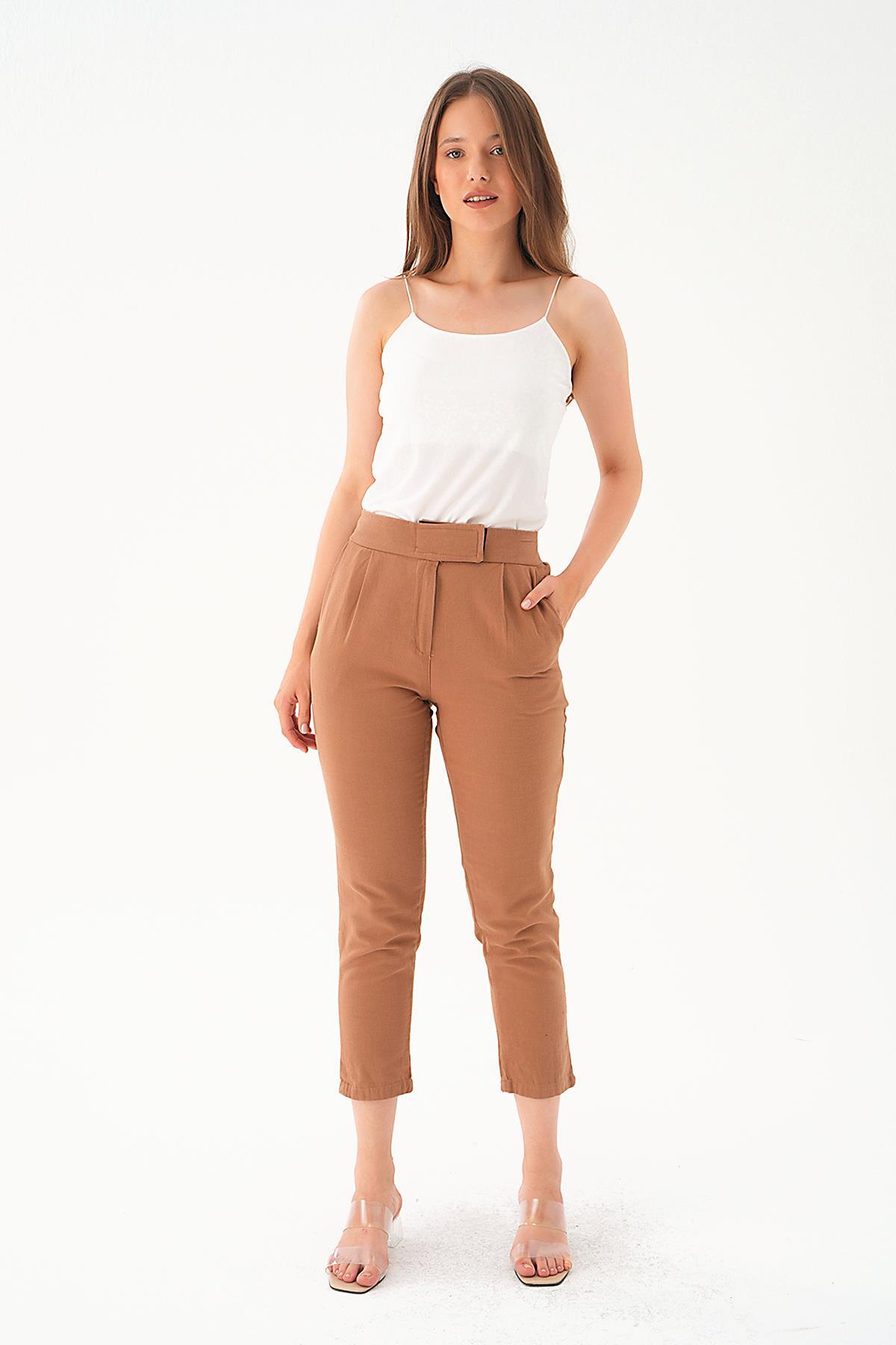 Kahve Pileli Geniş Paça Pantolon 3867 - RAYS Kahve Pileli Geniş Paça Pantolon 3867 - RAYS (1)