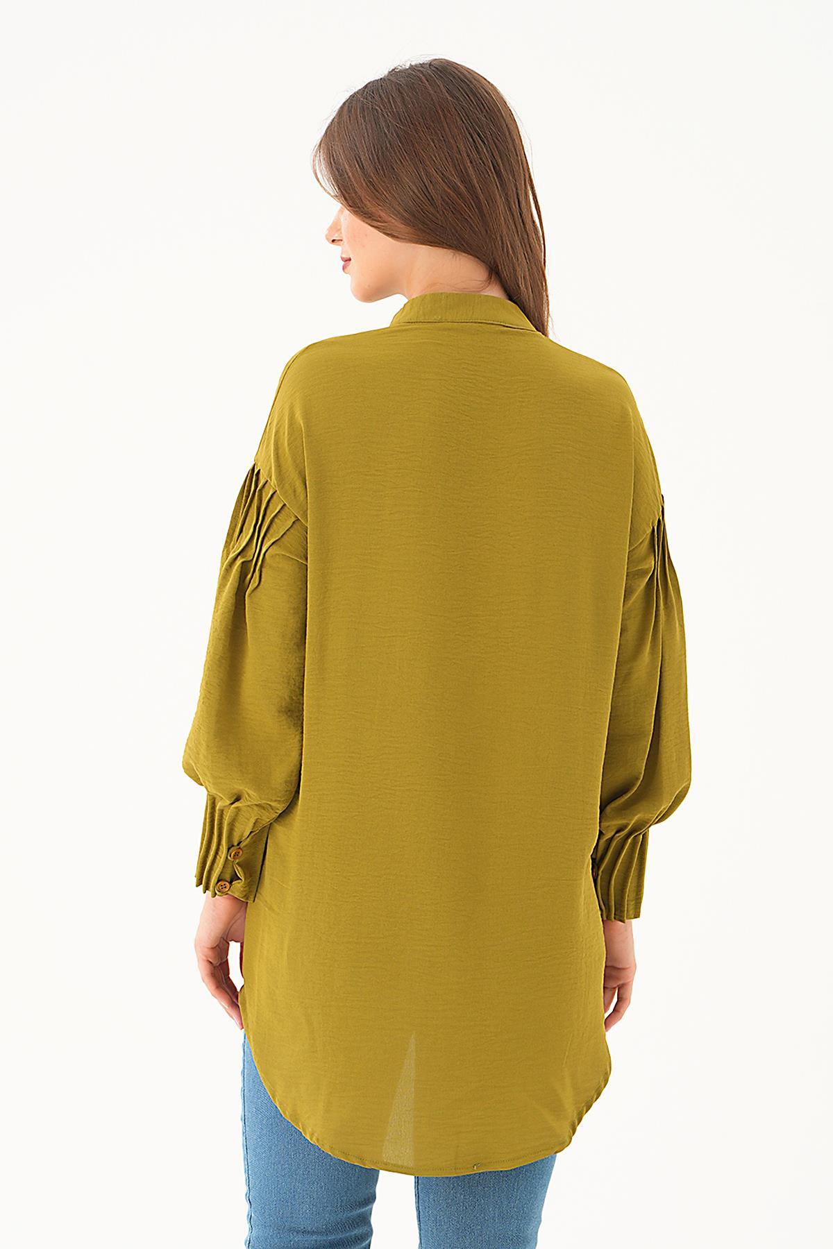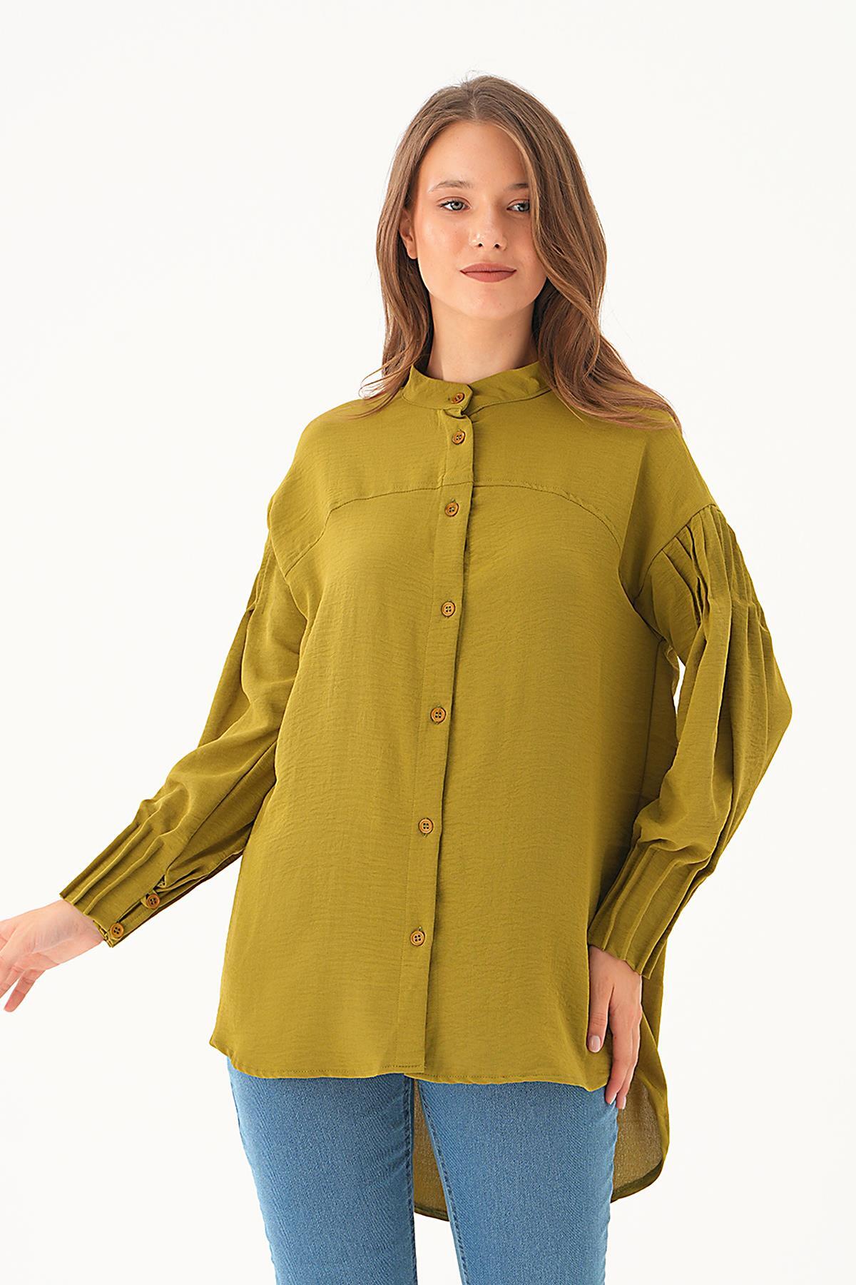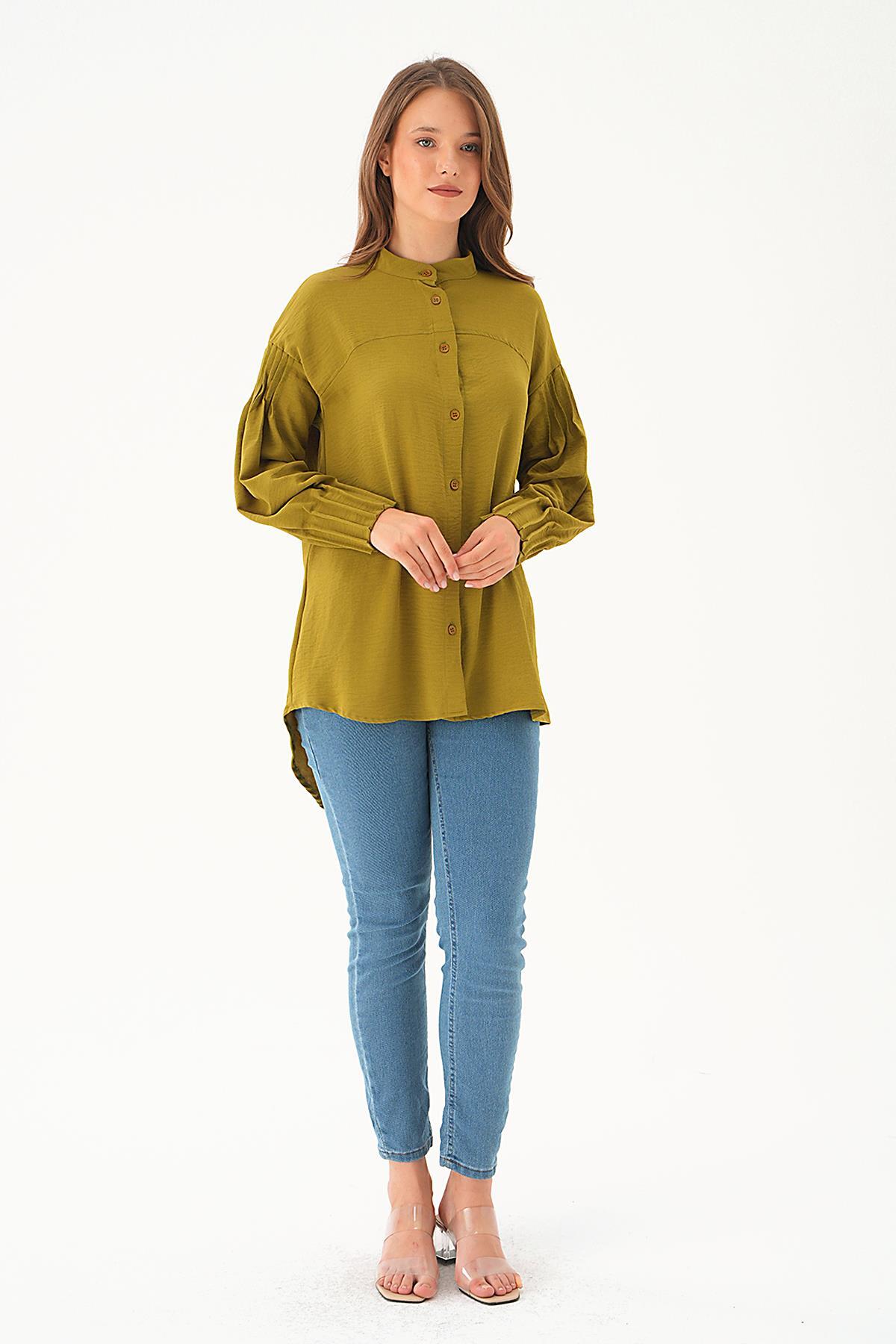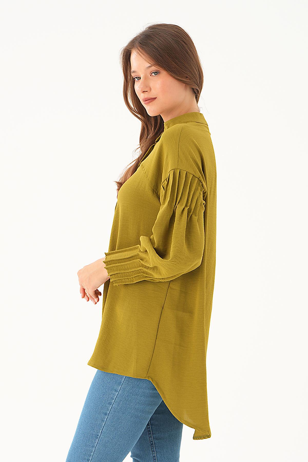 Yağ Yeşili Kol Drape Detay Gömlek 4098A