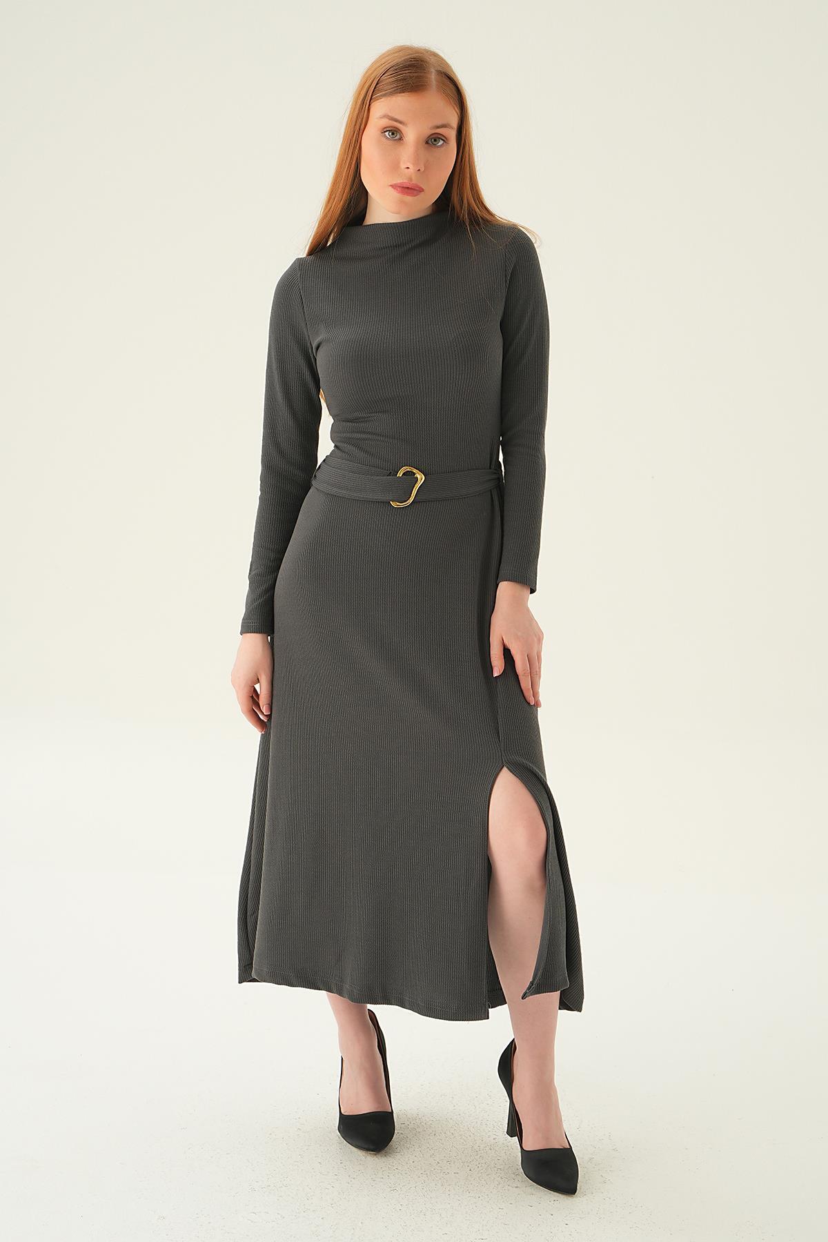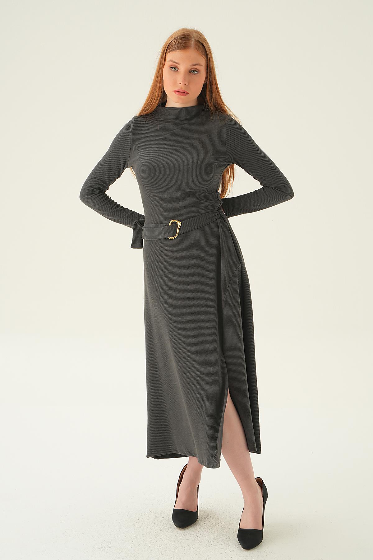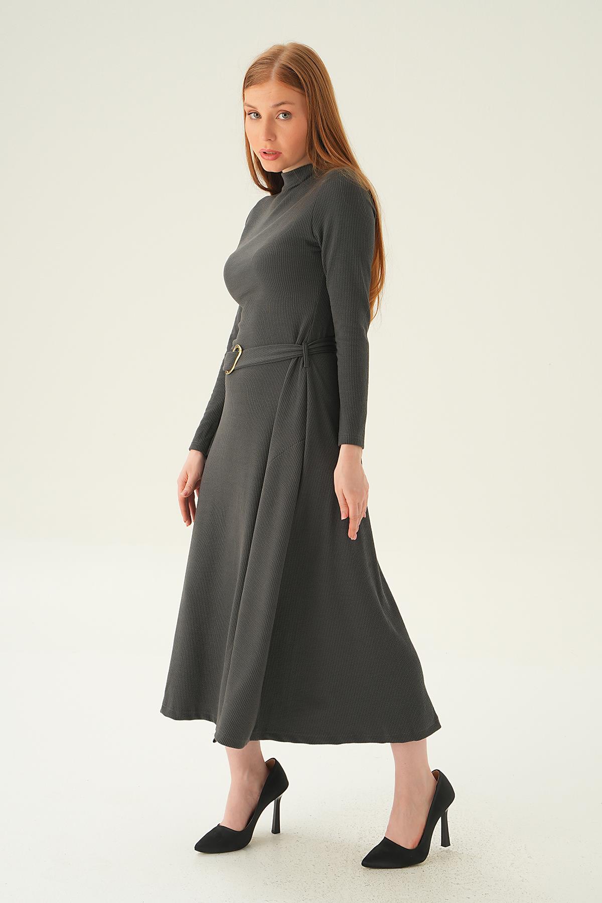 Laci Ekose Desenli Kemerli Elbise 35555 - RAYS