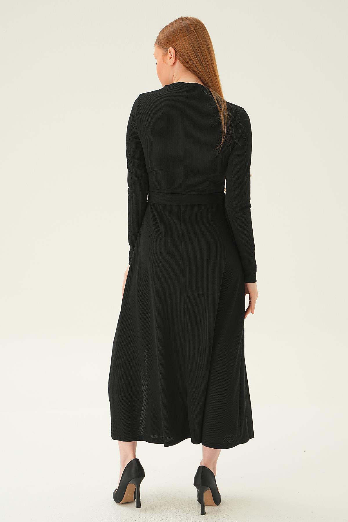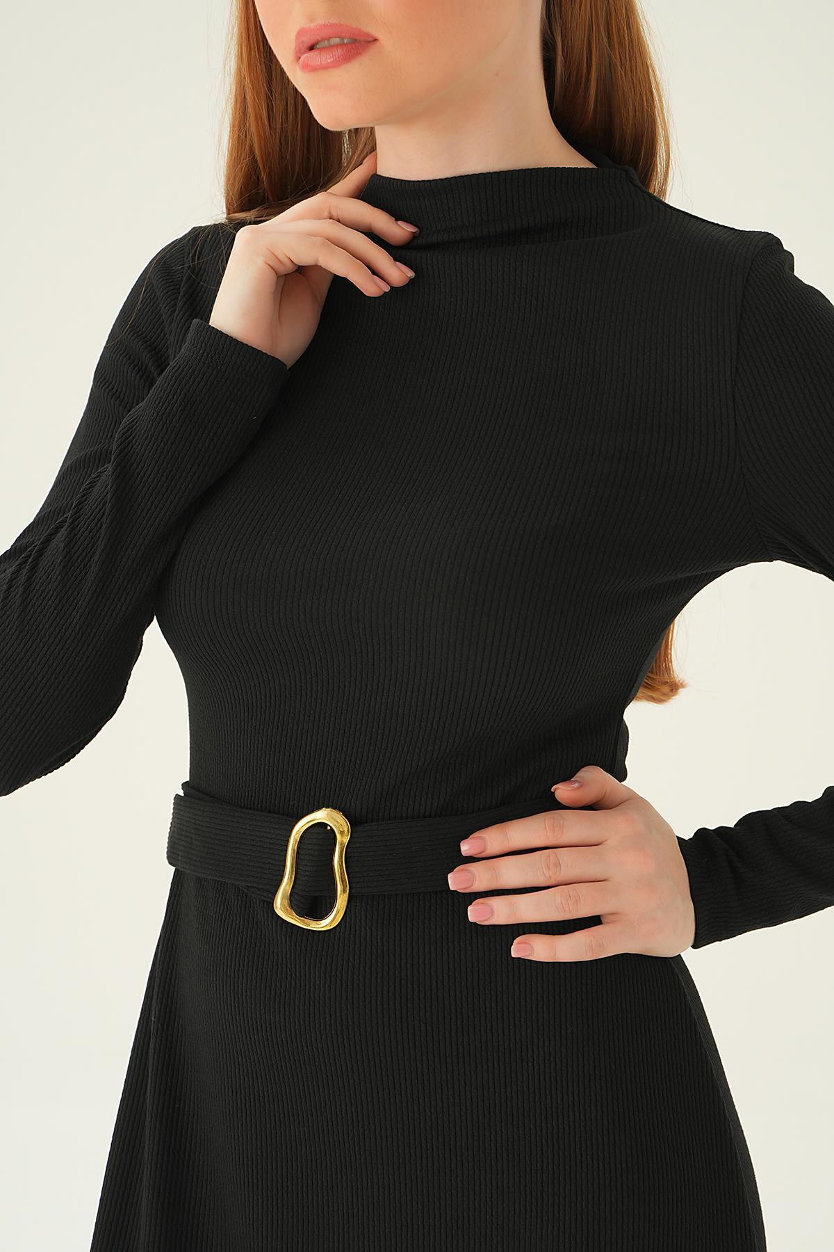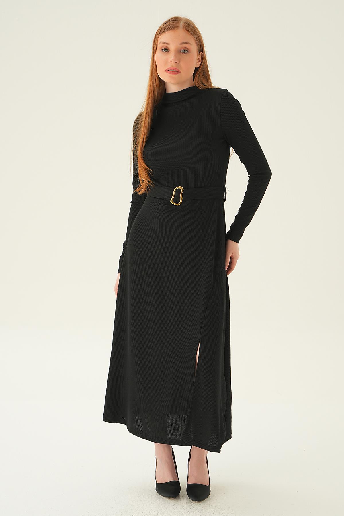 Siyah Kemer Detay Elbise 4100