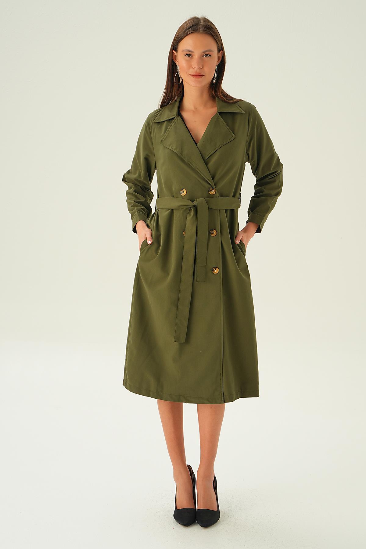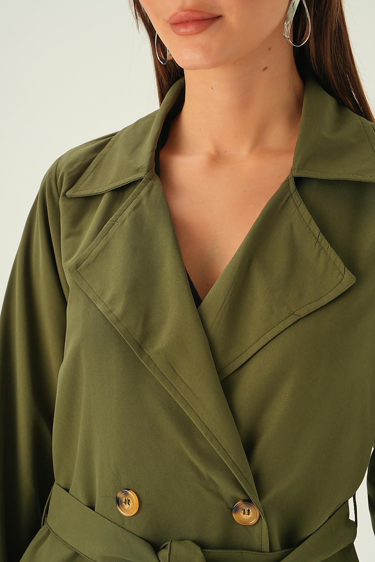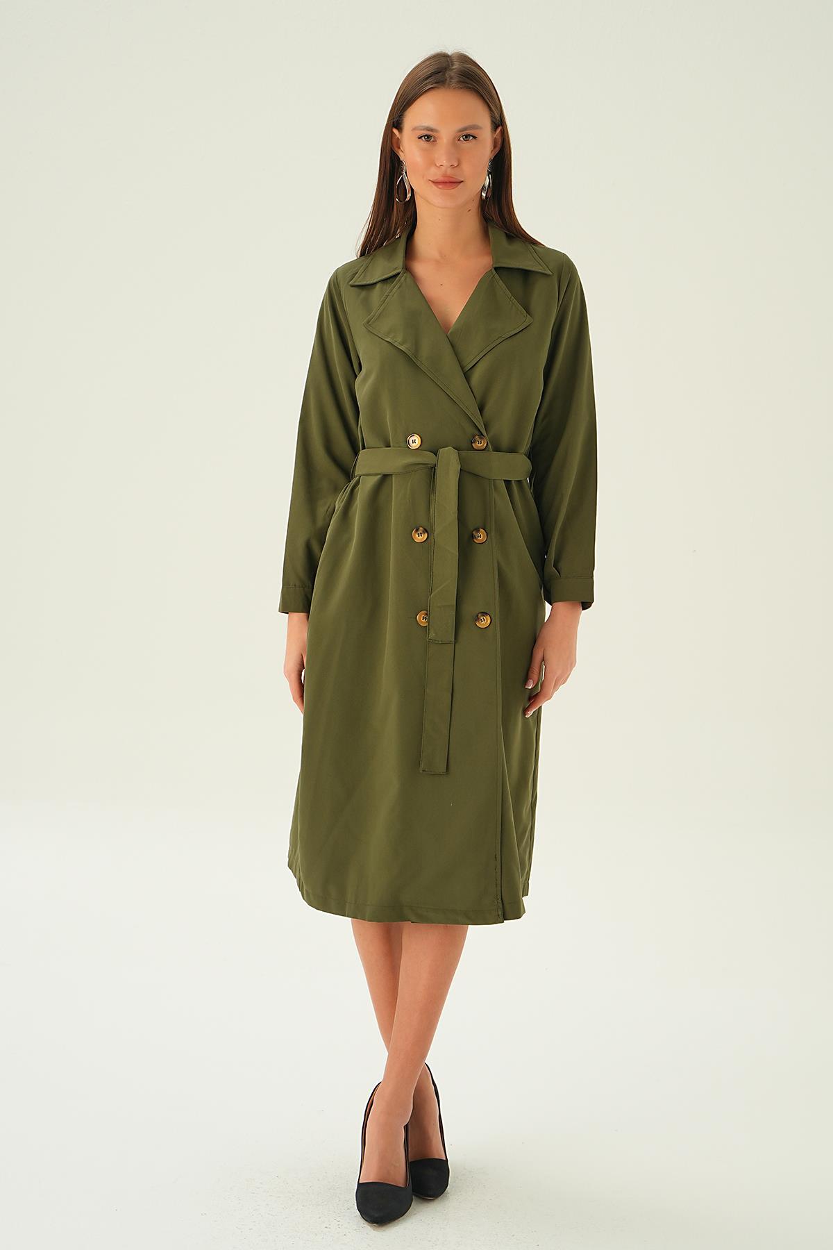 4102A Kemer Detay Düğmeli Trençkot Haki