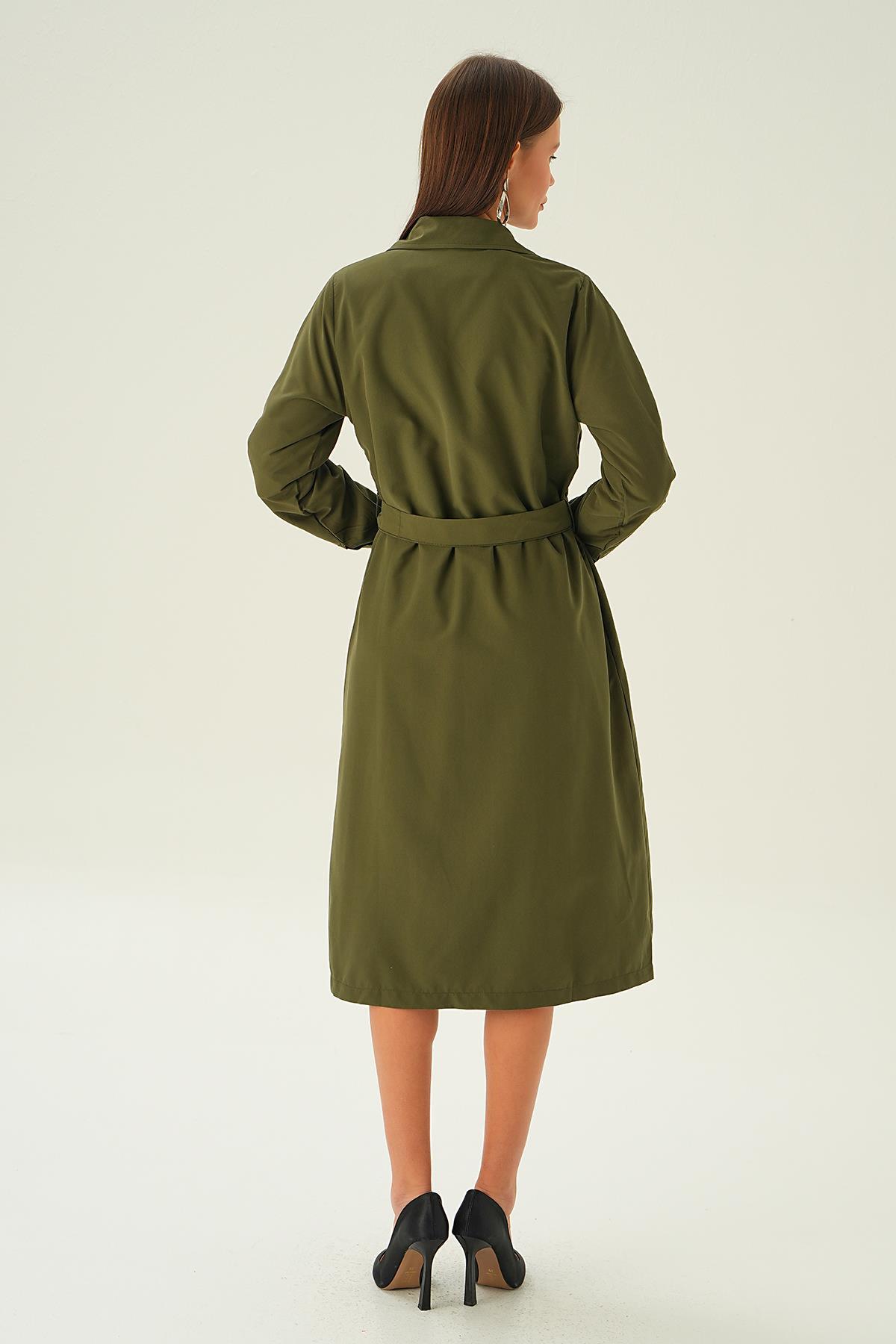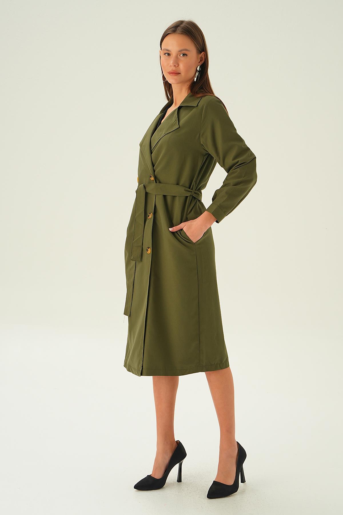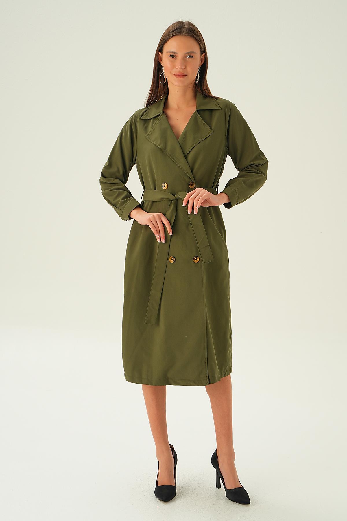 4102A Kemer Detay Düğmeli Trençkot Haki