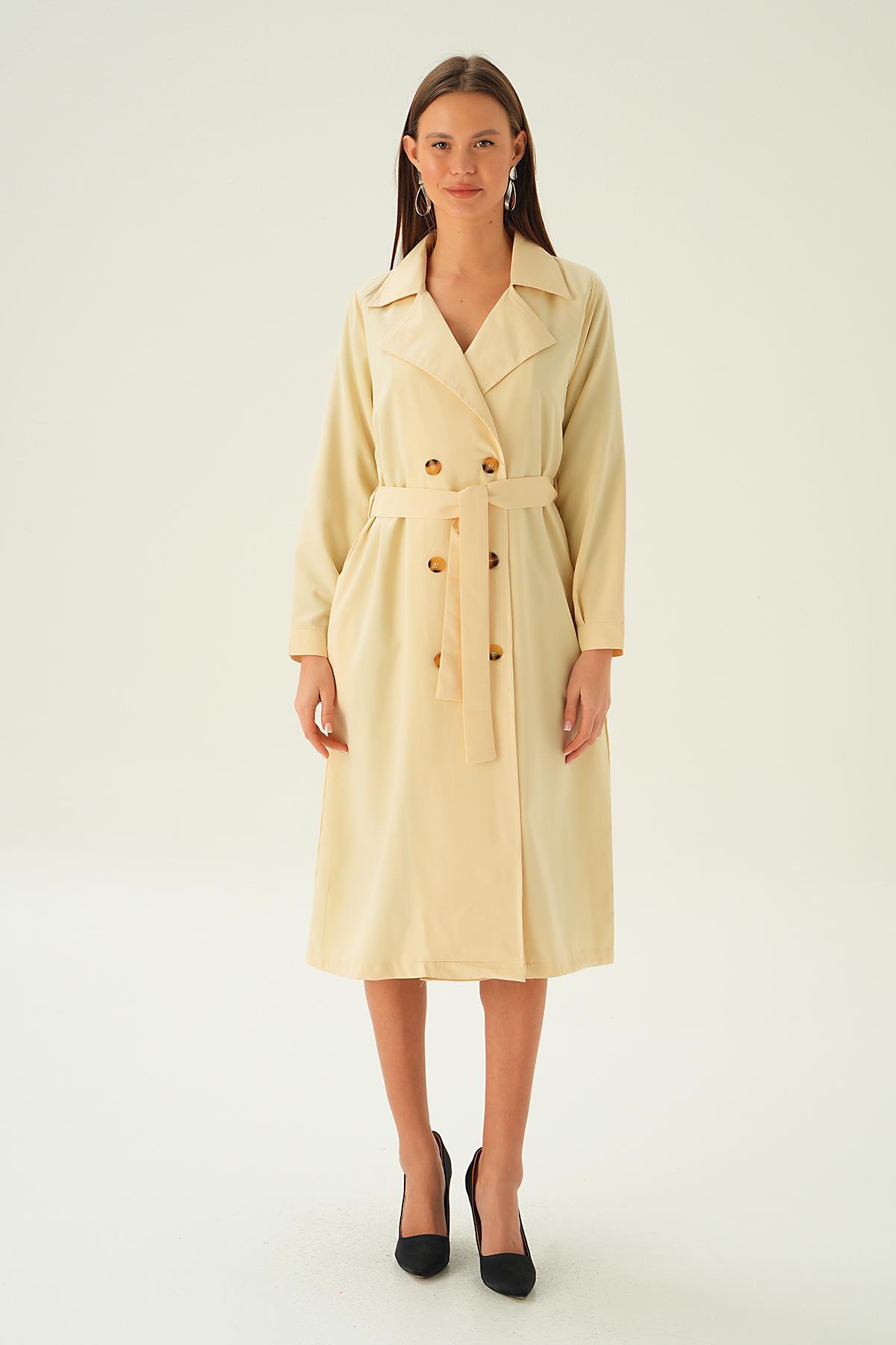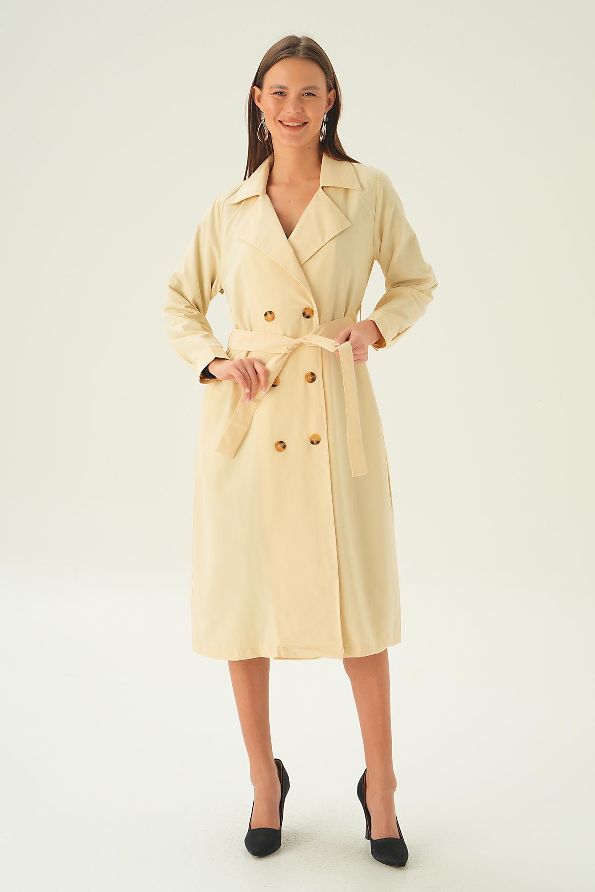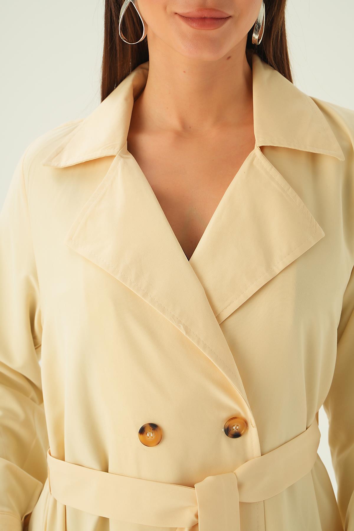 Krem Kemer Detay Düğmeli Trençkot 4102A