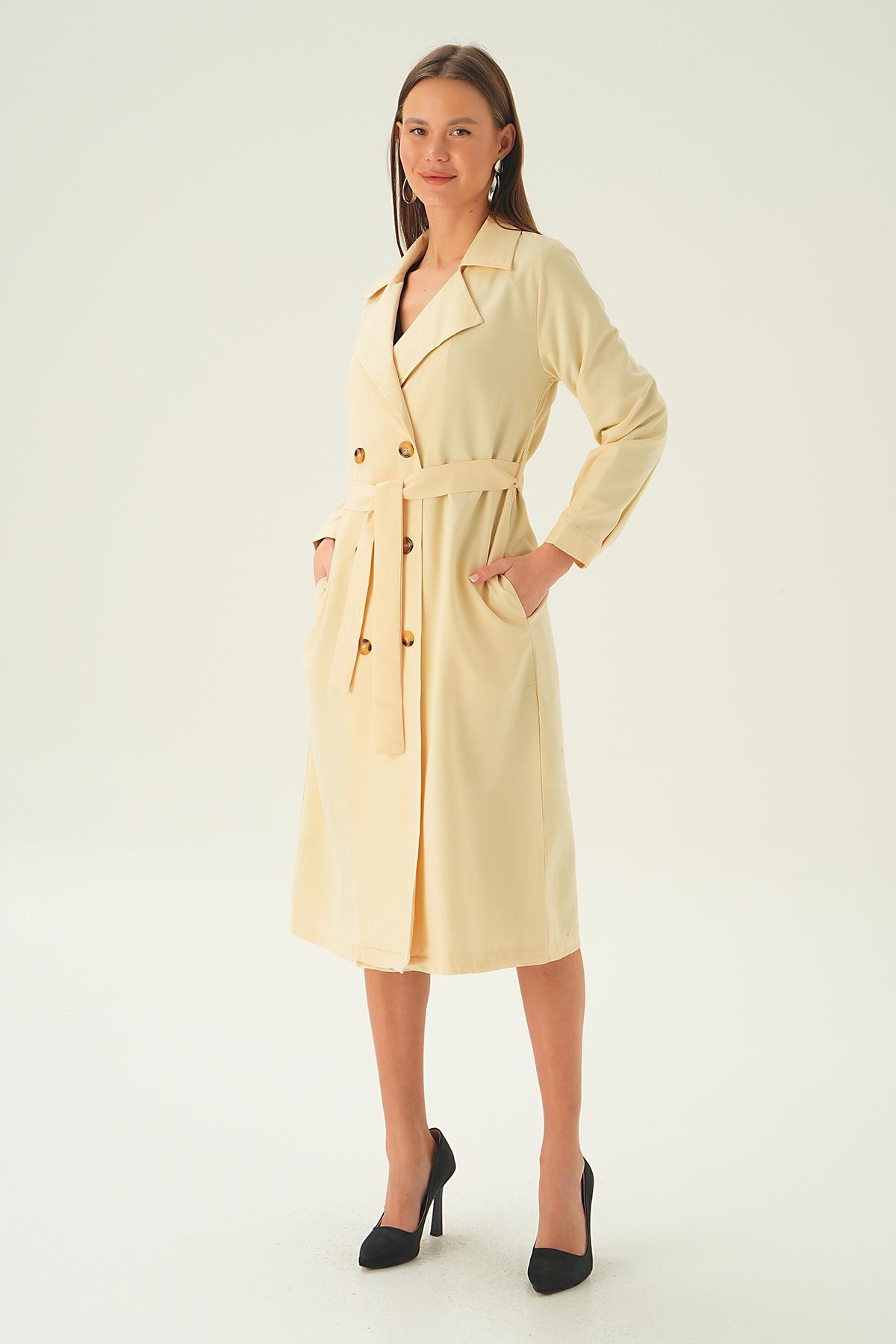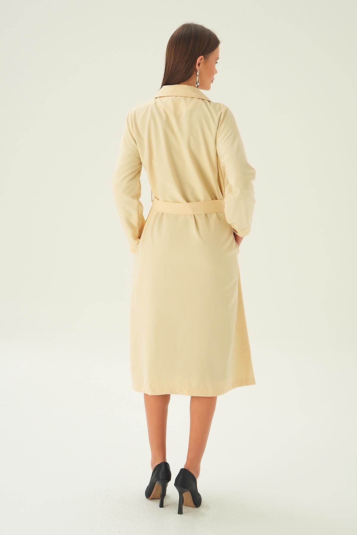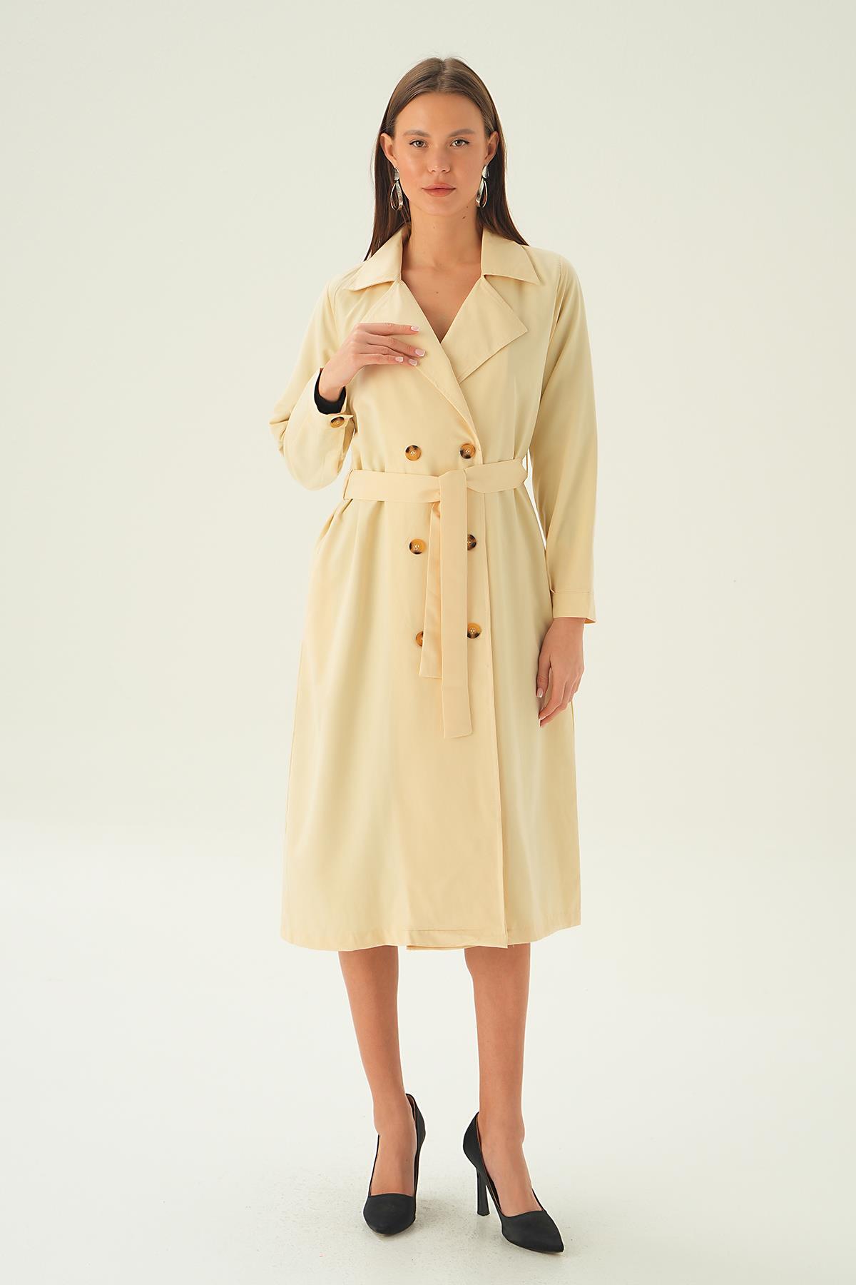 Krem Kemer Detay Düğmeli Trençkot 4102A
