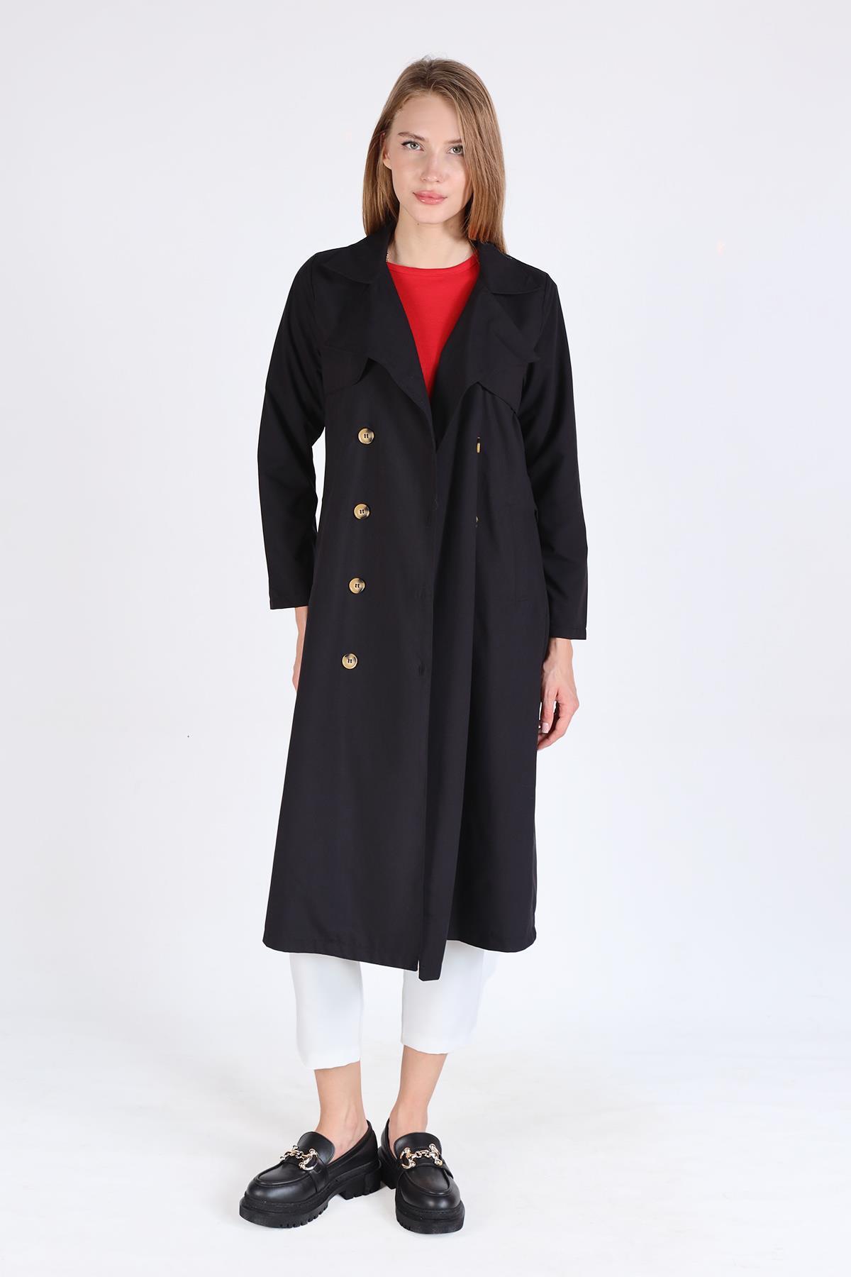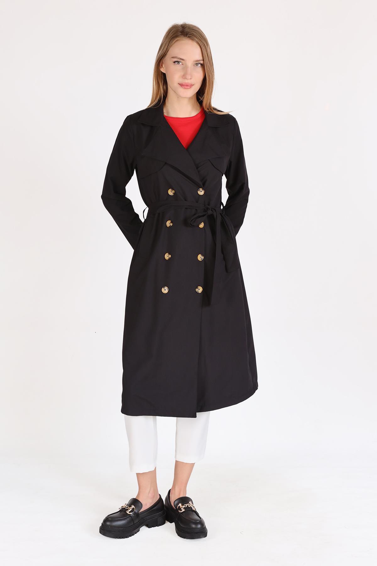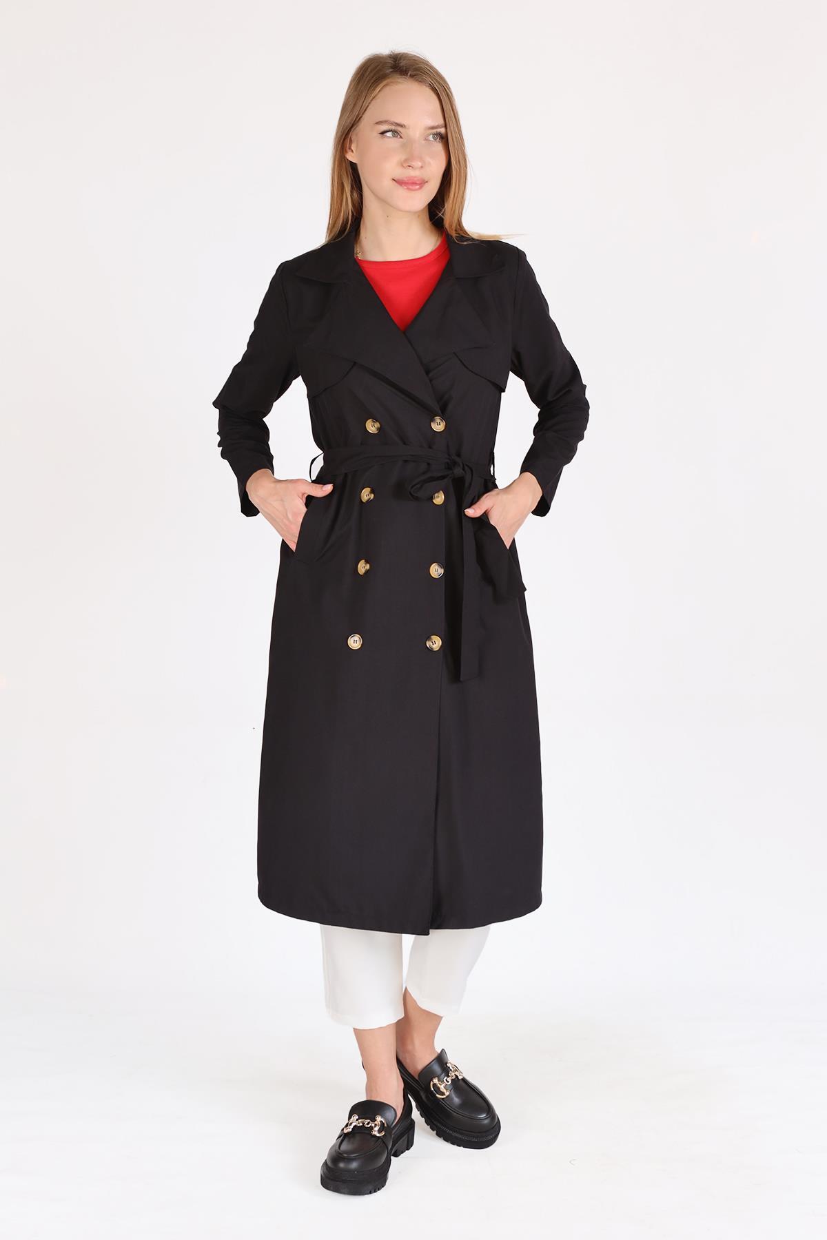 Siyah Parçalı Trençkot 4104A