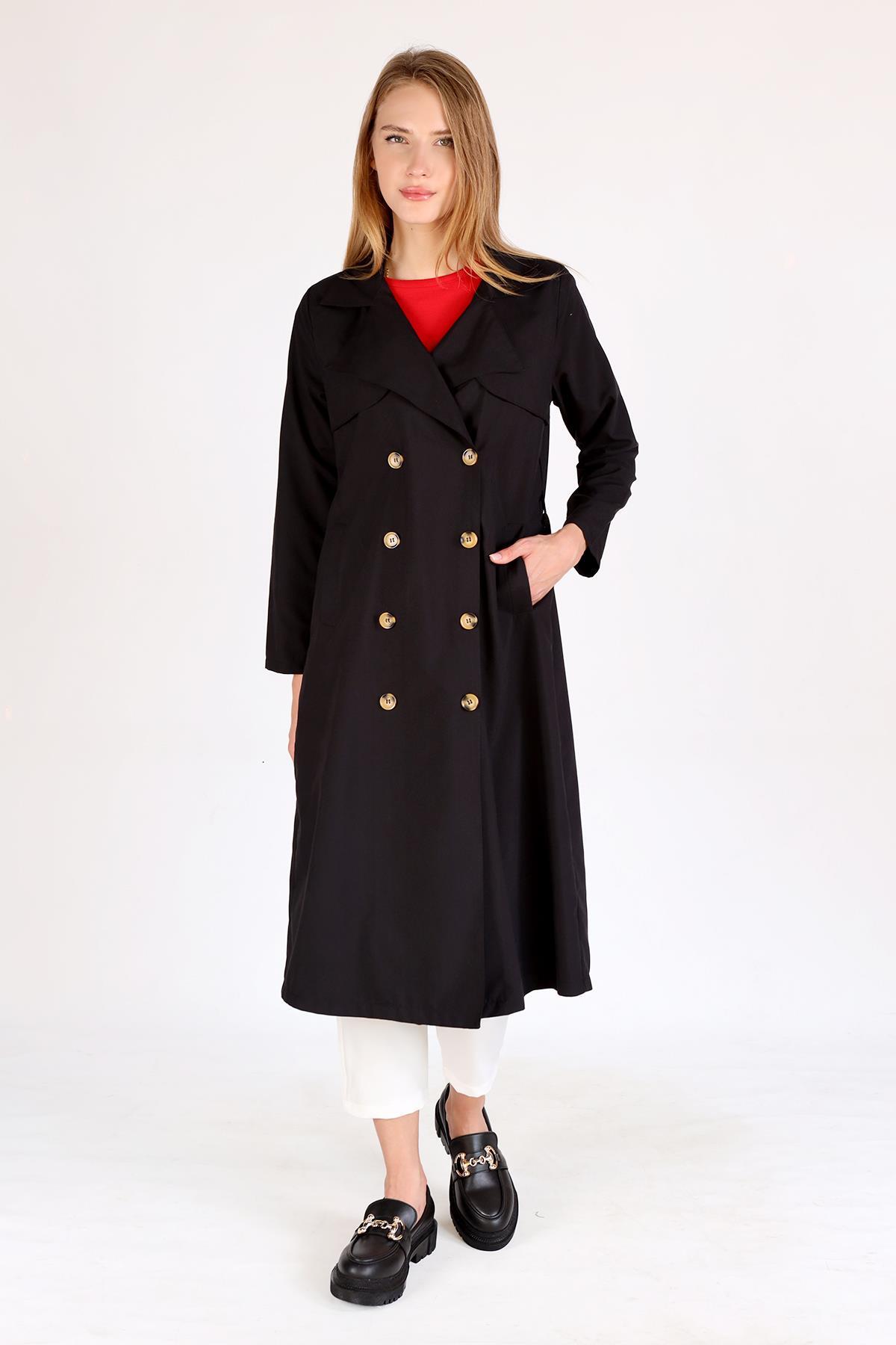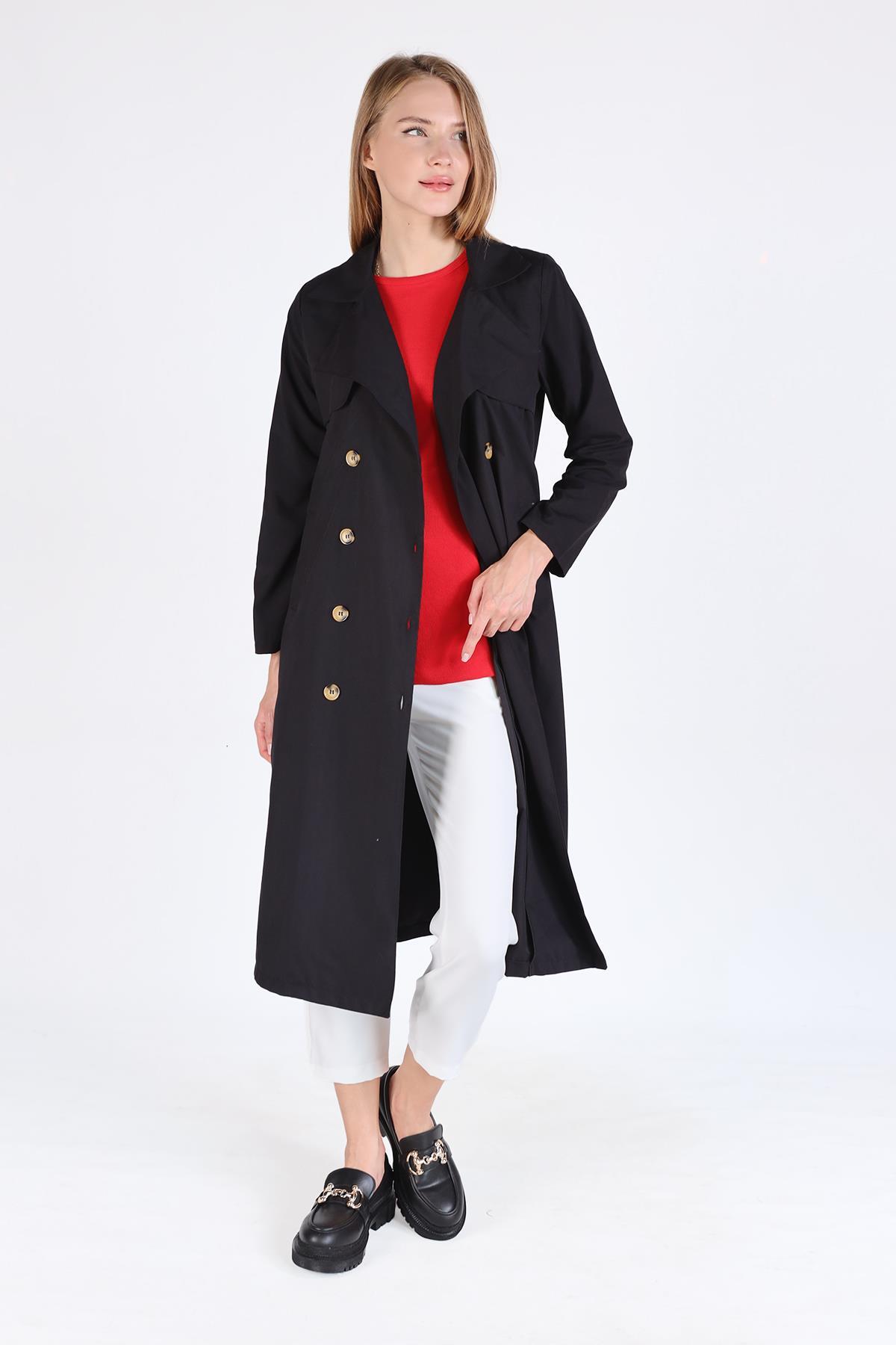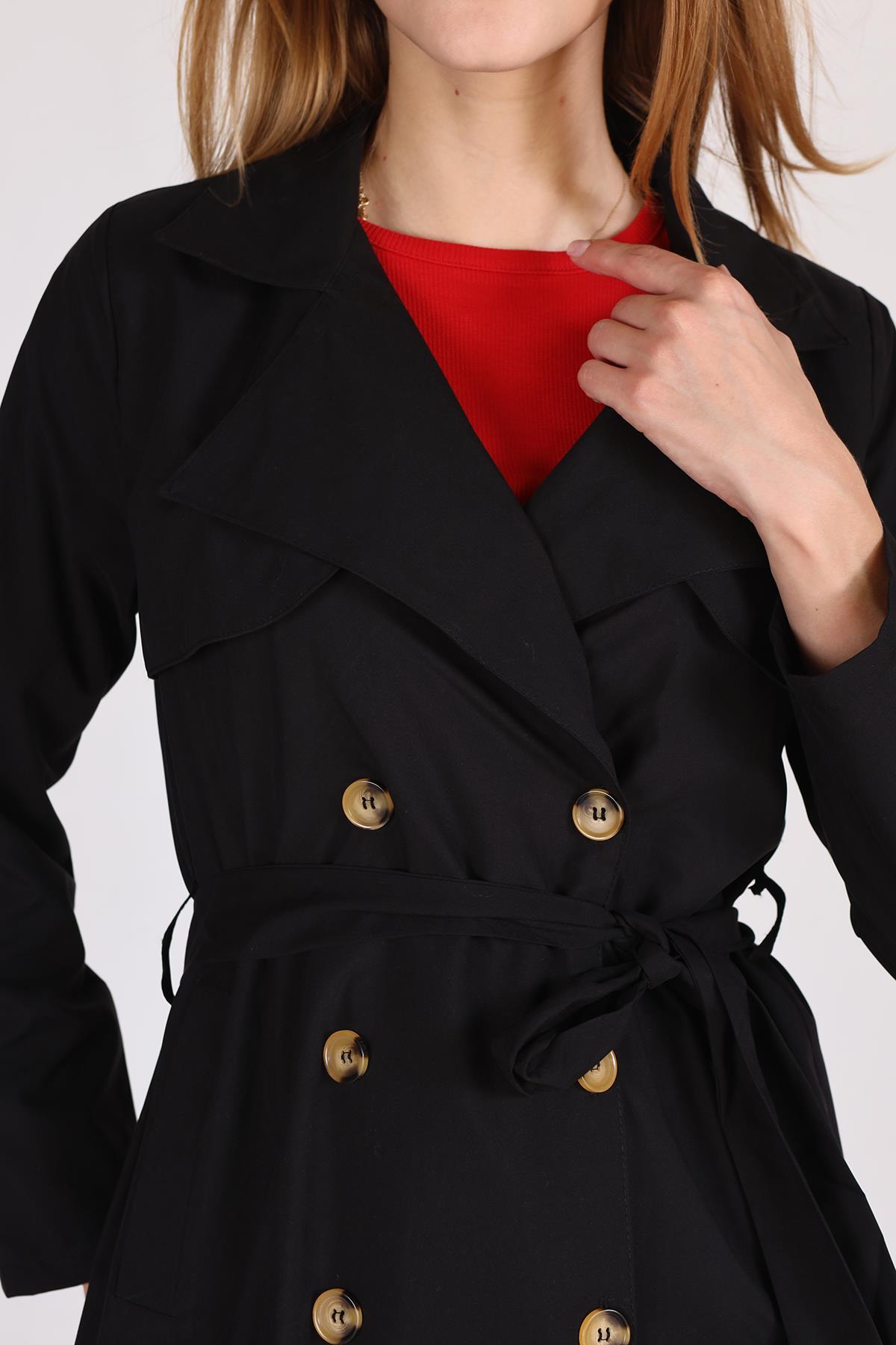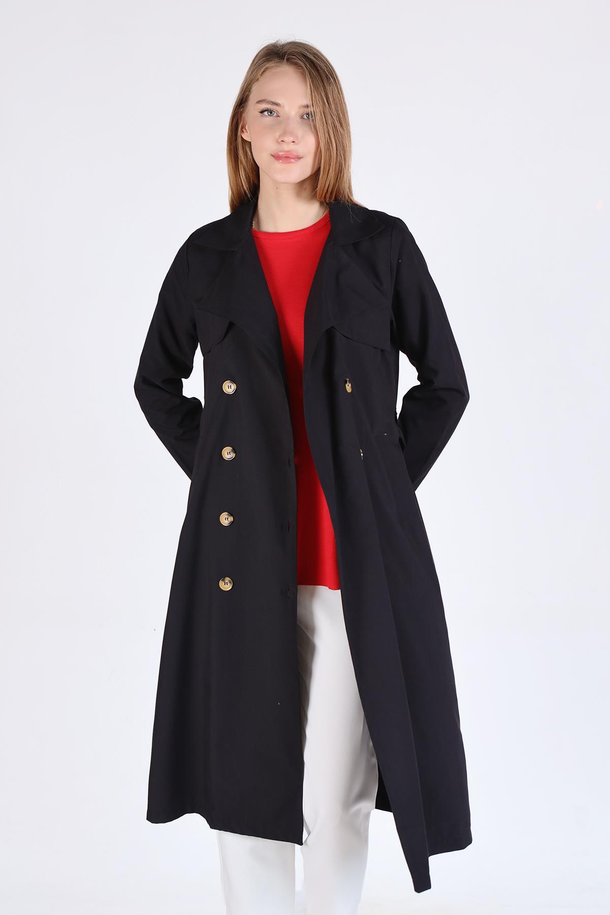 Siyah Parçalı Trençkot 4104A