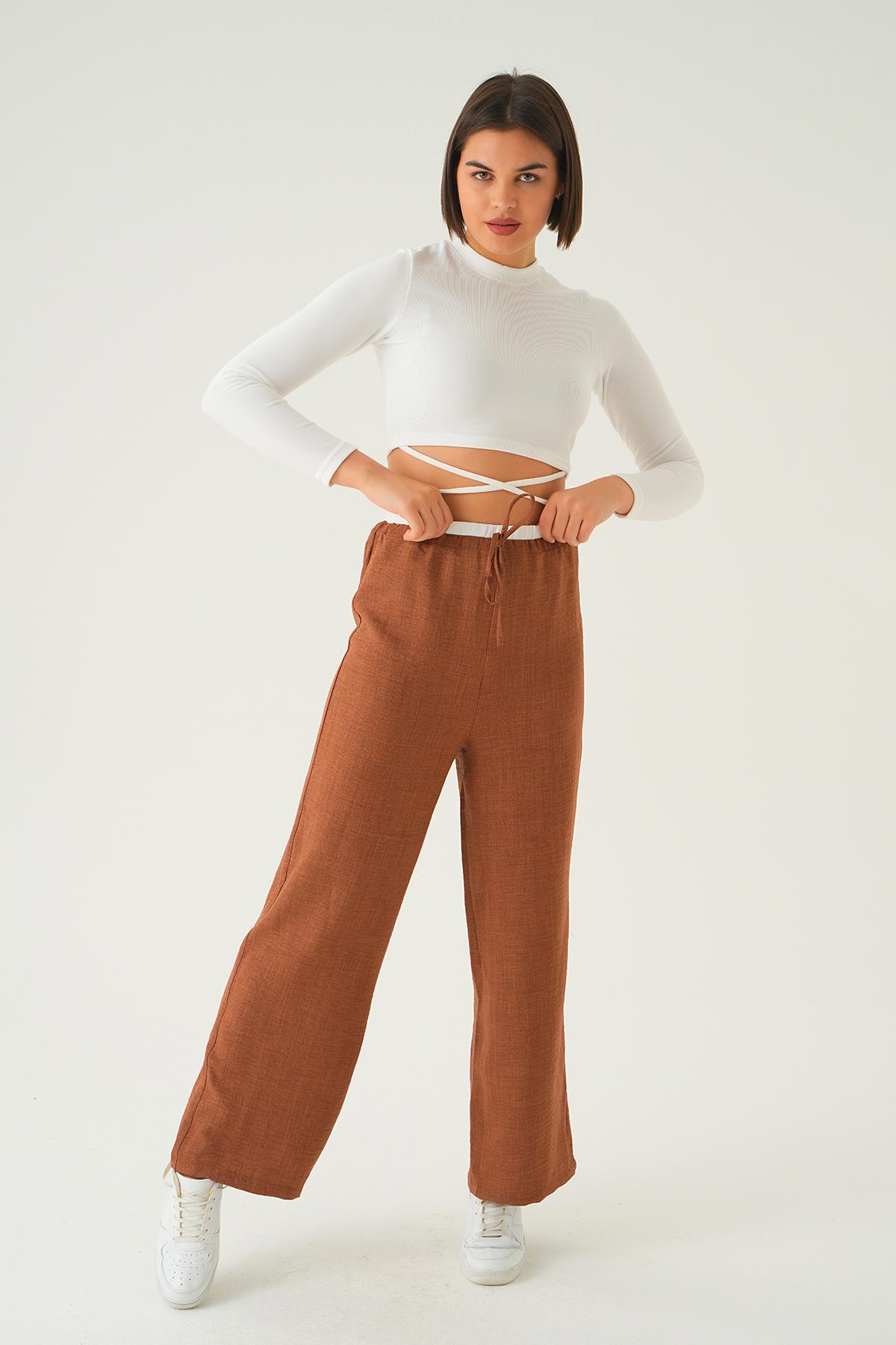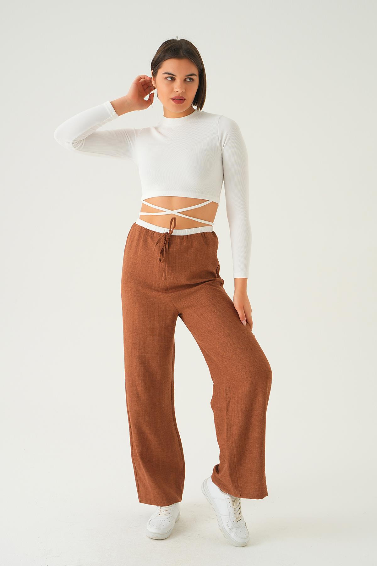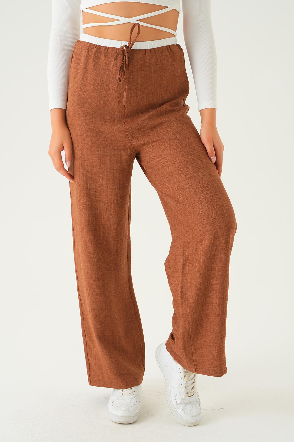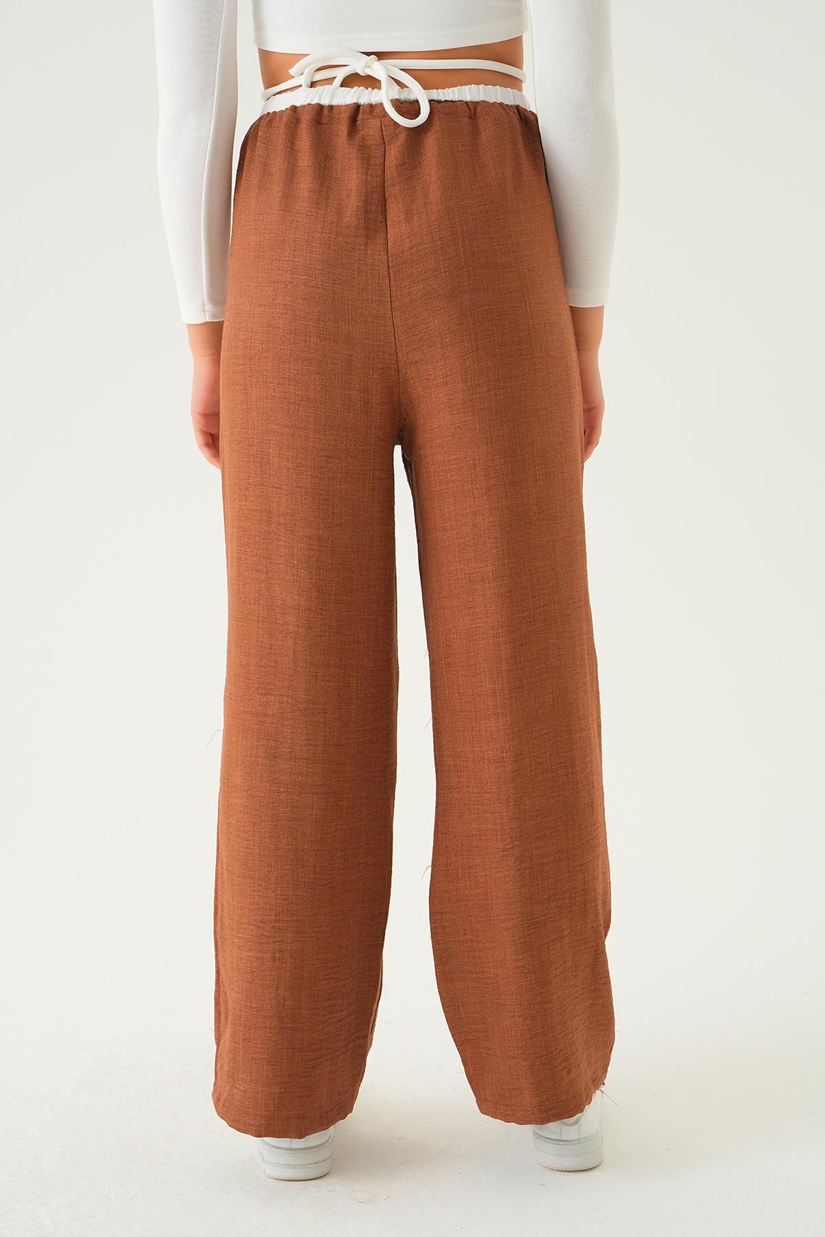 Kahve Bel Bağcık Detay Pantolon 4106A