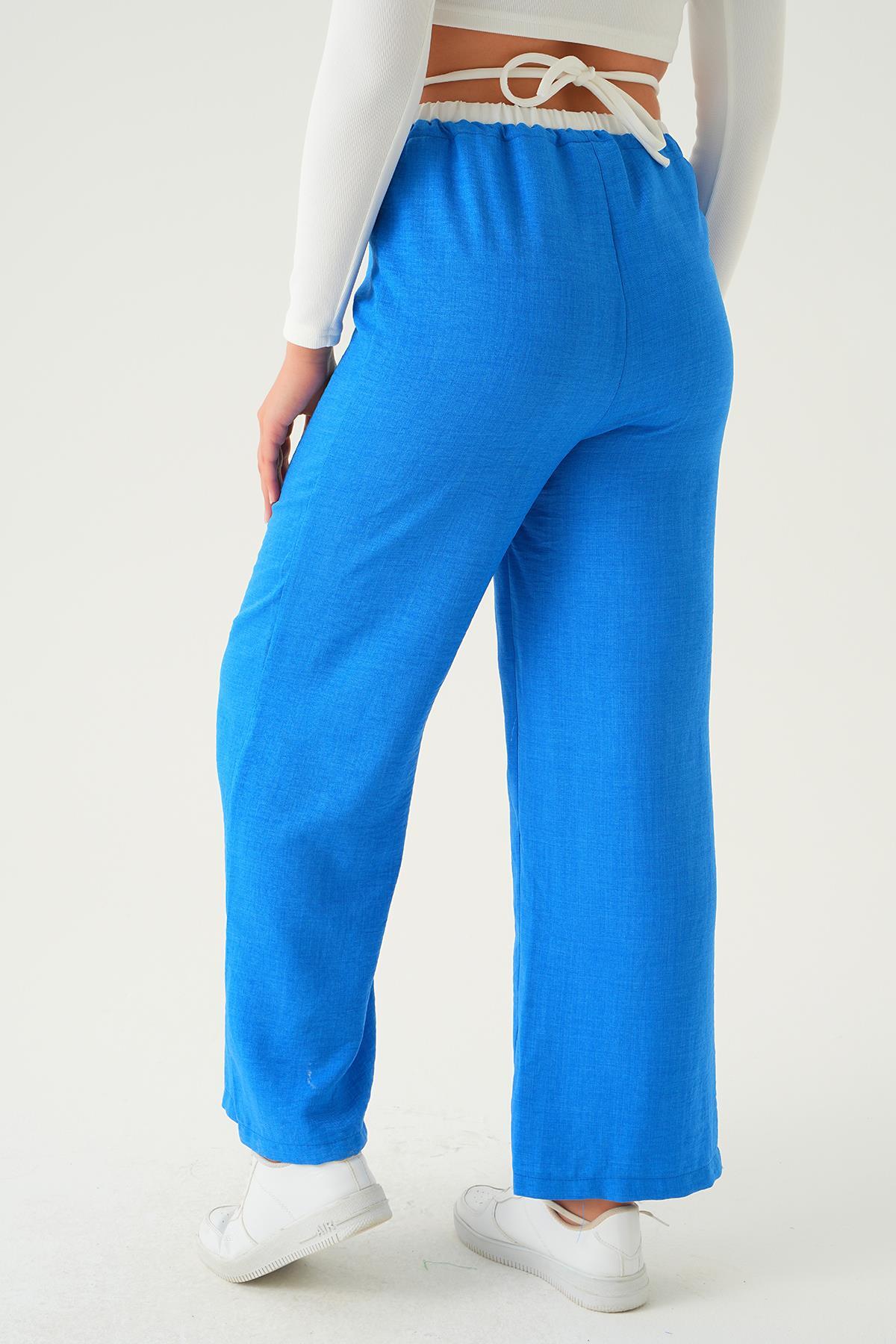 4106 Bel Bağcık Detay Pantolon Mavi