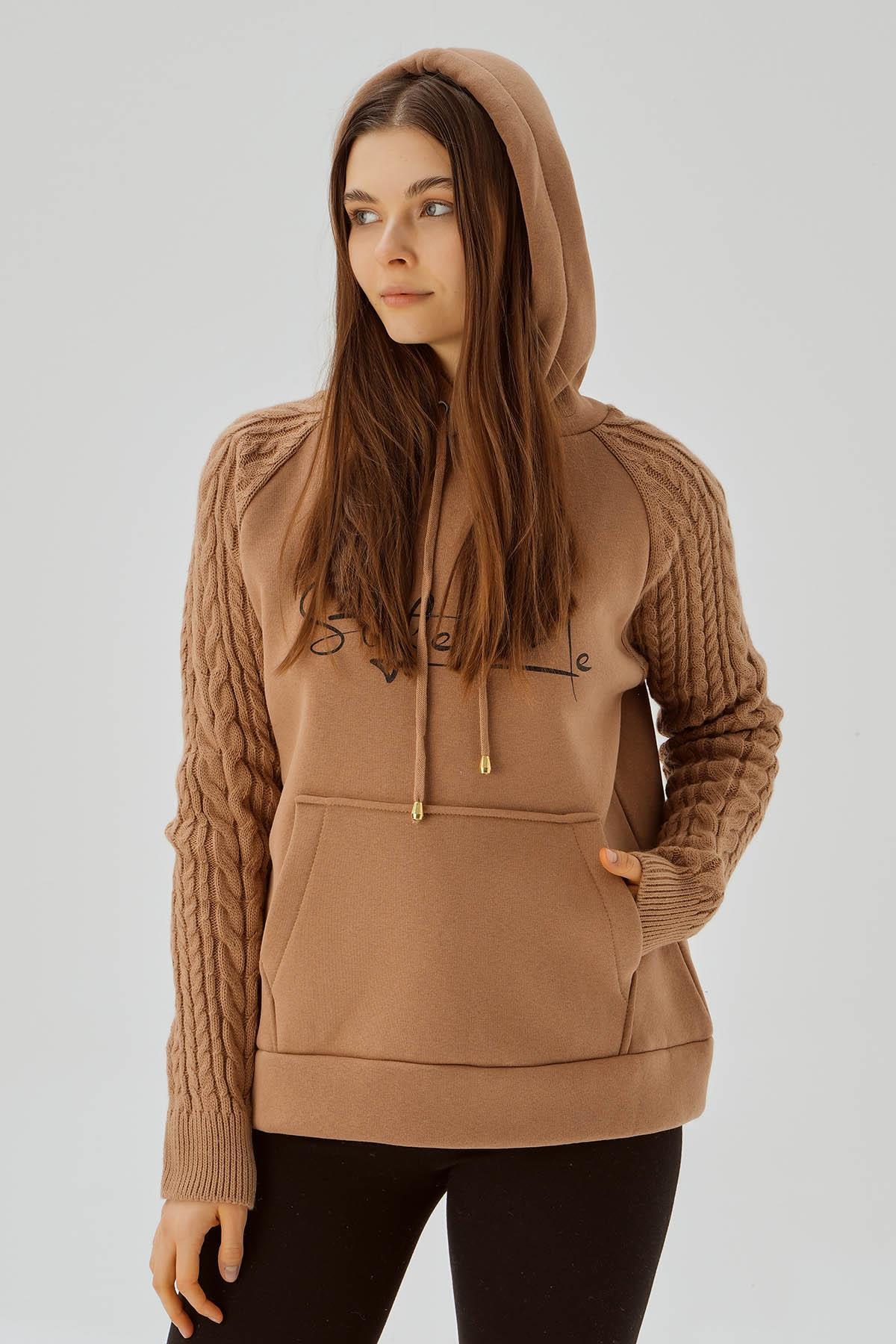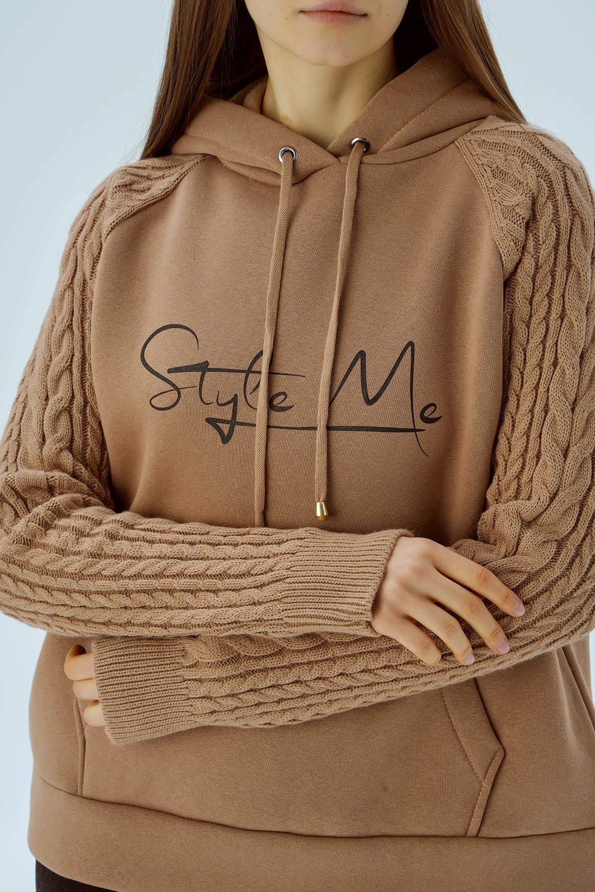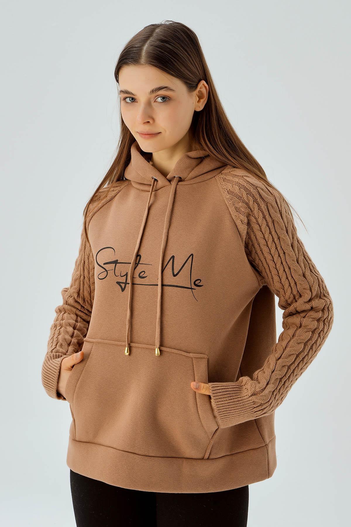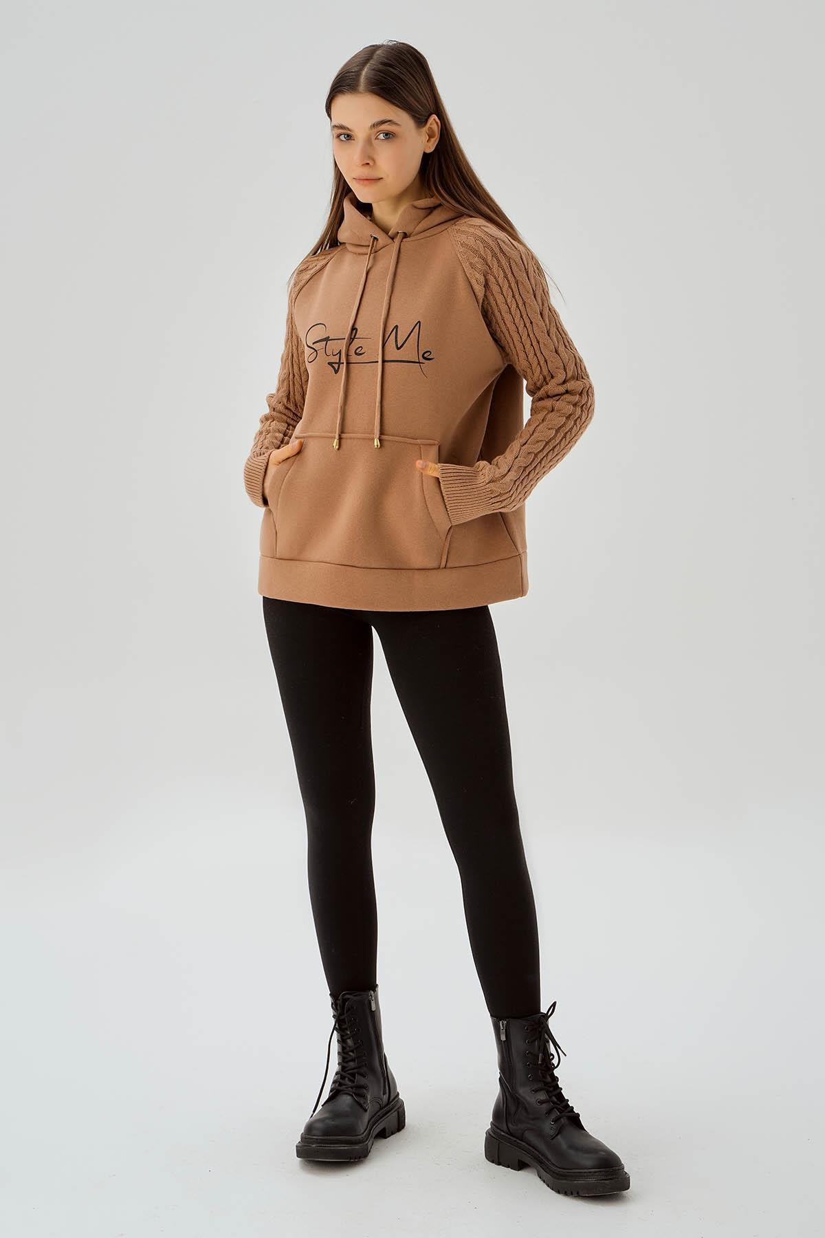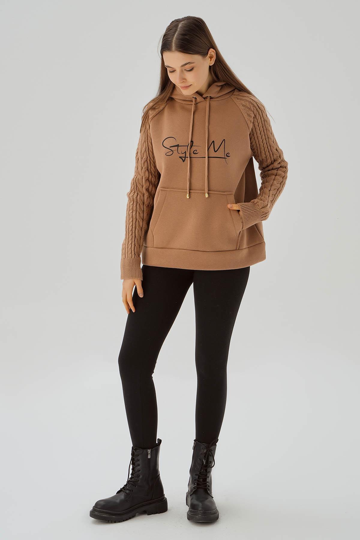 Bisküvi Kanguru Cep Kol Detay Sweat 4125