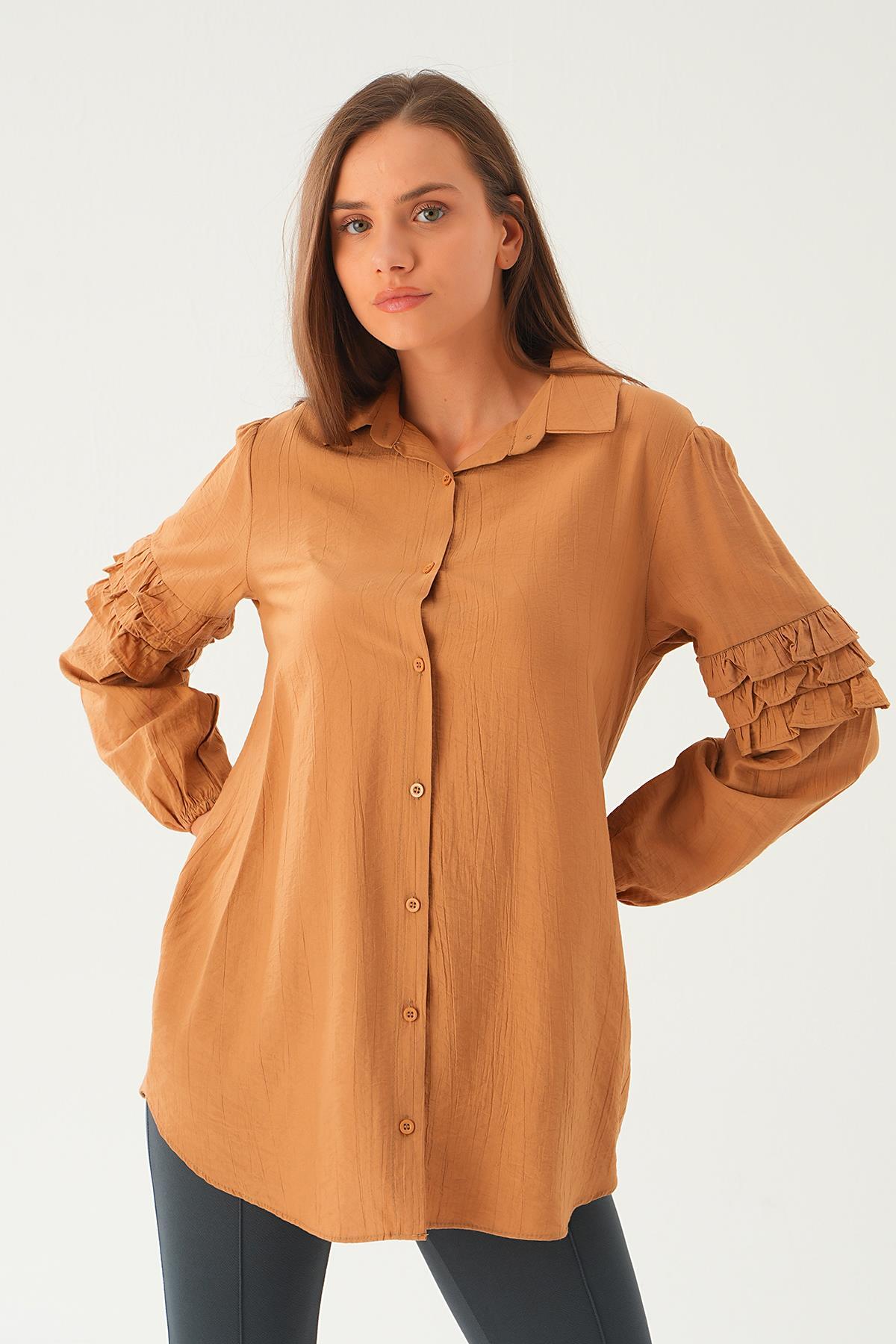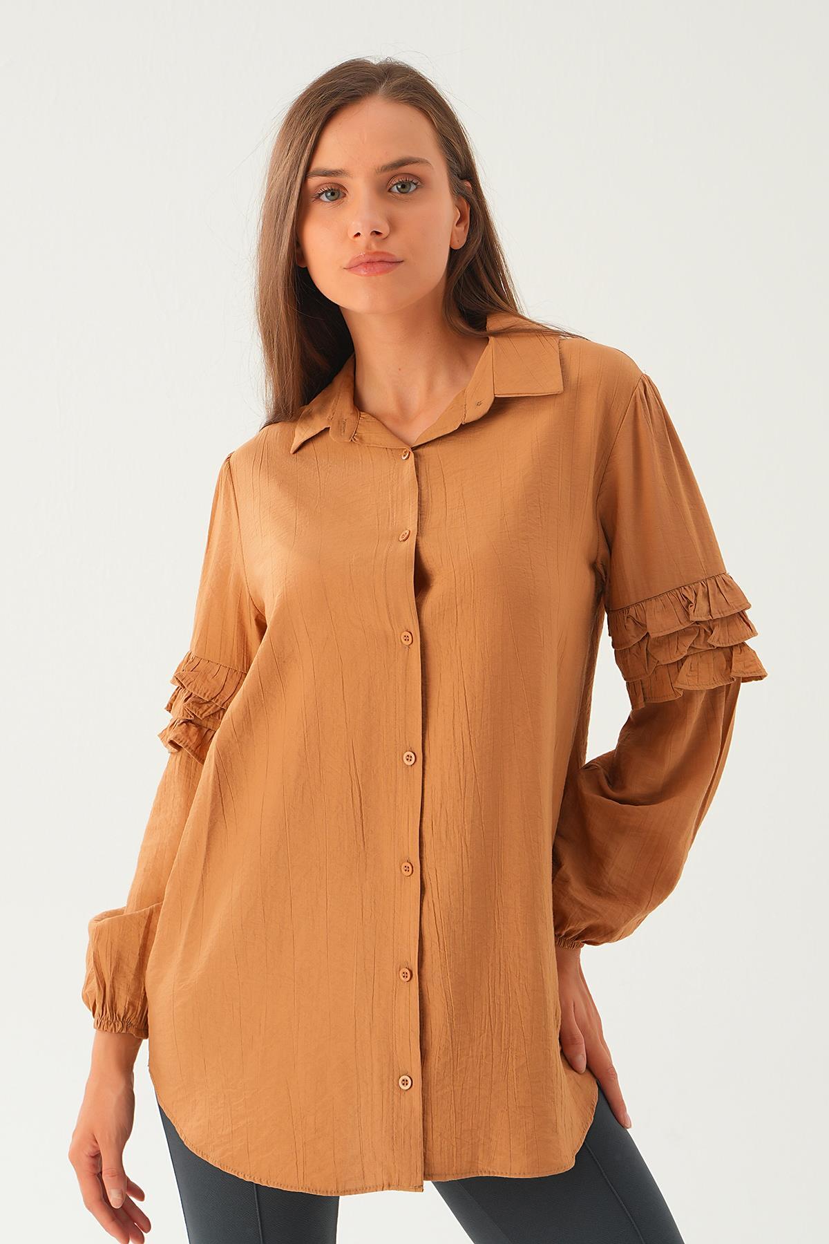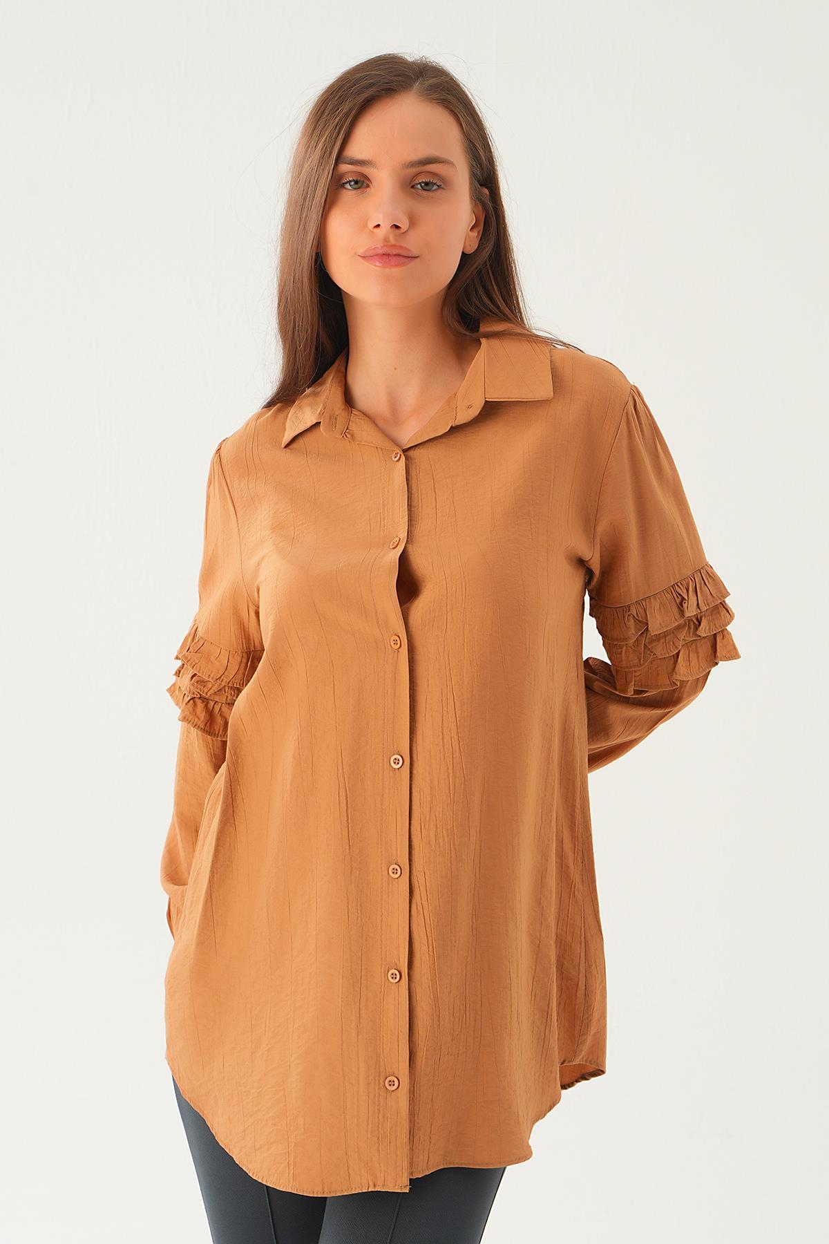 Bisküvi Kol Fırfırlı Uzun Tunik 4136A
