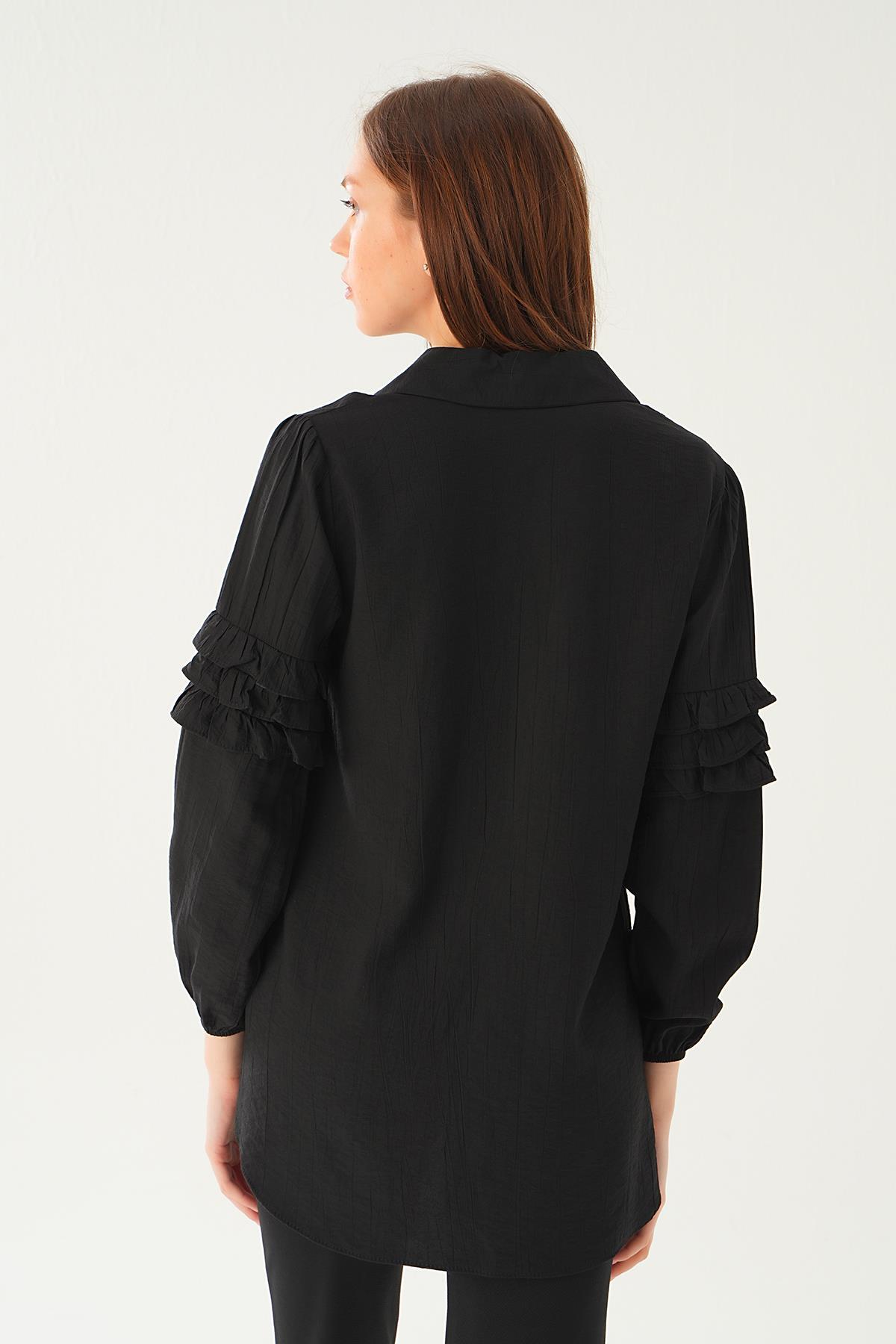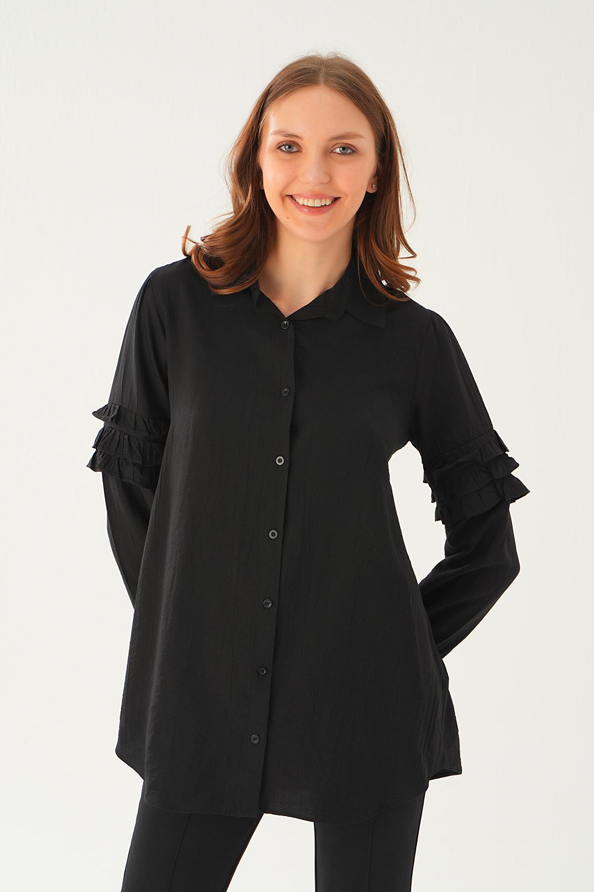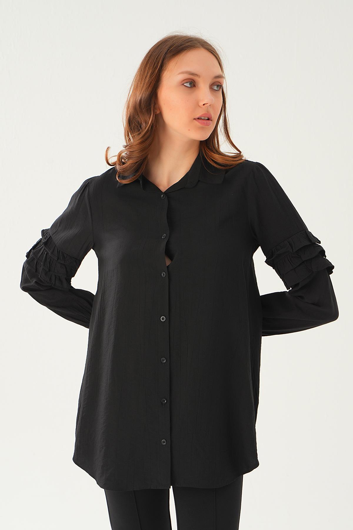 Siyah Kol Fırfırlı Uzun Tunik 4136A