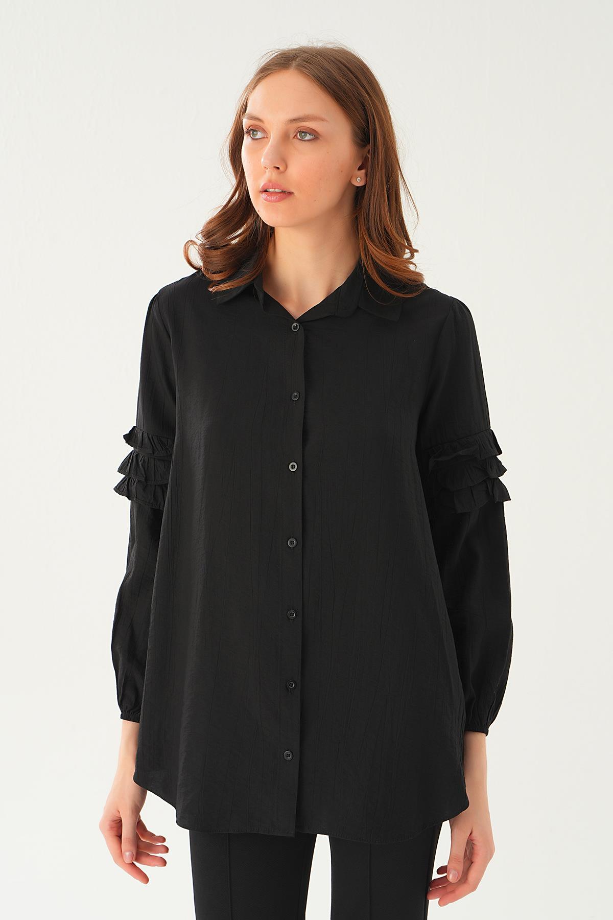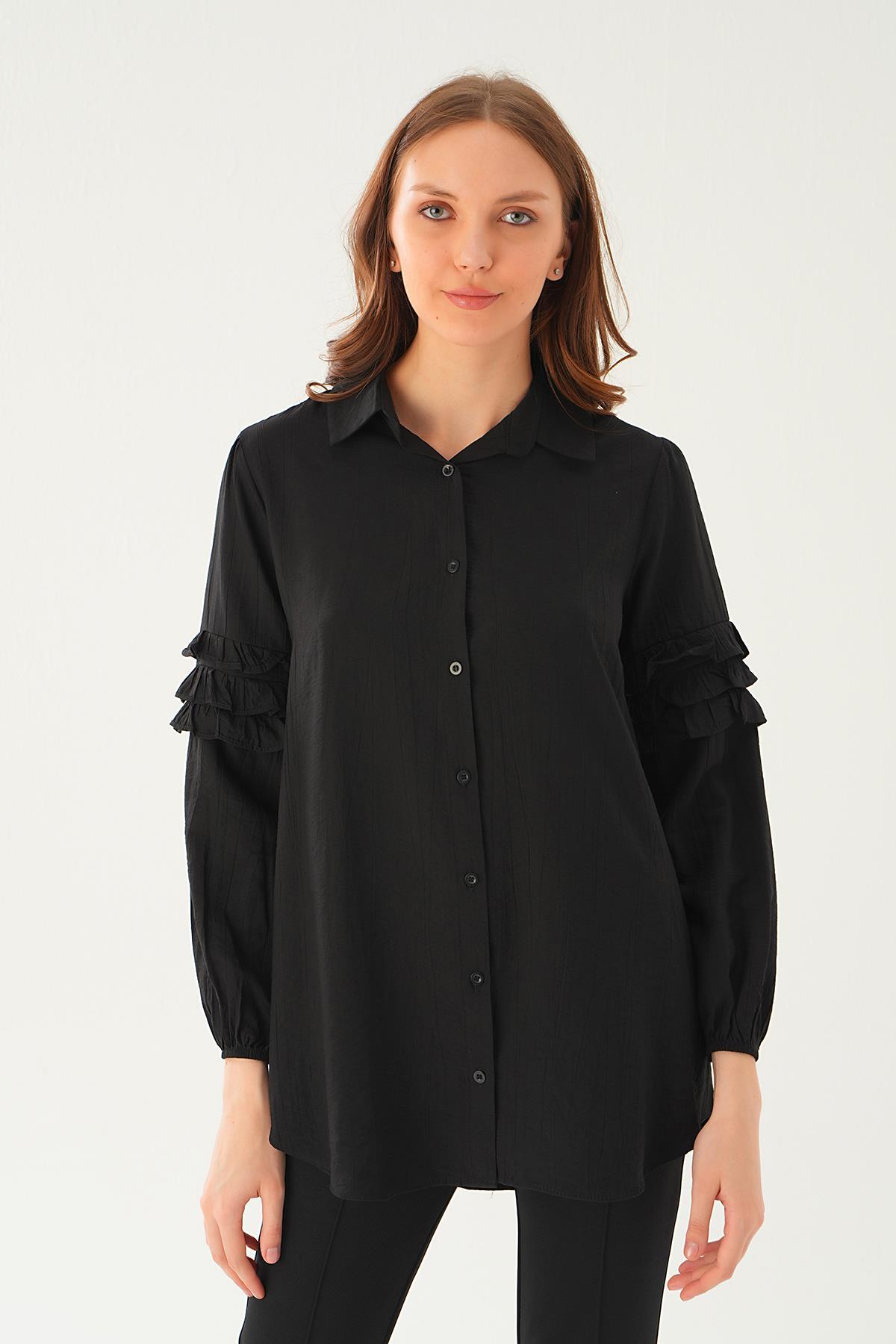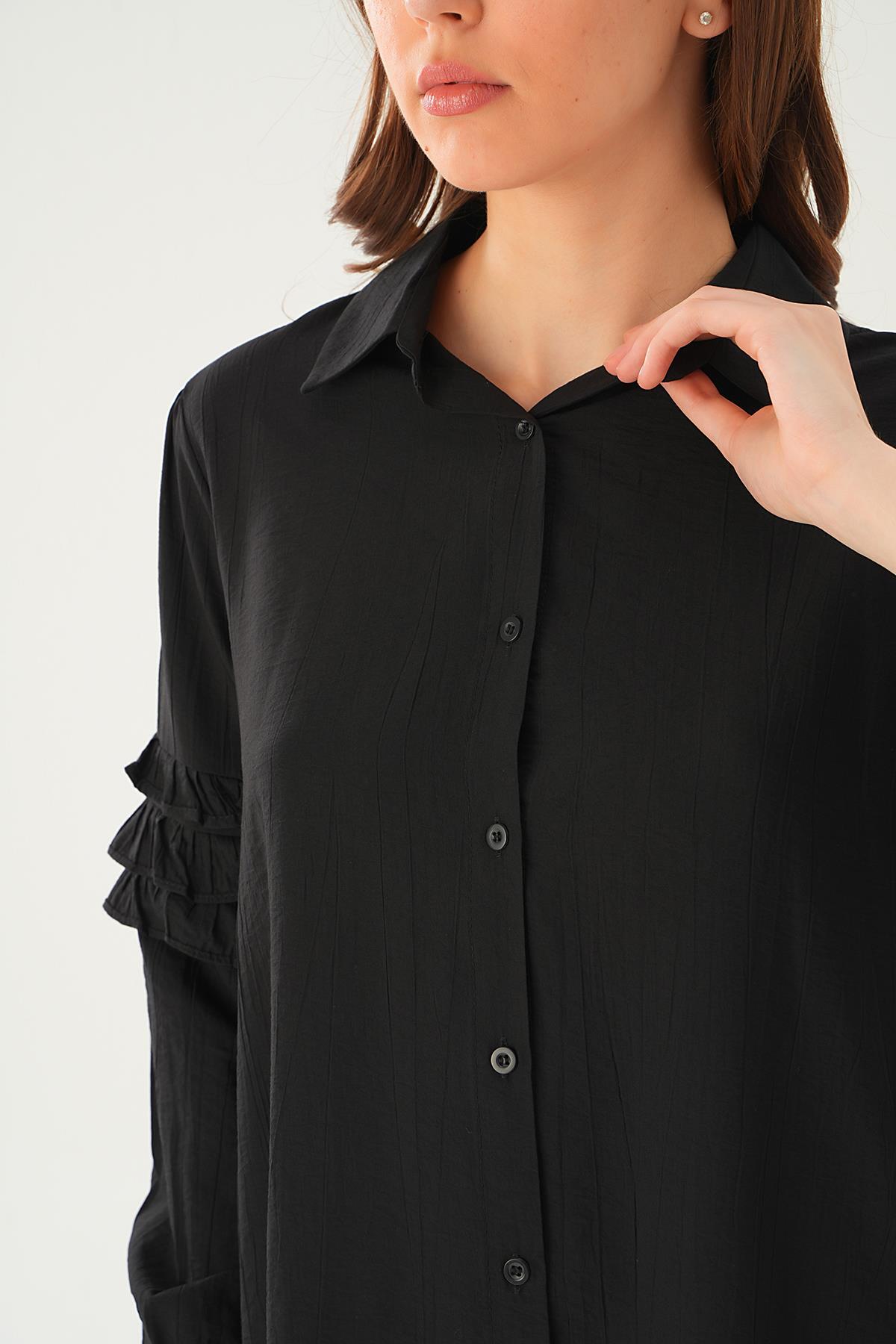 Siyah Kol Fırfırlı Uzun Tunik 4136A