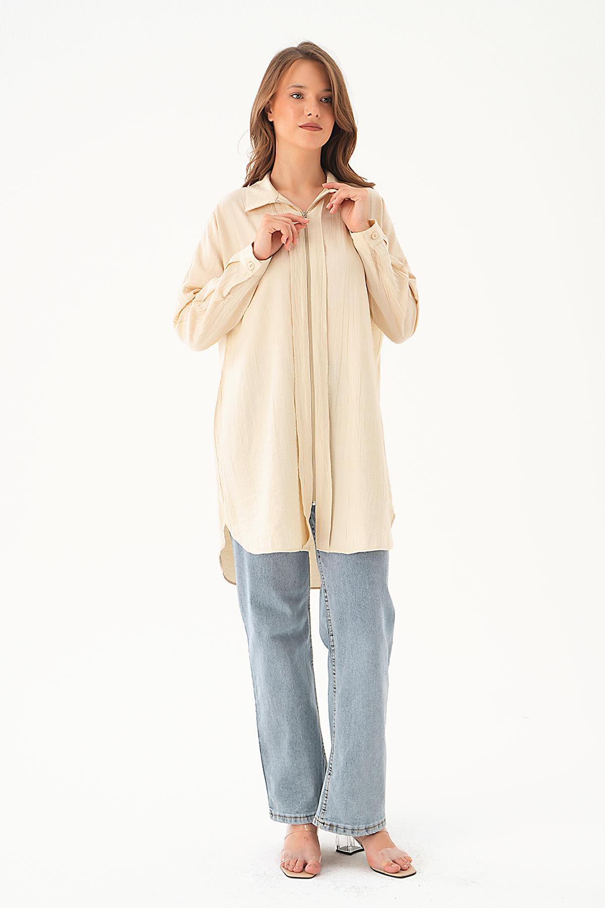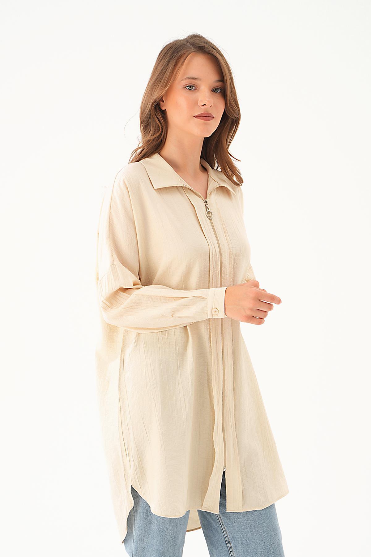 Bej Fermuar Detay Tunik 4139A