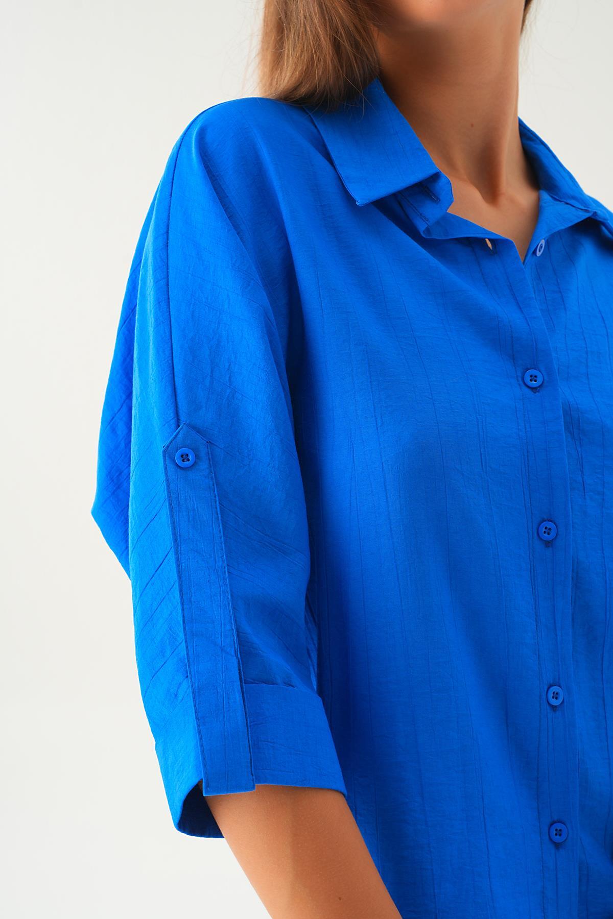 Saks Kol Katlamalı Gömlek 4157A