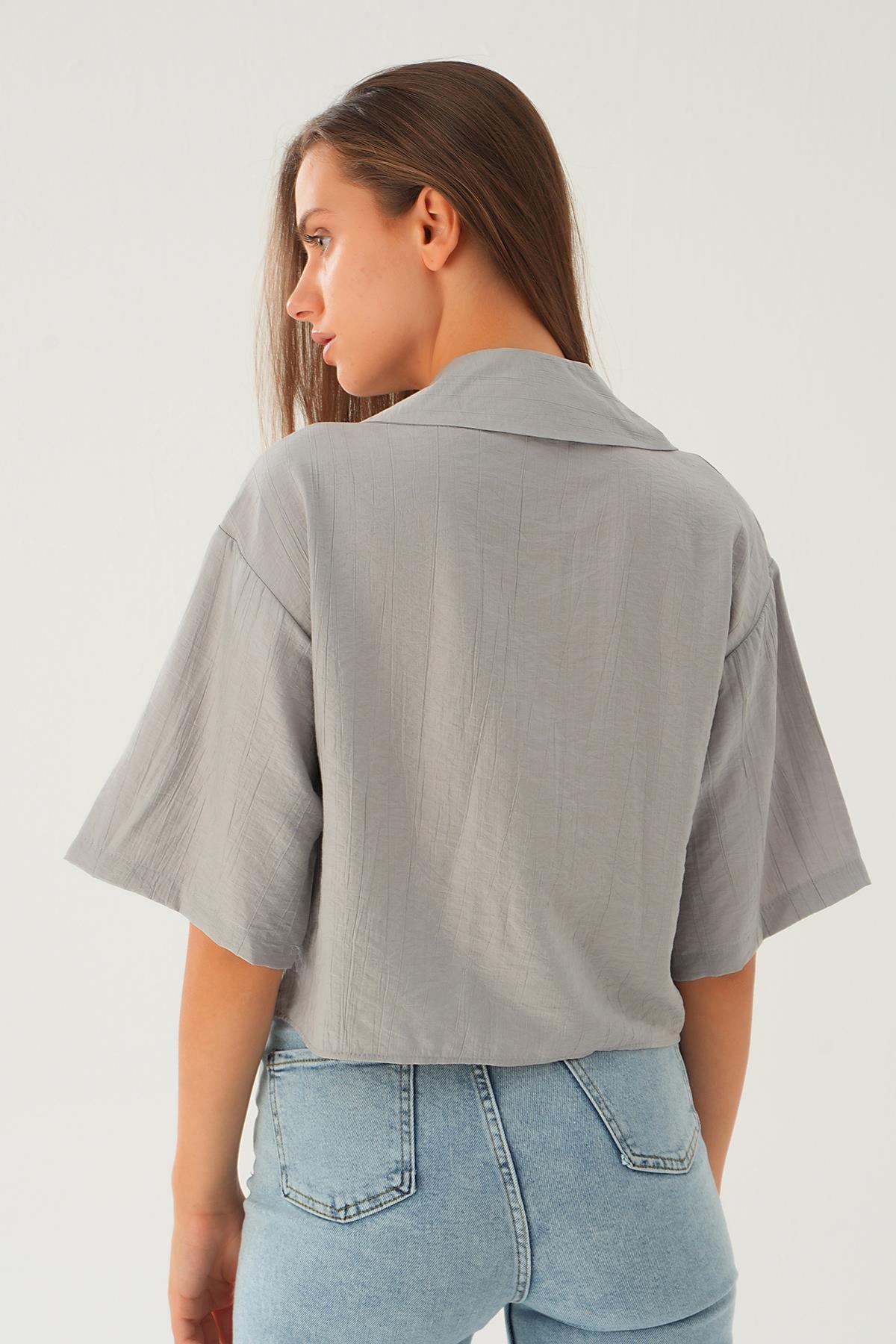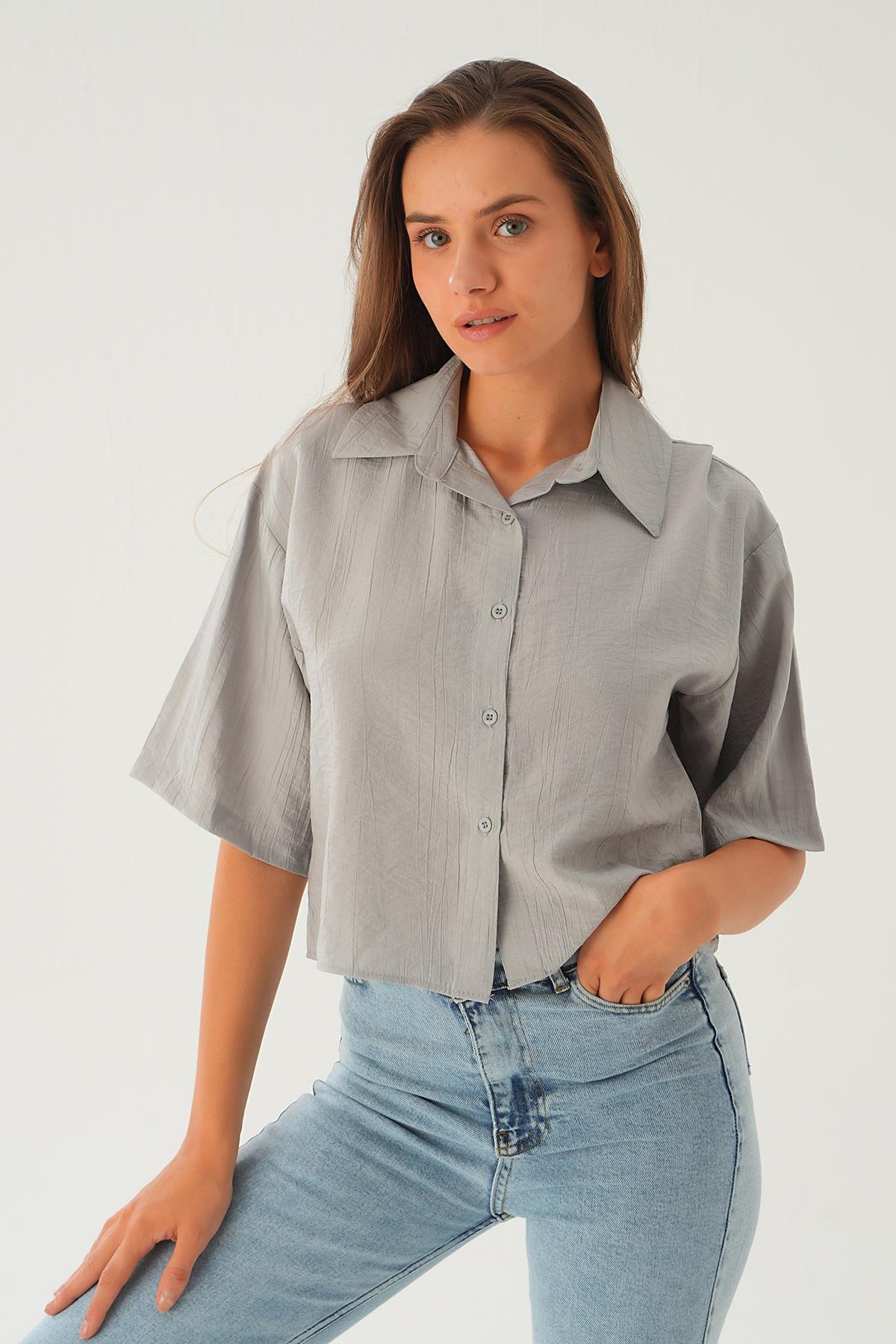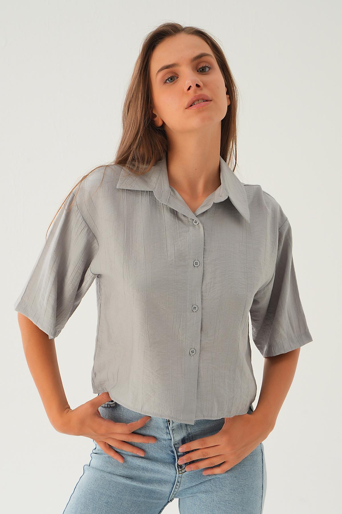 Gri Oversize Kısa Gömlek 4159A