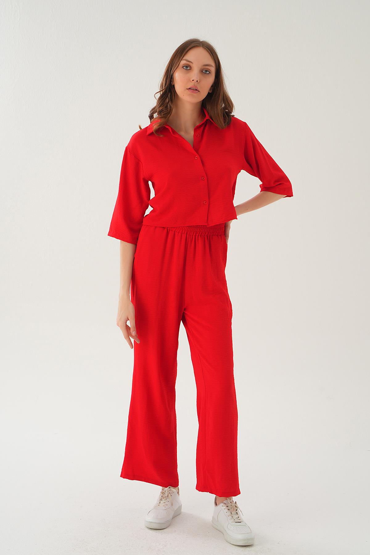 Kırmızı Gömlek Detay Pantolon Takım 4161A