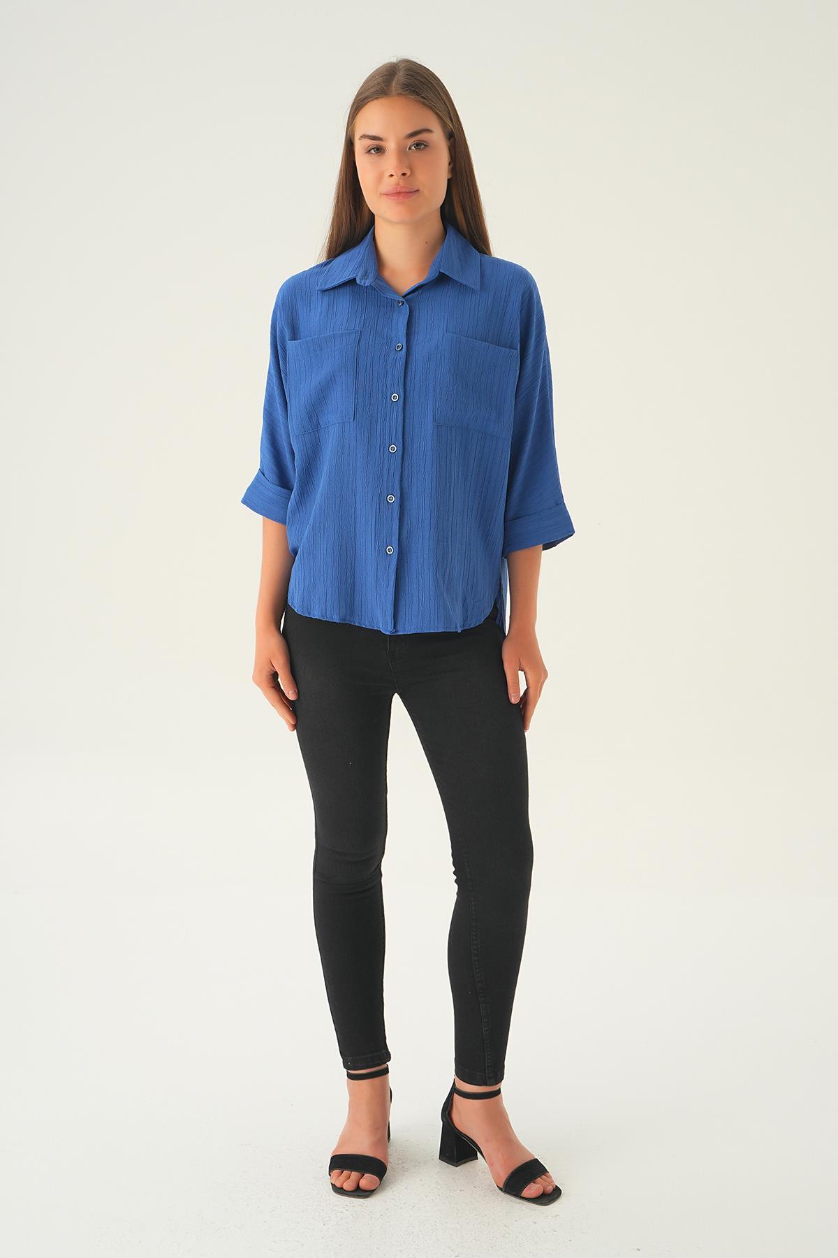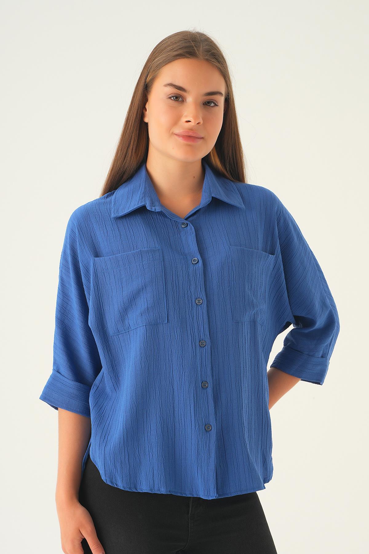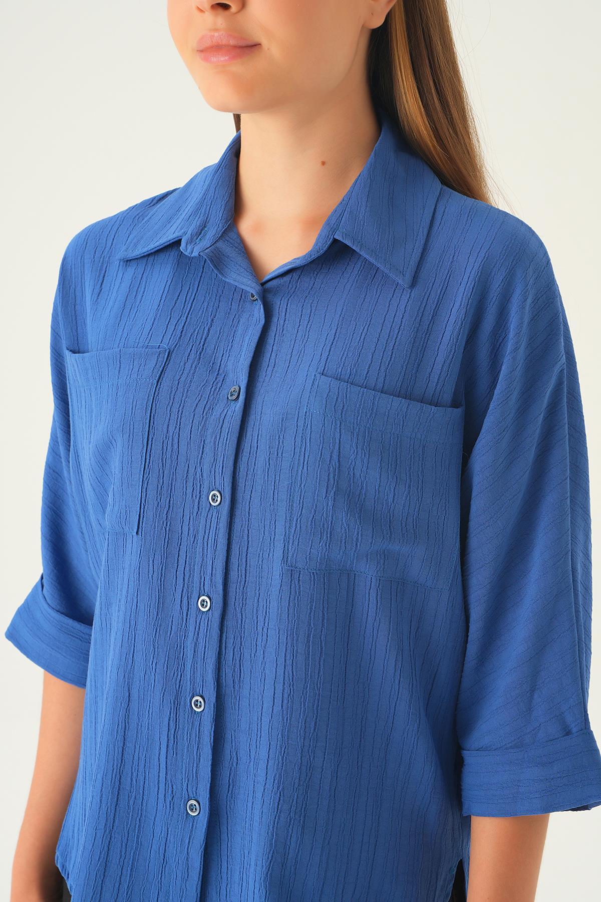 İndigo Kol Katlamalı Cepli Gömlek 4164A