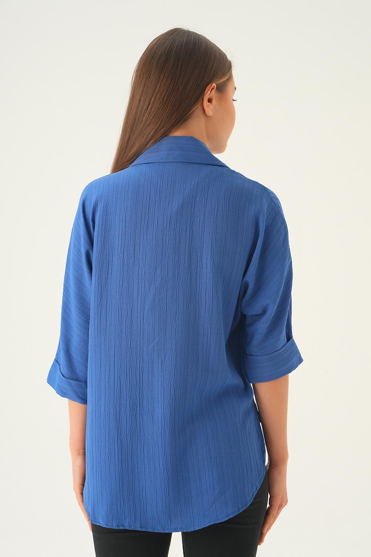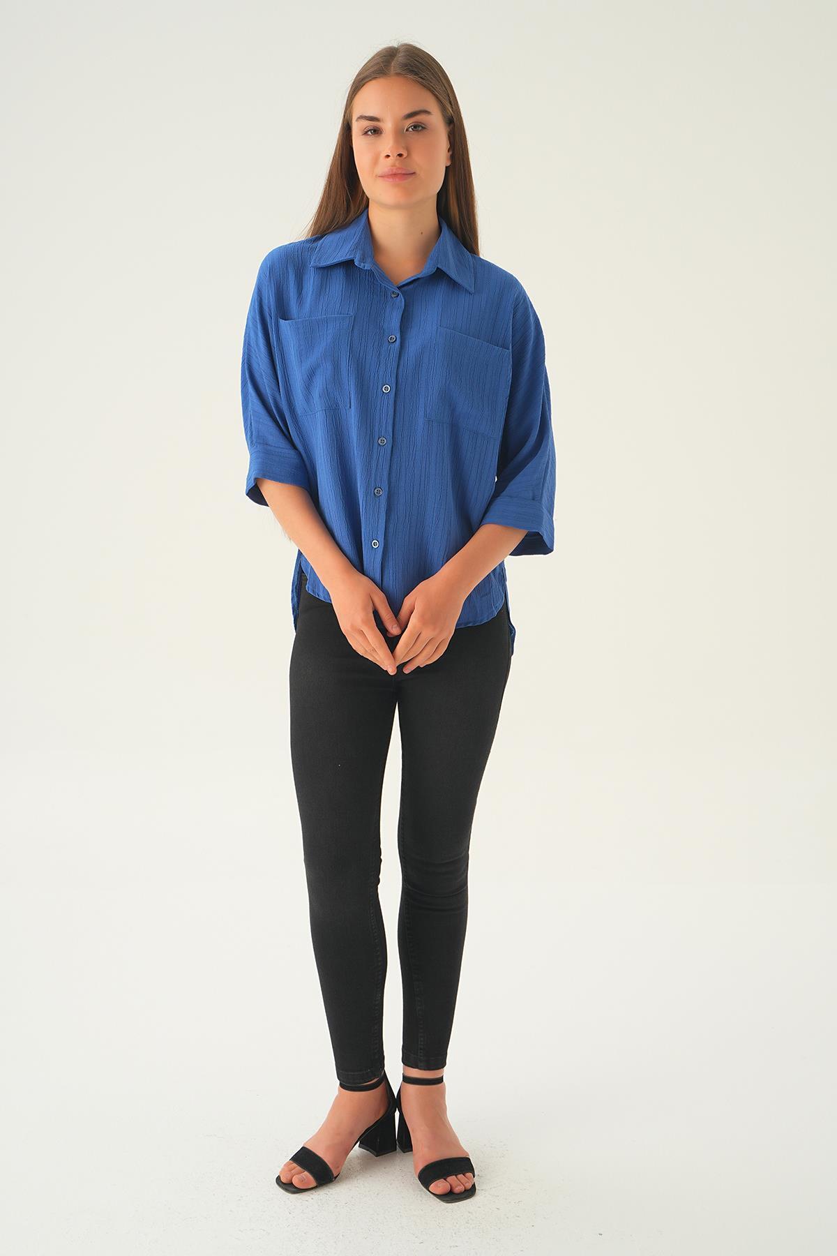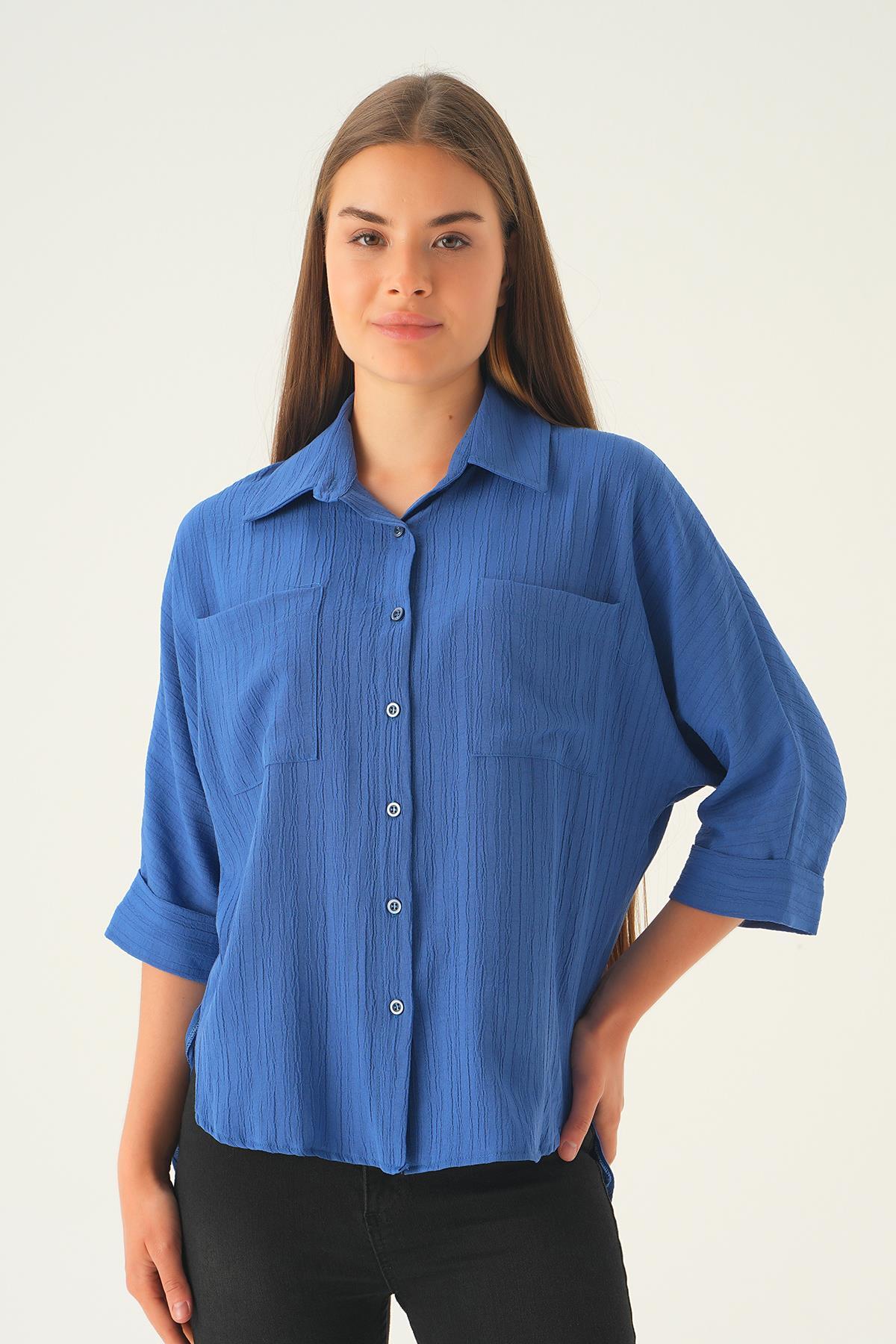 İndigo Kol Katlamalı Cepli Gömlek 4164A