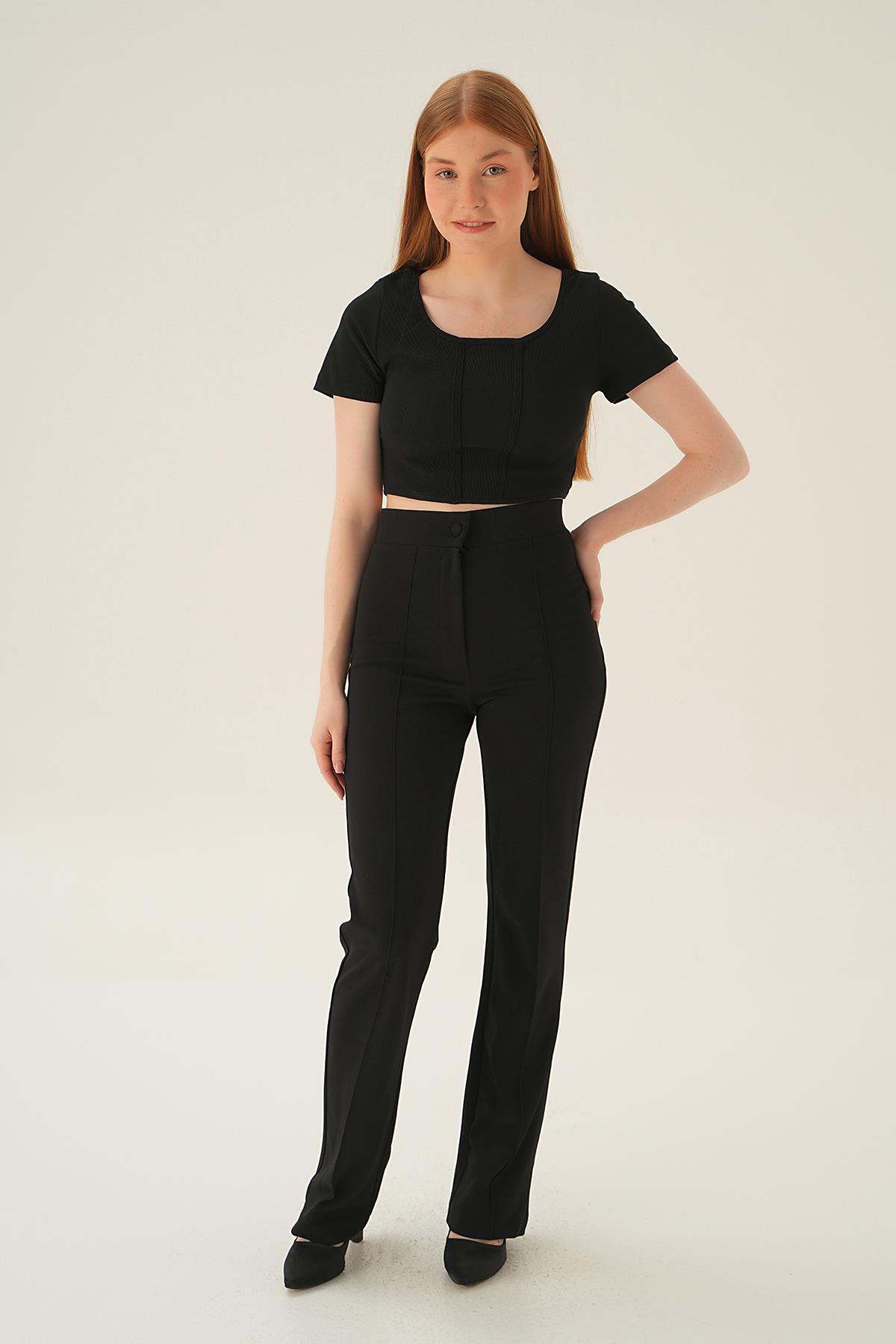 4166A Kayık Yaka Bluz Siyah