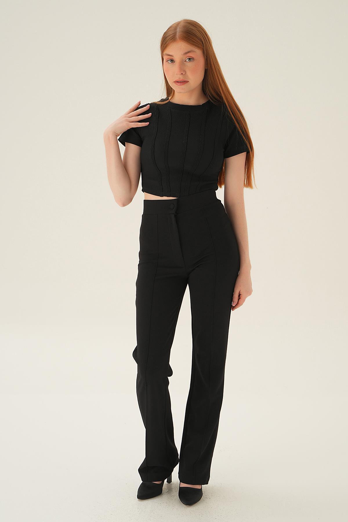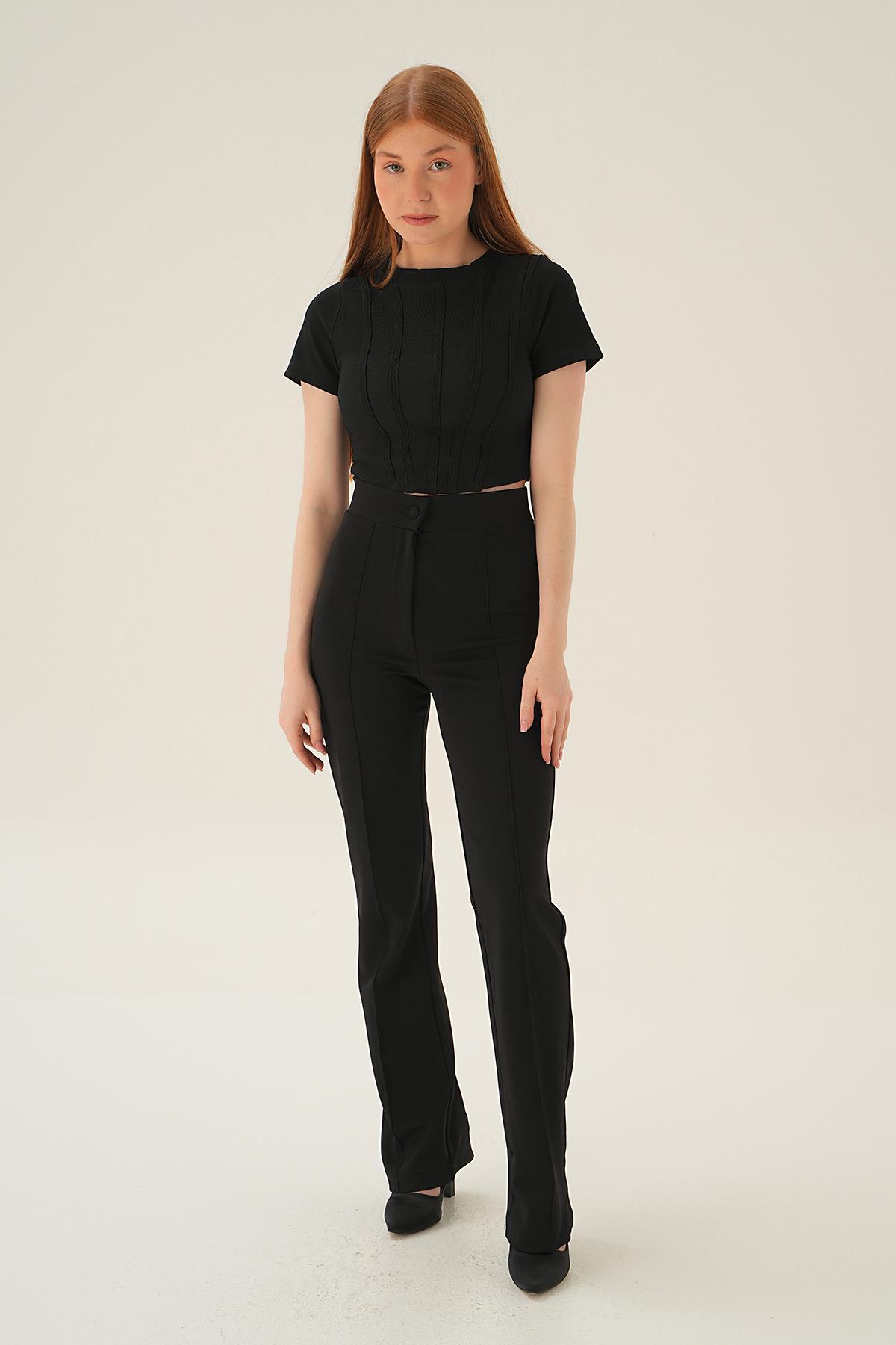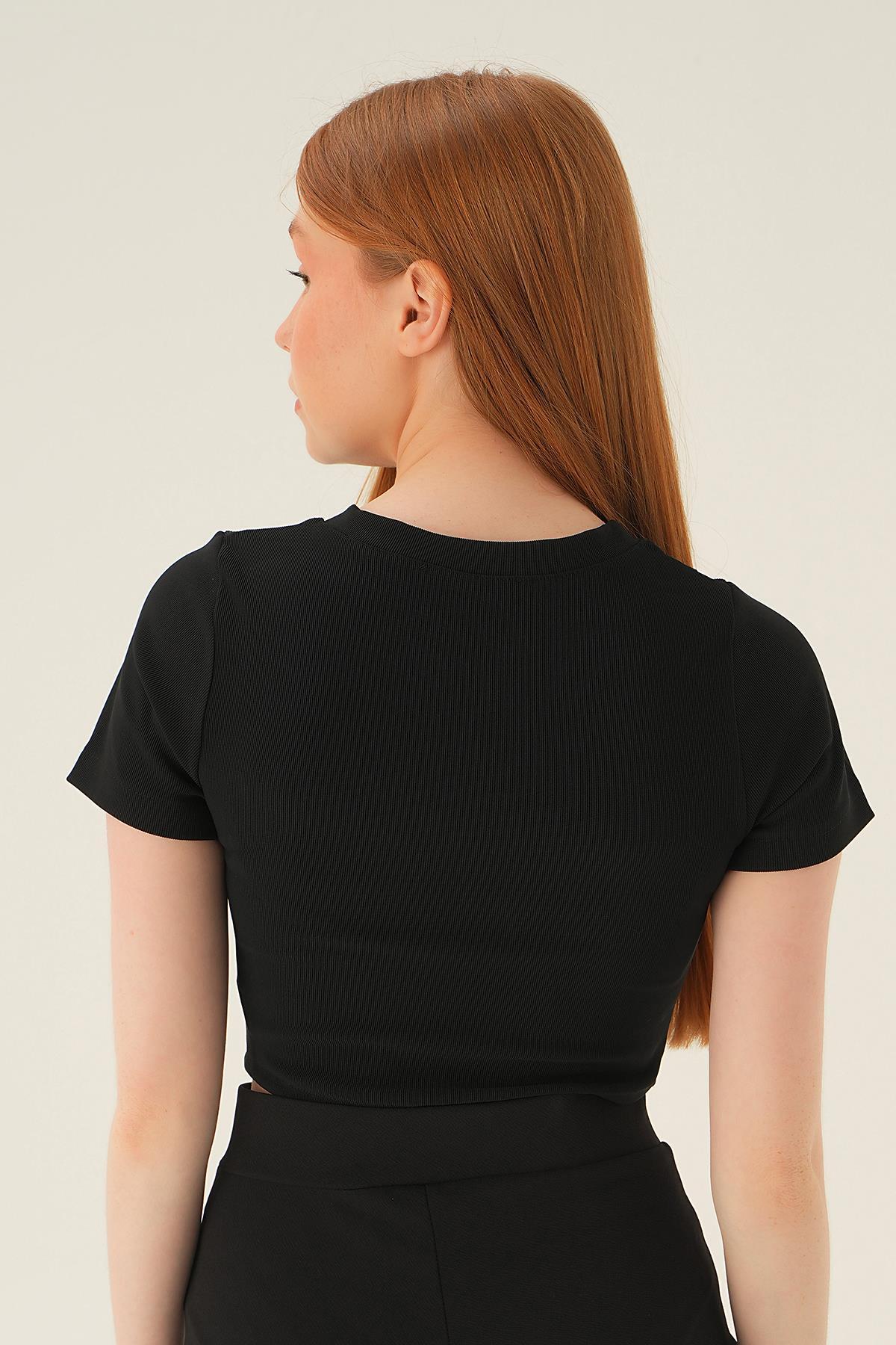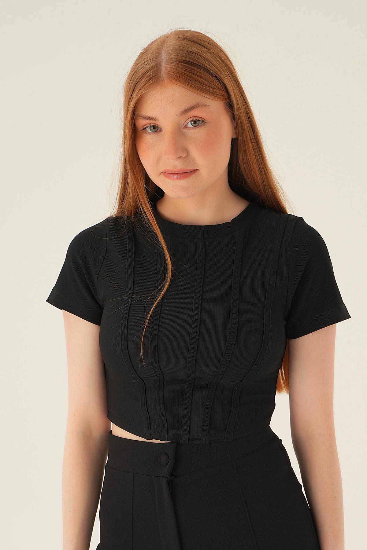 4167A Kısa Kol Çıma Detay Bluz Siyah