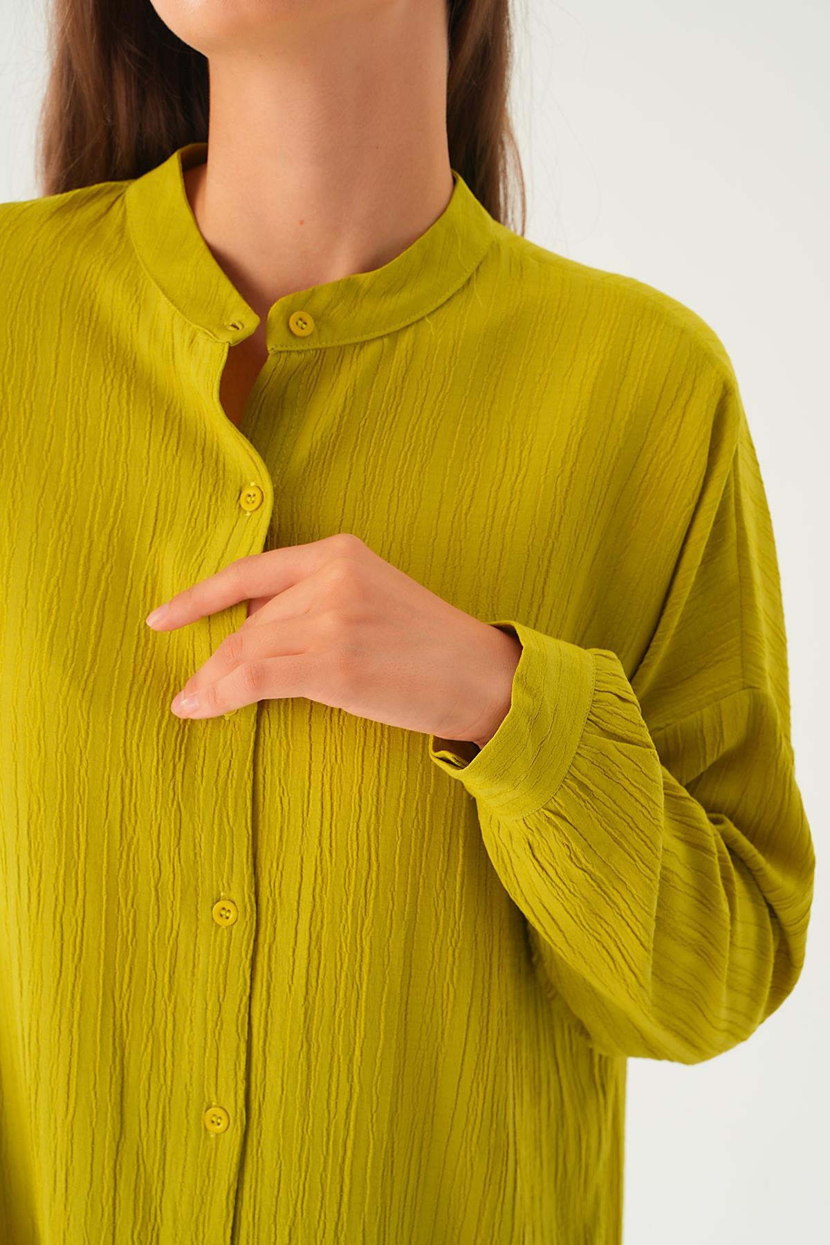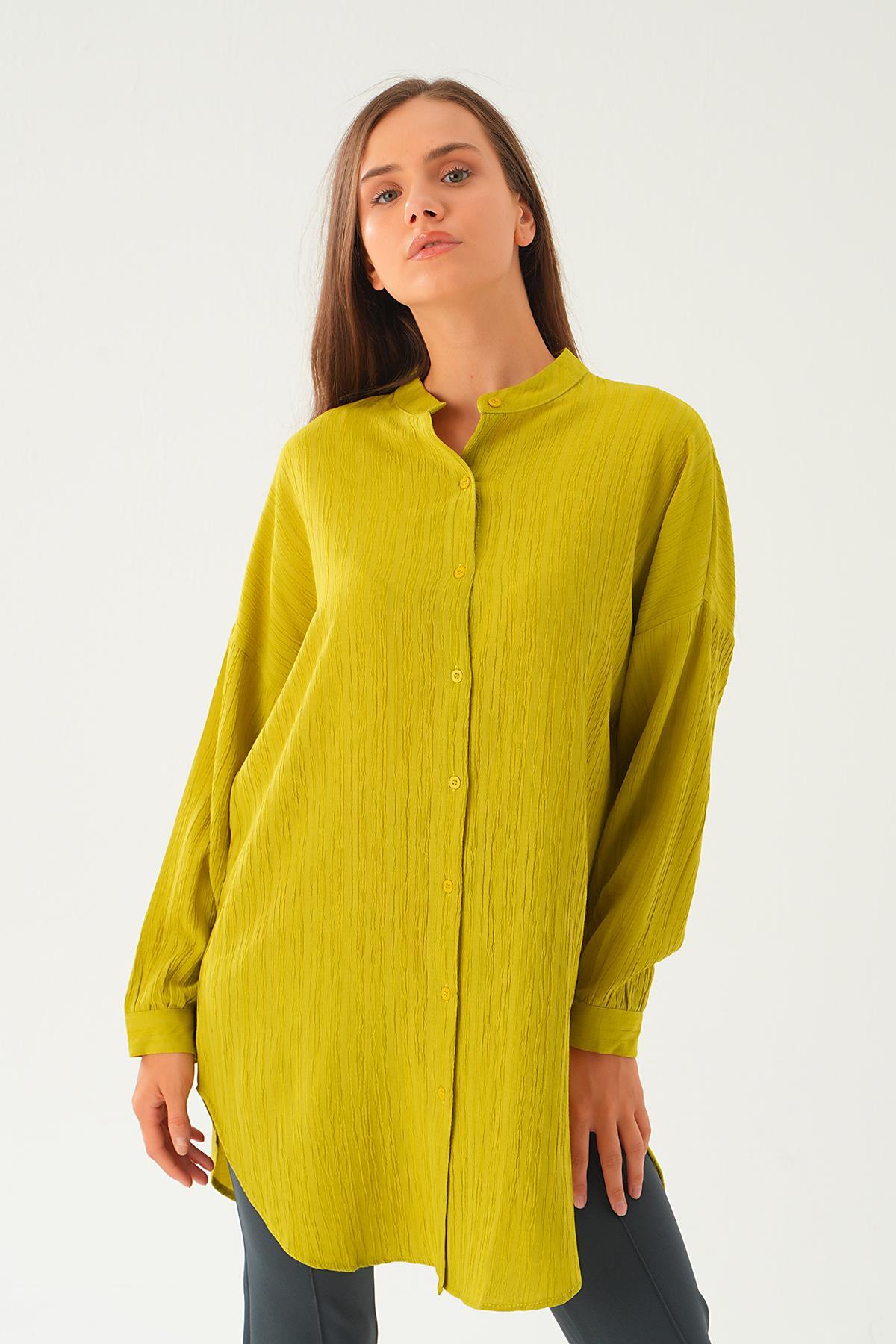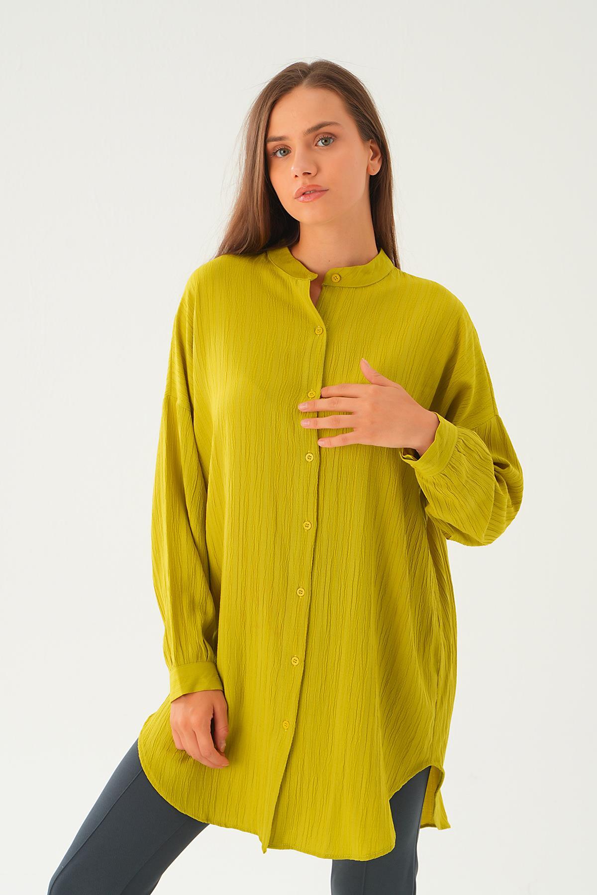 Yağ Yeşili Hakim Yaka Tunik 4172A