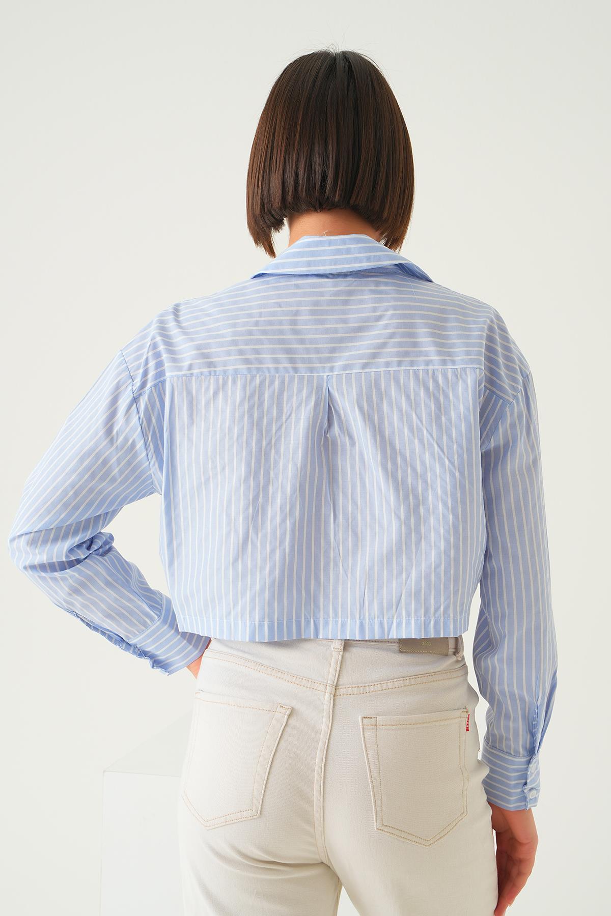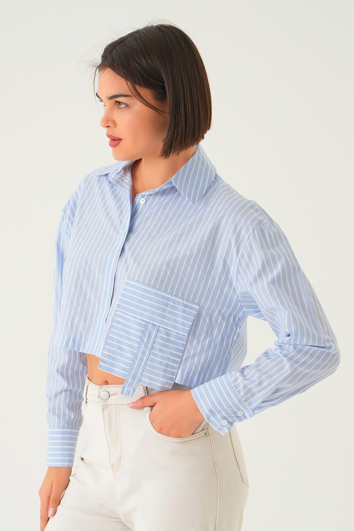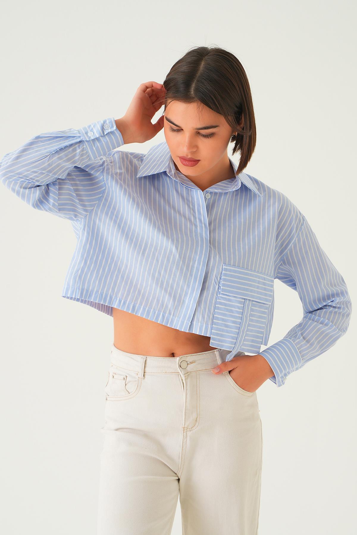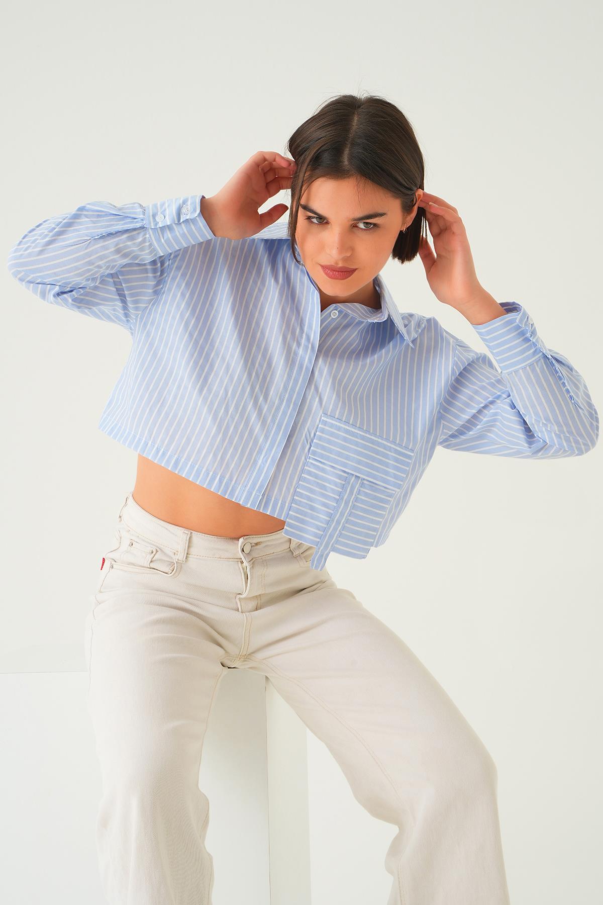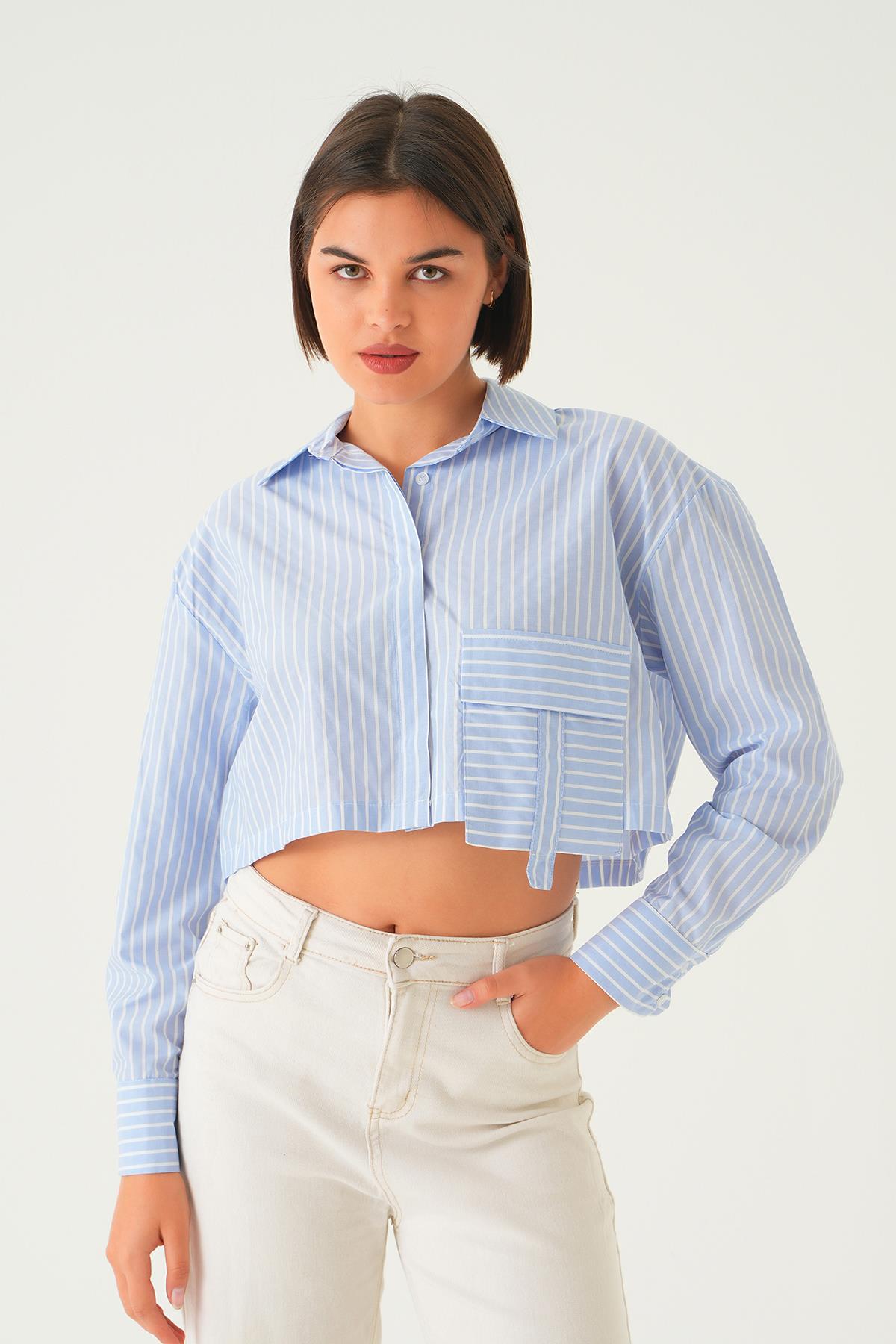 Mavi Cepli Crop Gömlek 4182A
