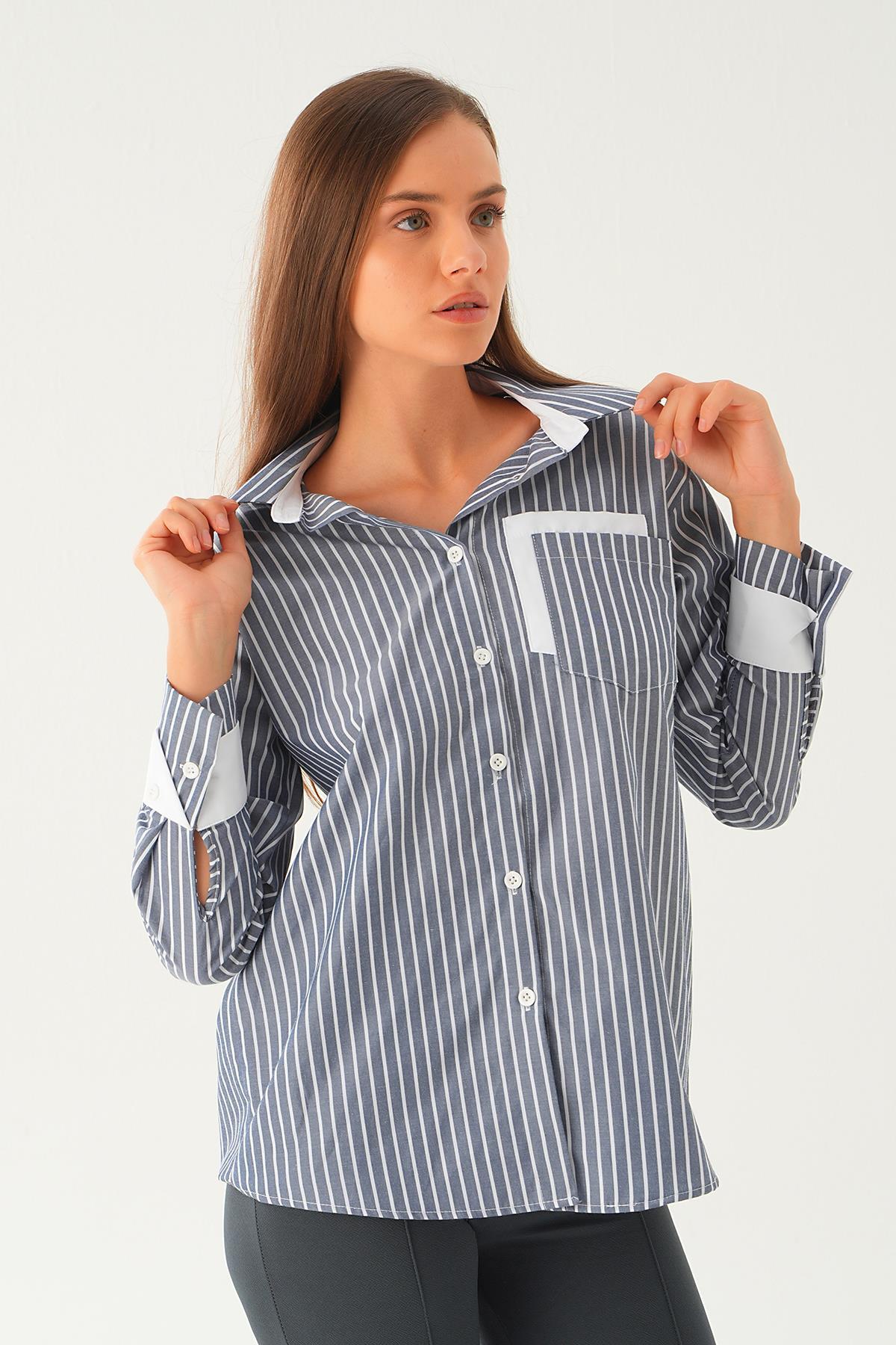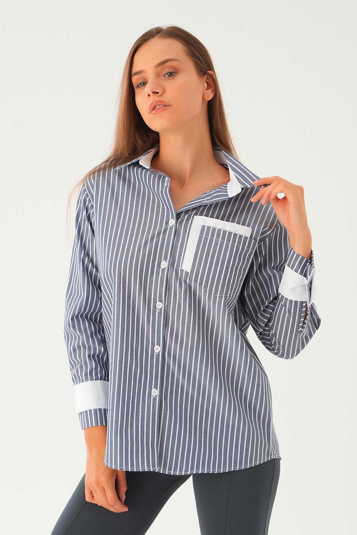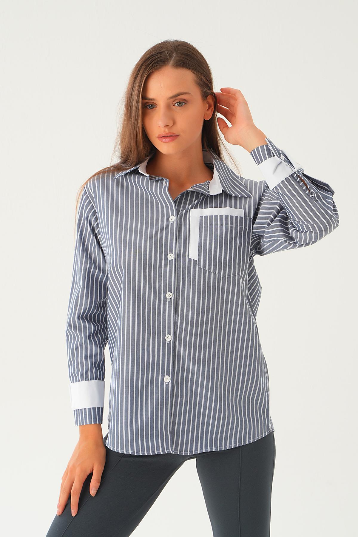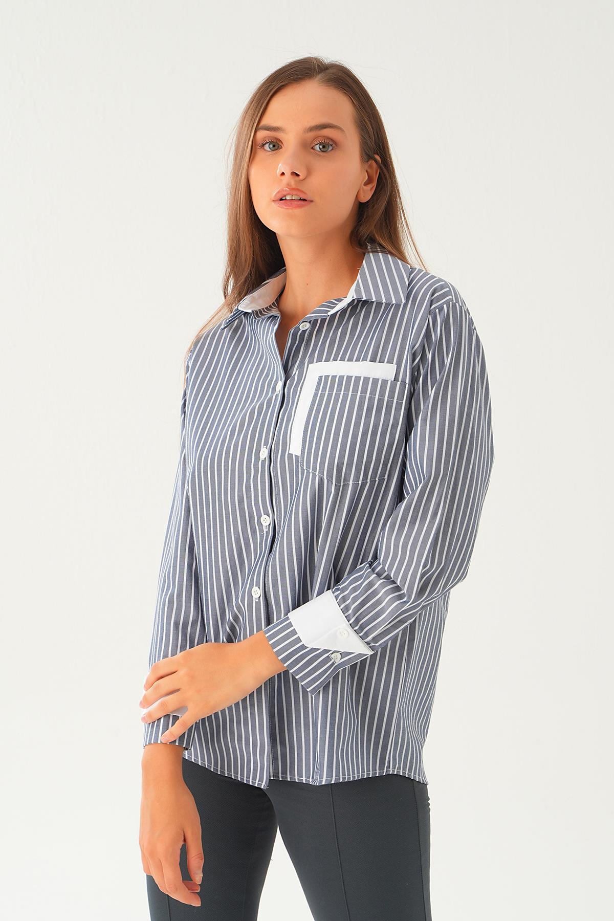 Mavi Çizgili Oversize Gömlek 5460 - RAYS Mavi Çizgili Oversize Gömlek 5460 - RAYS (1)