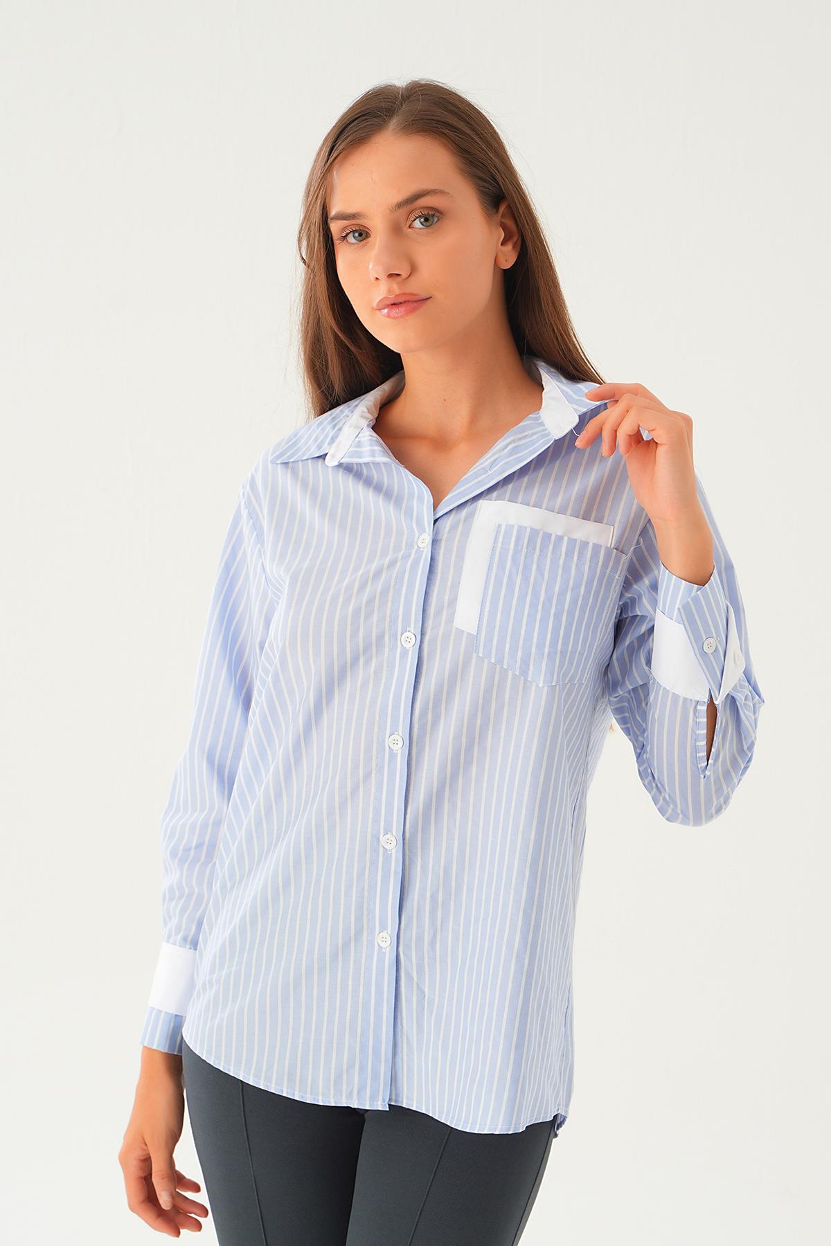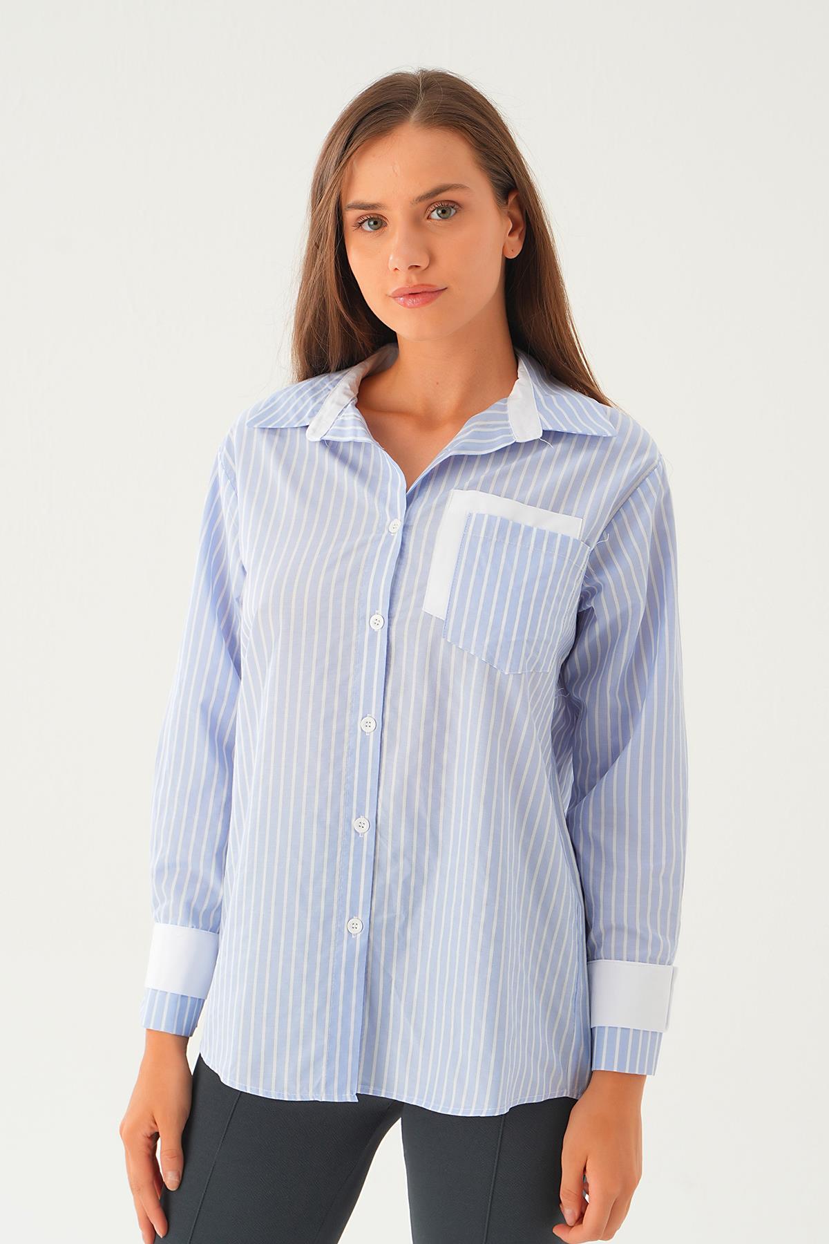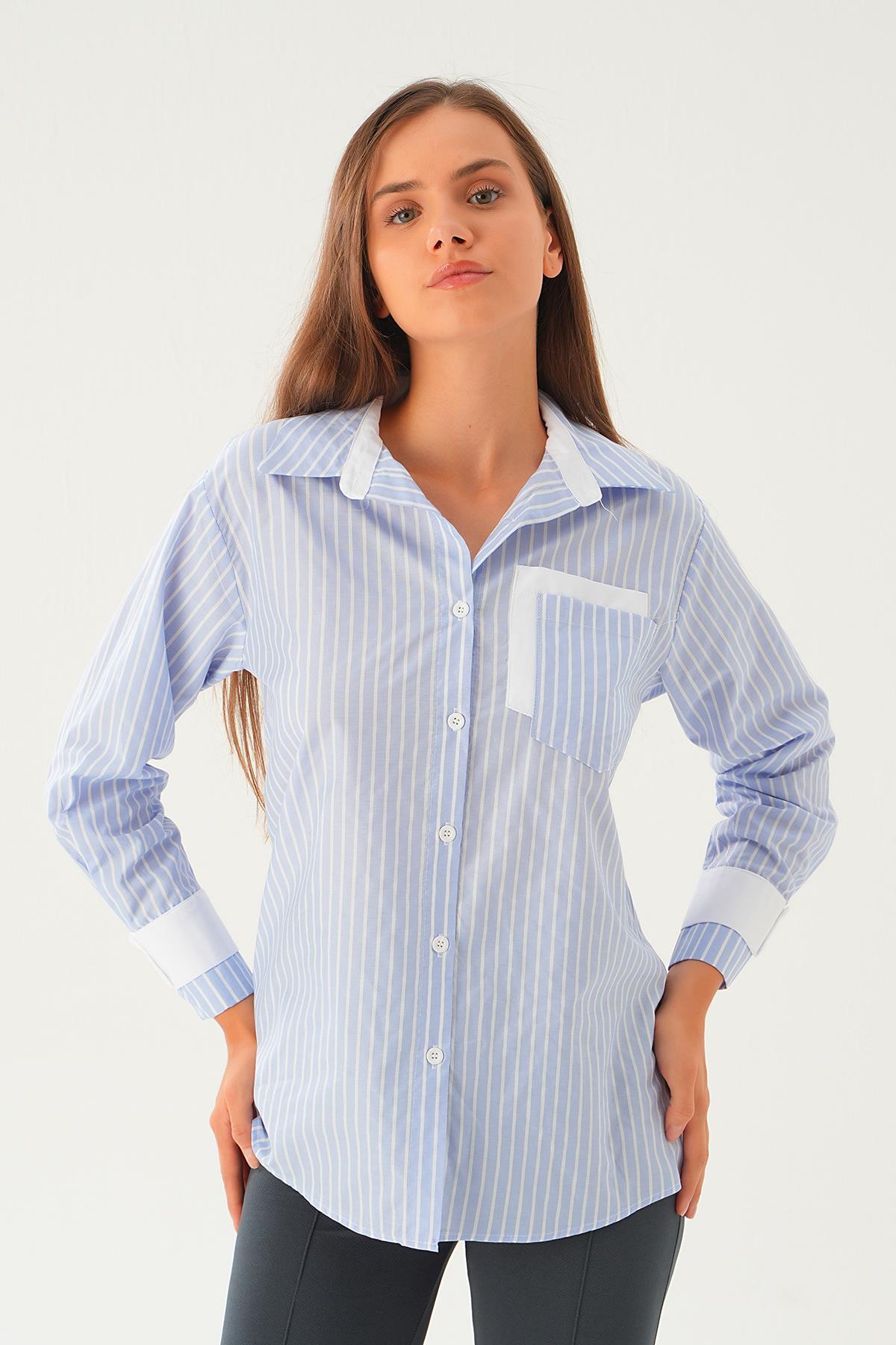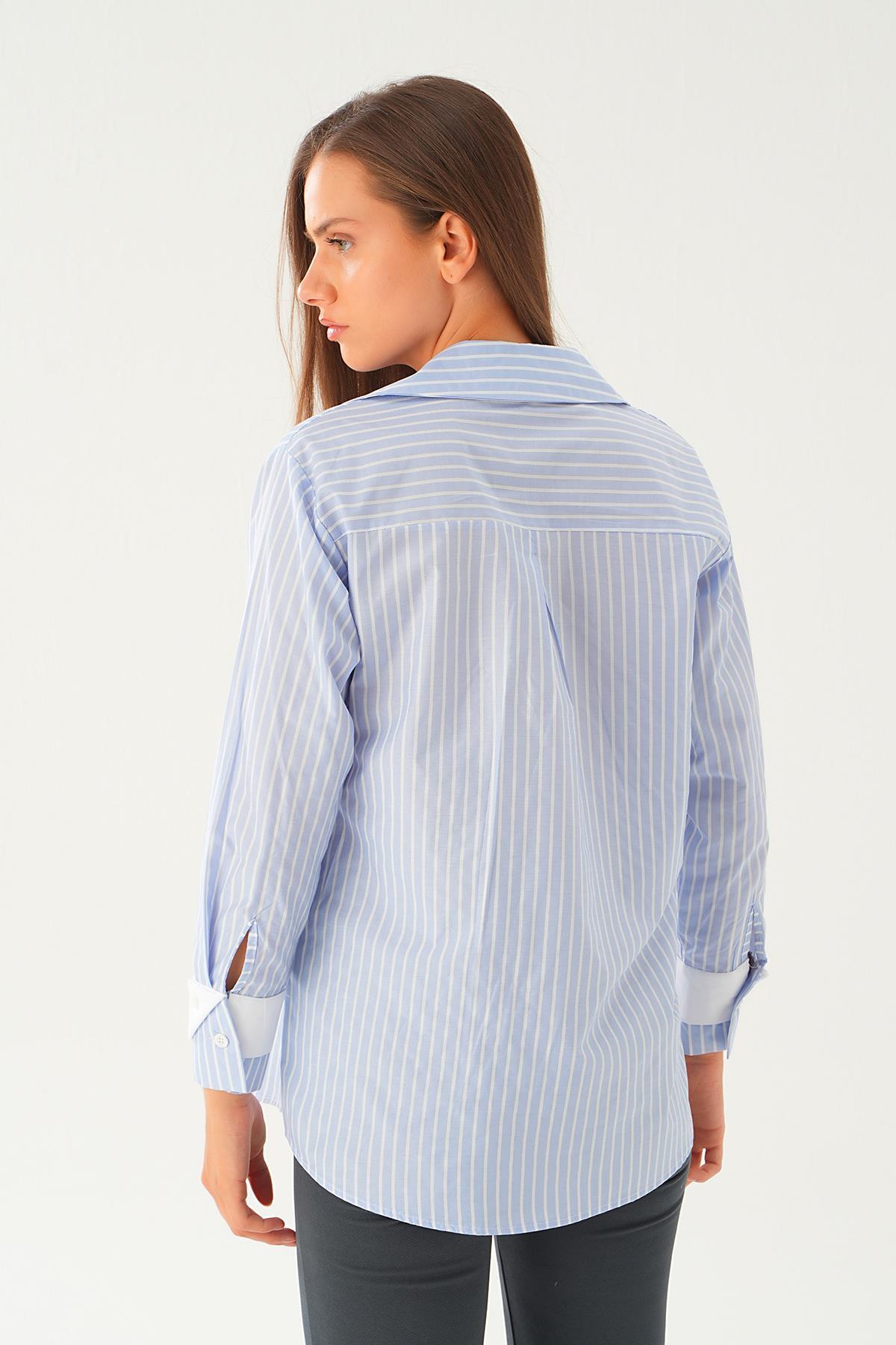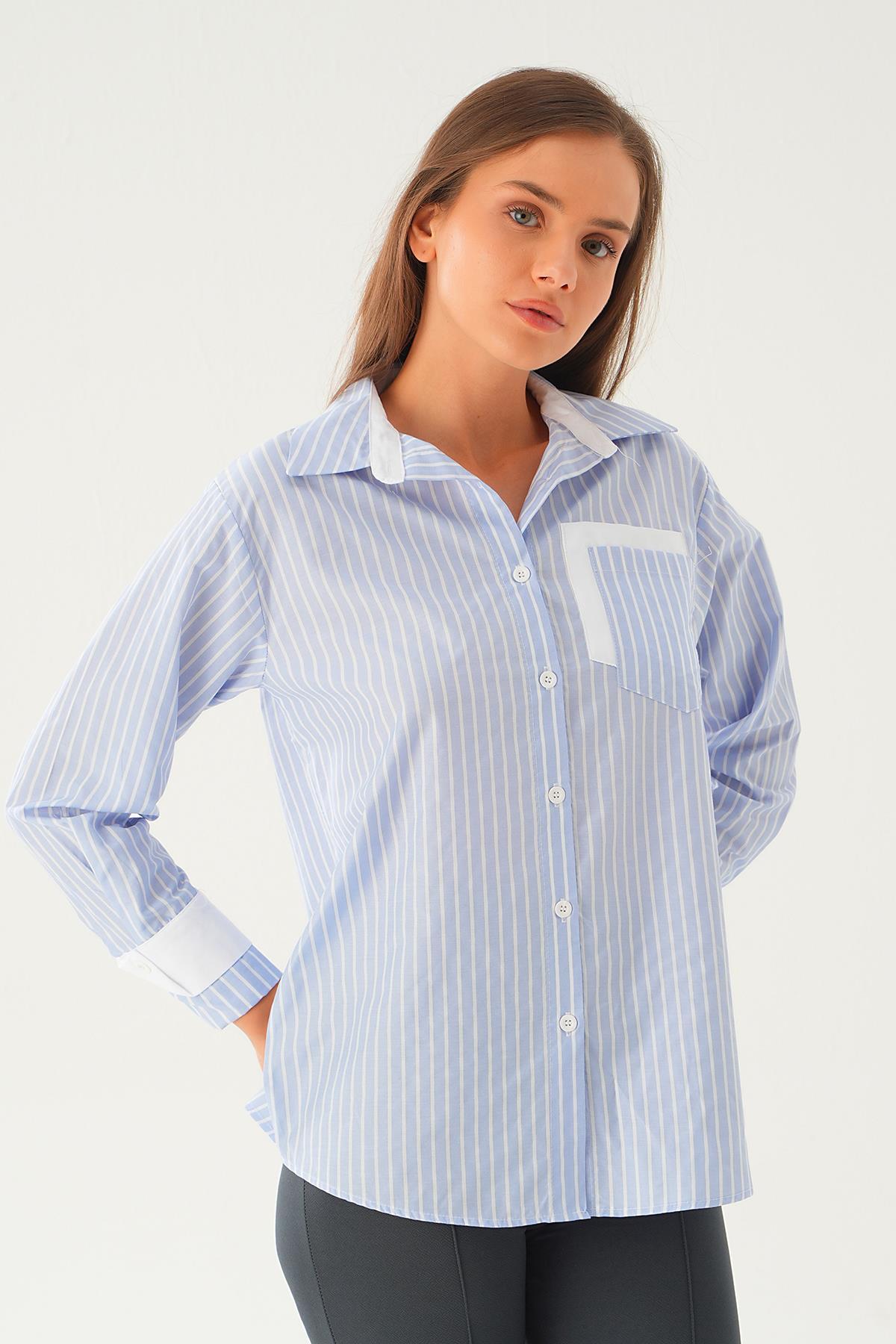 Mavi Çizgili Oversize Gömlek 5460 - RAYS Mavi Çizgili Oversize Gömlek 5460 - RAYS (1)