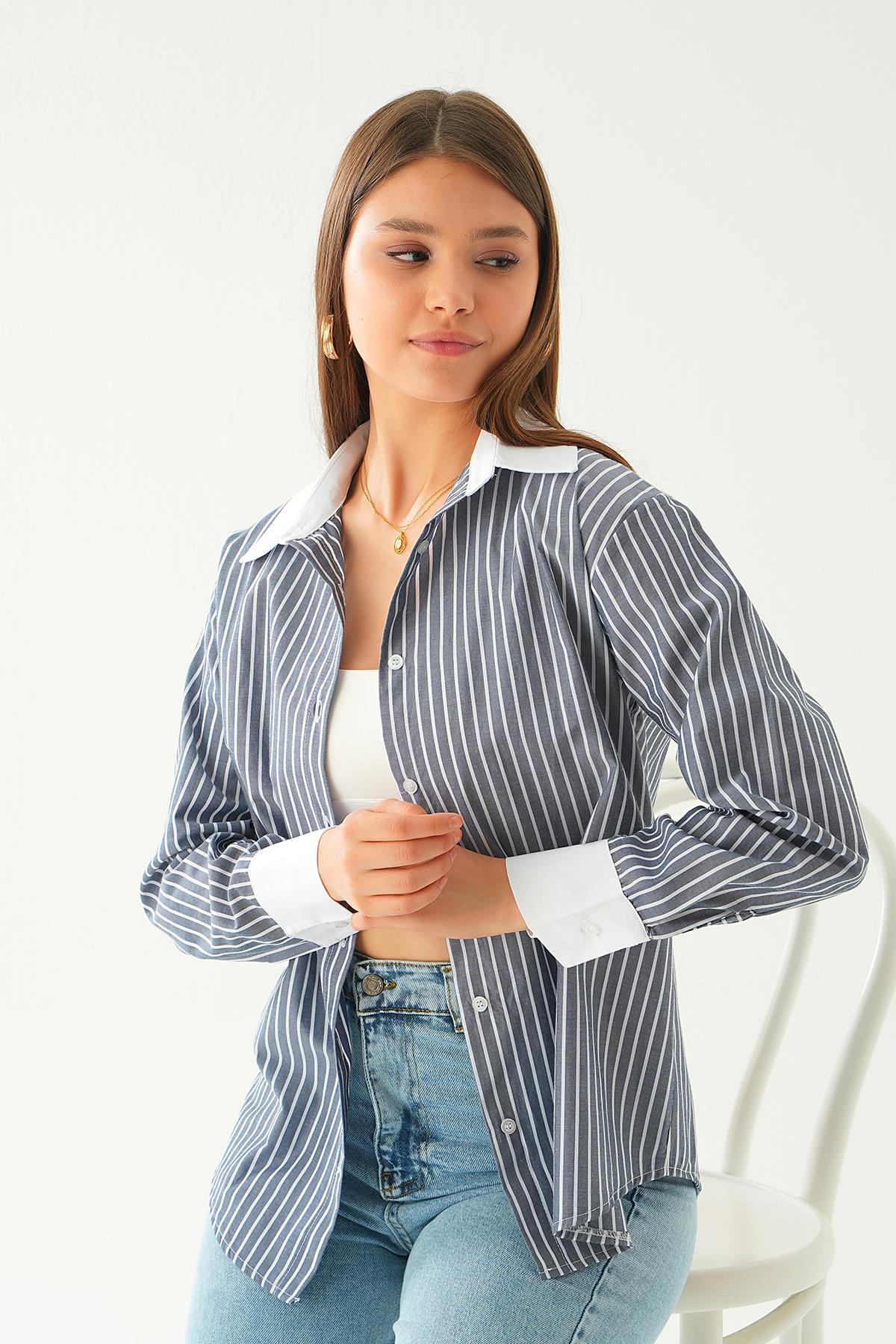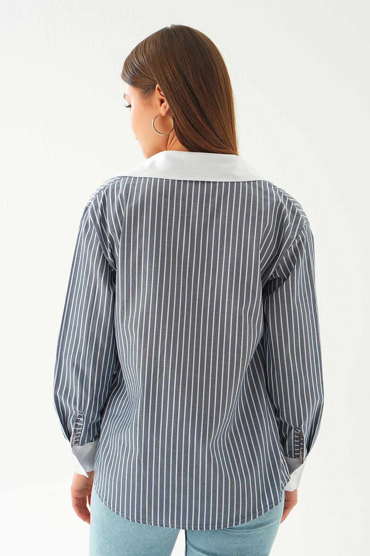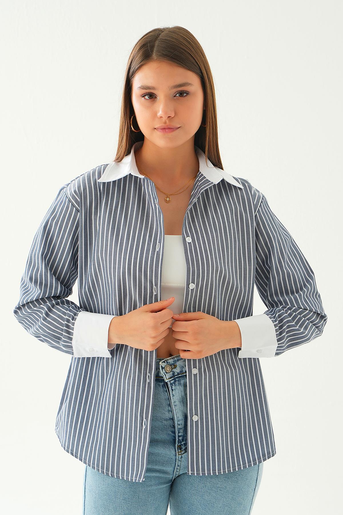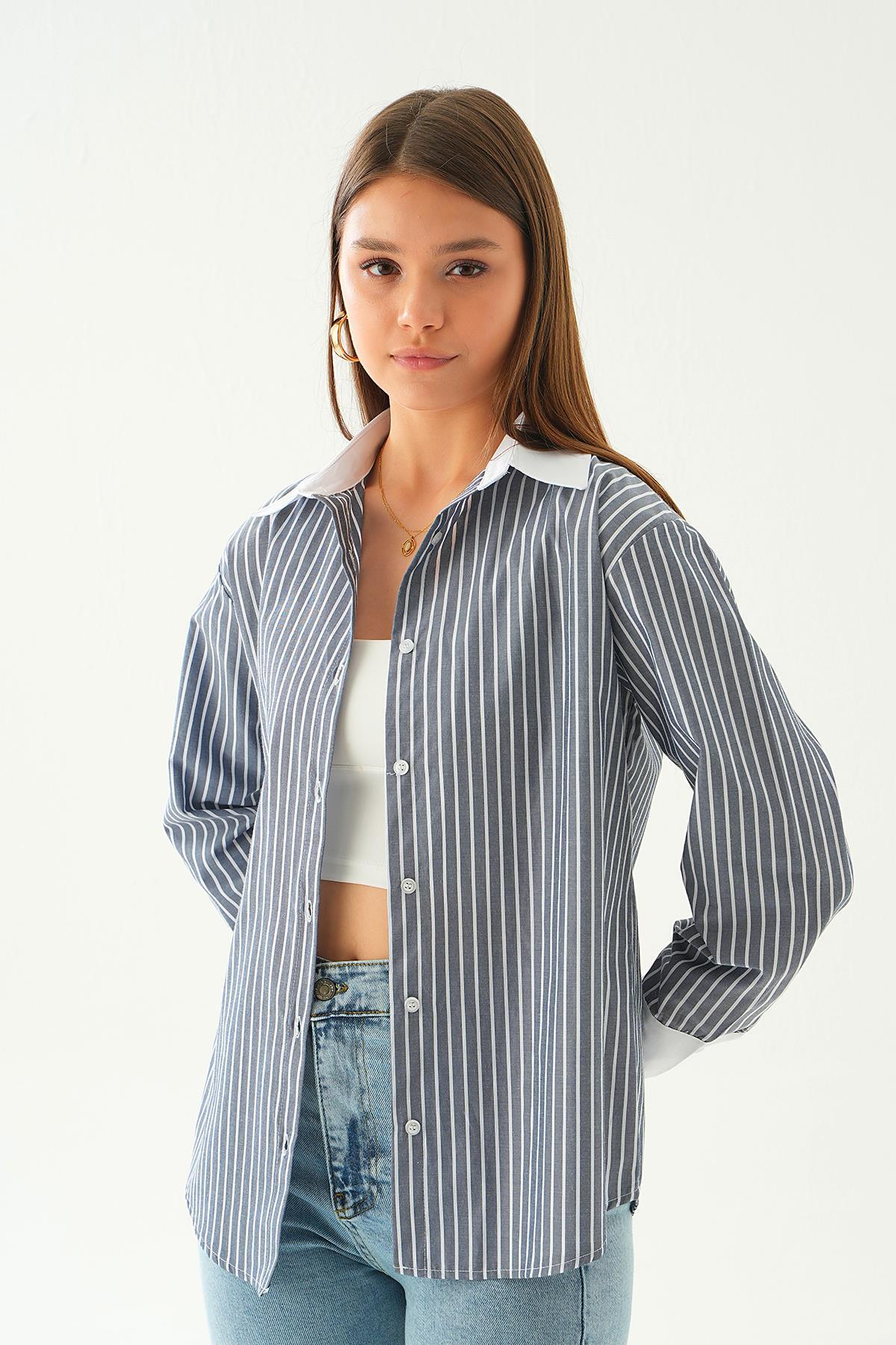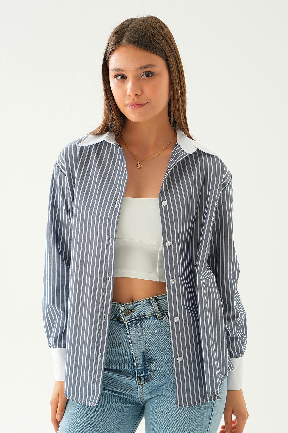 Mavi Çizgili Oversize Gömlek 5460 - RAYS Mavi Çizgili Oversize Gömlek 5460 - RAYS (1)