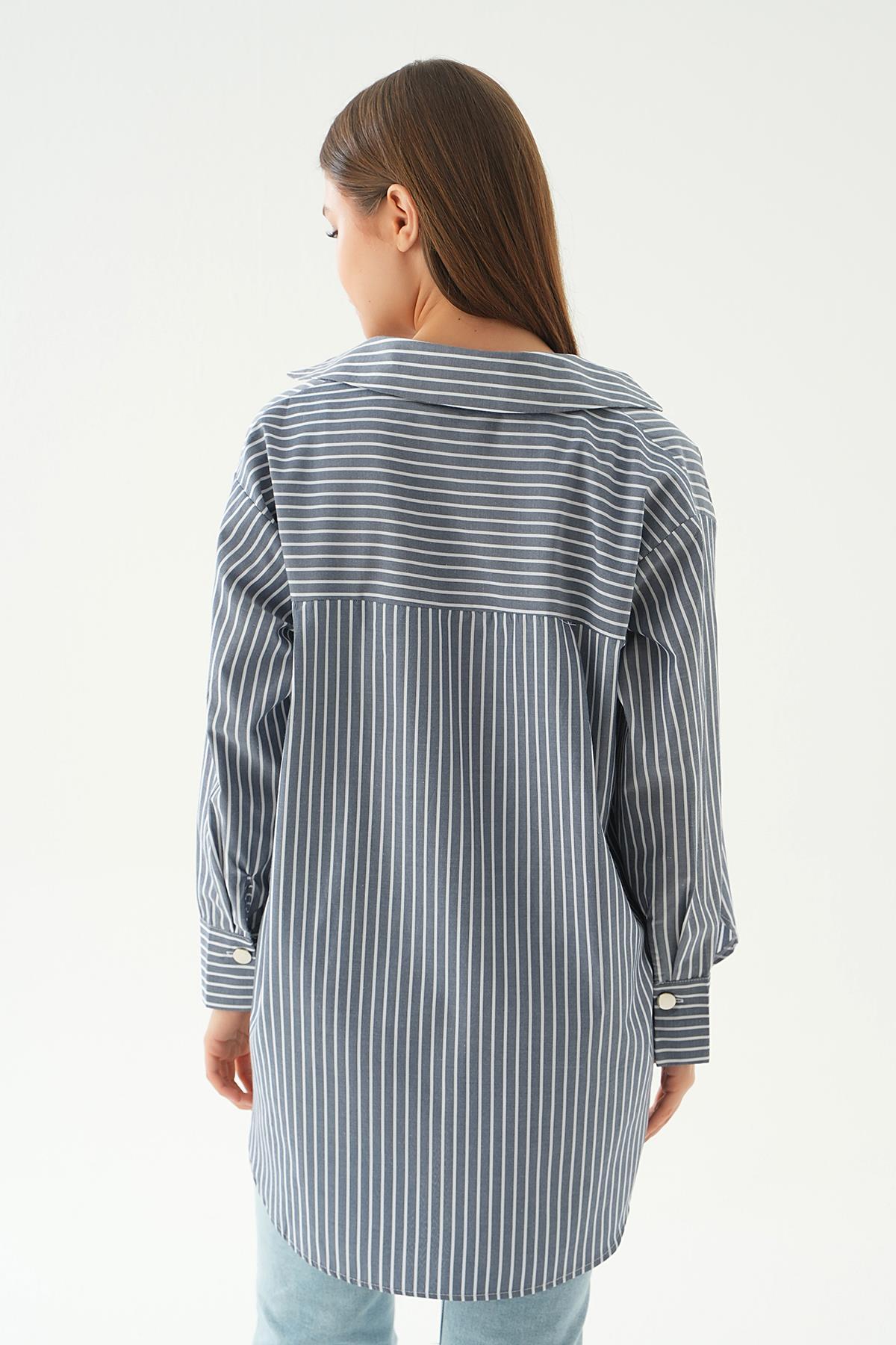 4186A Düğme Detay Çizgili gömlek Laci