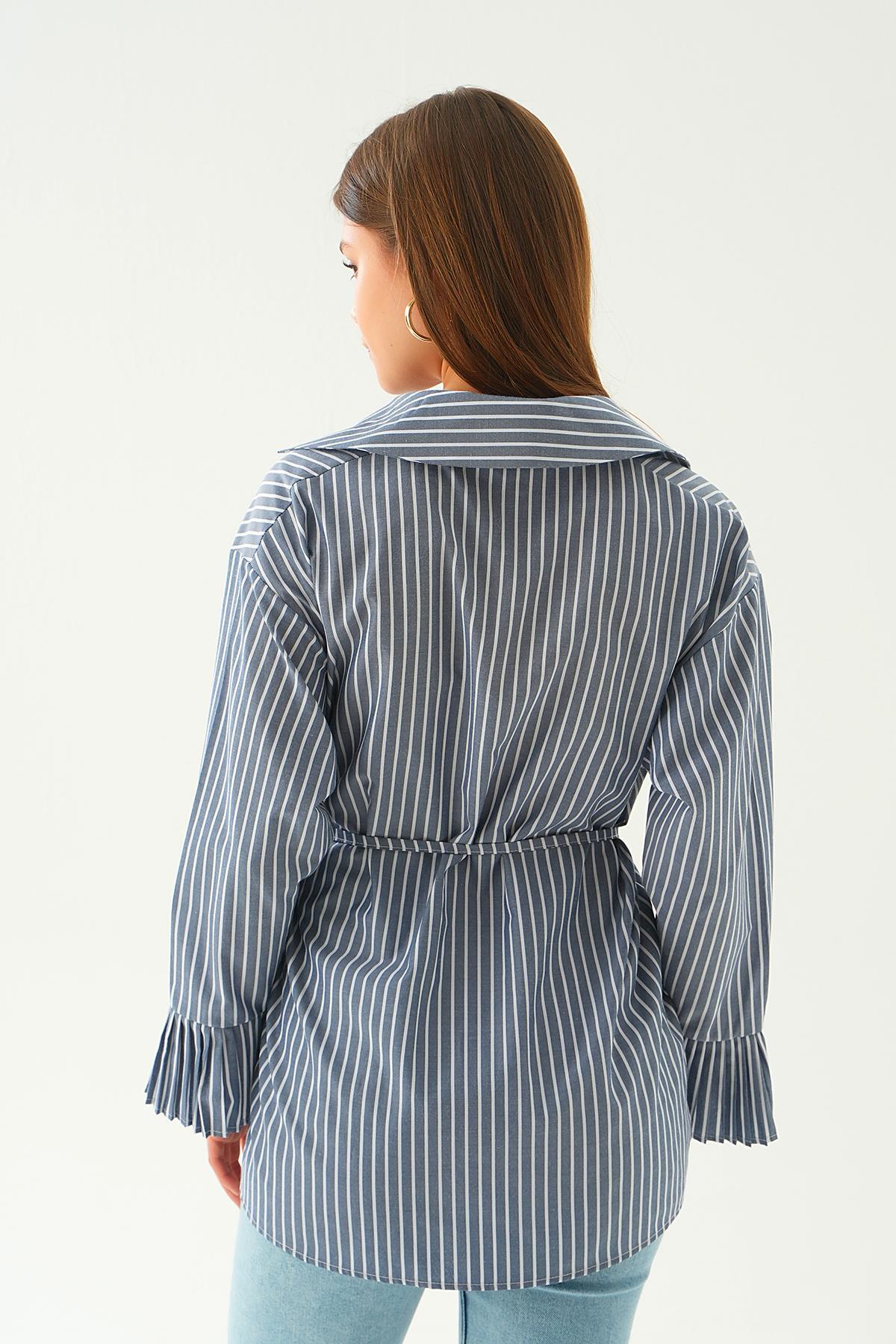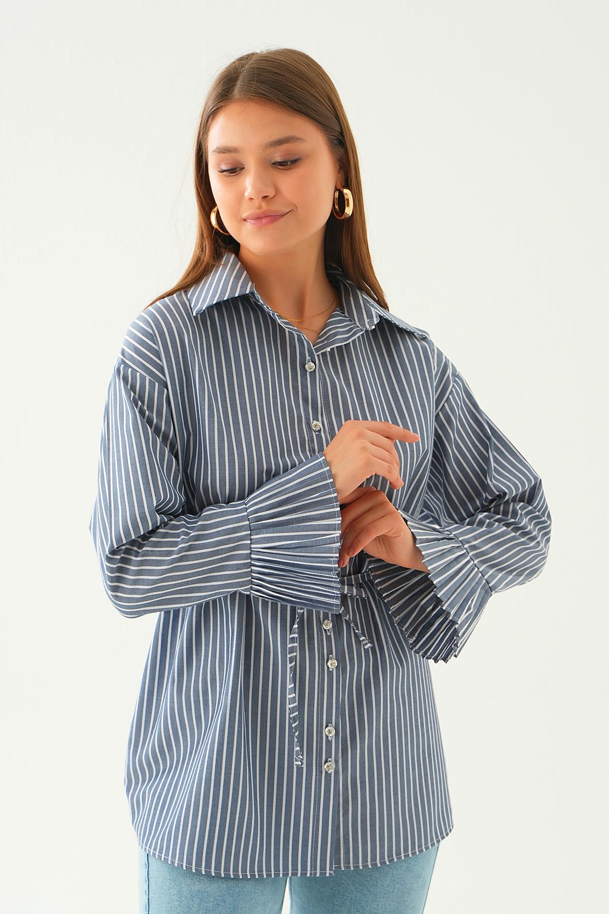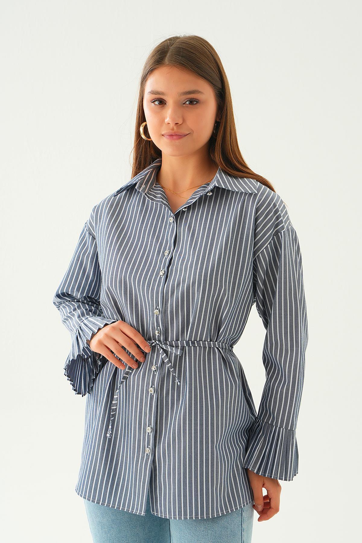 Laci Bel Bağlama Detay Çizgili Gömlek 4188A