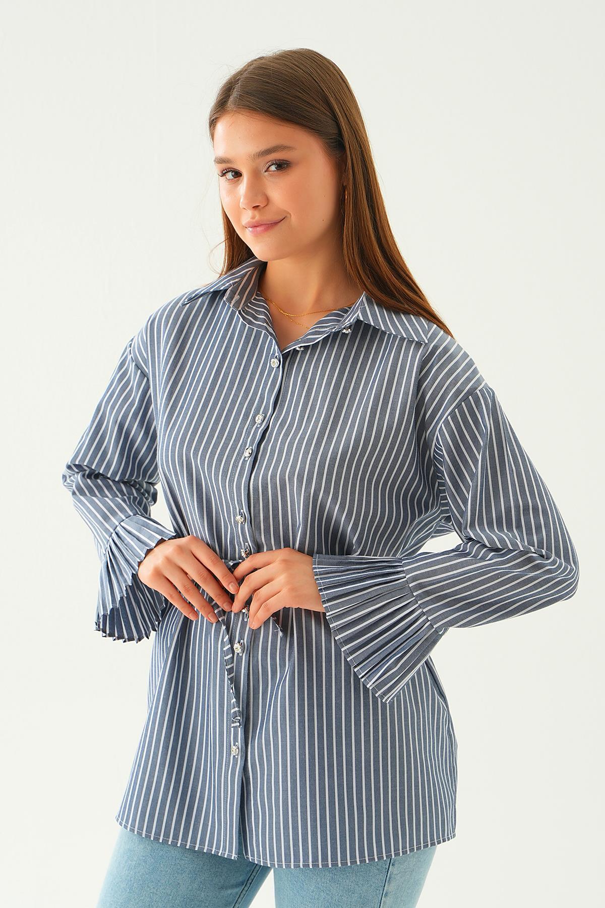 Mavi Çizgili Oversize Gömlek 5460 - RAYS Mavi Çizgili Oversize Gömlek 5460 - RAYS (1)