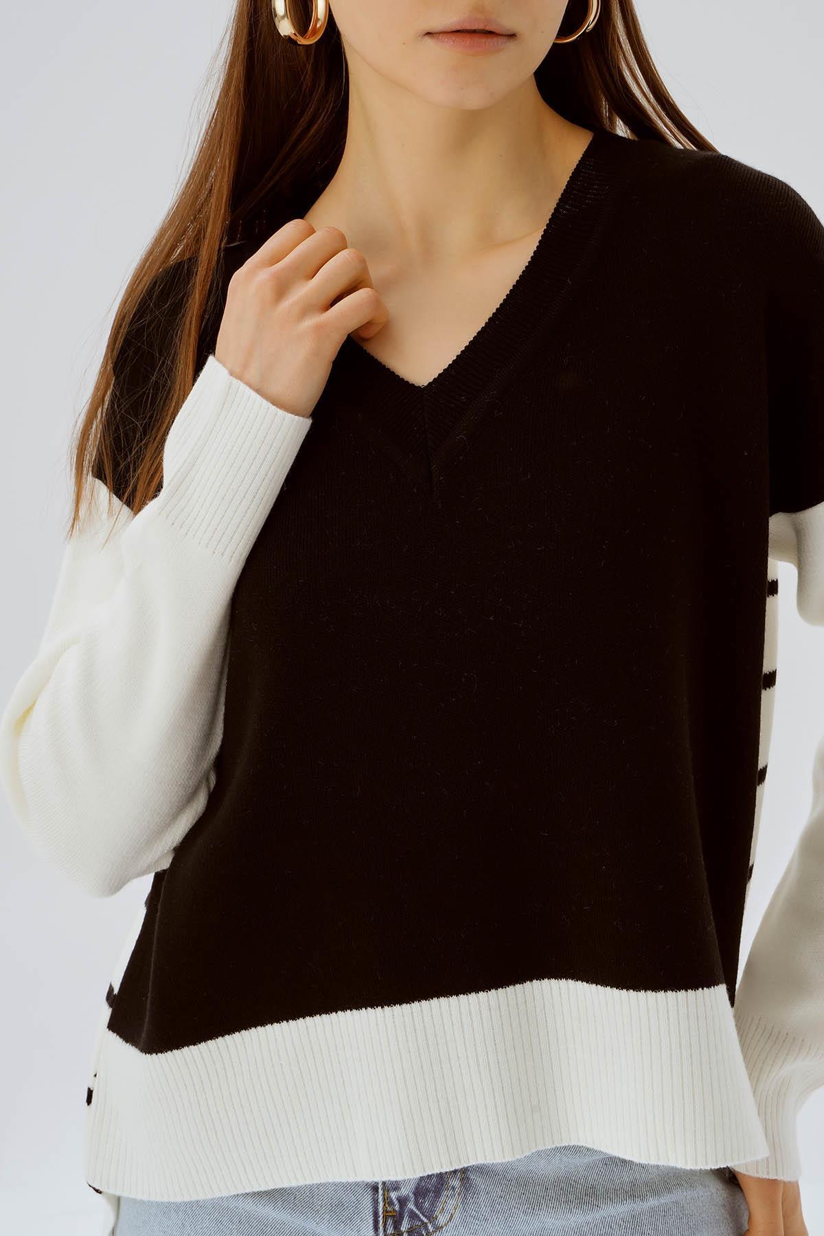 4195 V Yaka Arka Çizgili Kazak Siyah