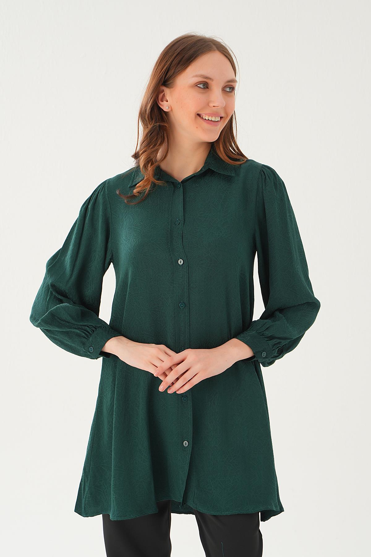 4208A Desenli Tunik Zümrüt